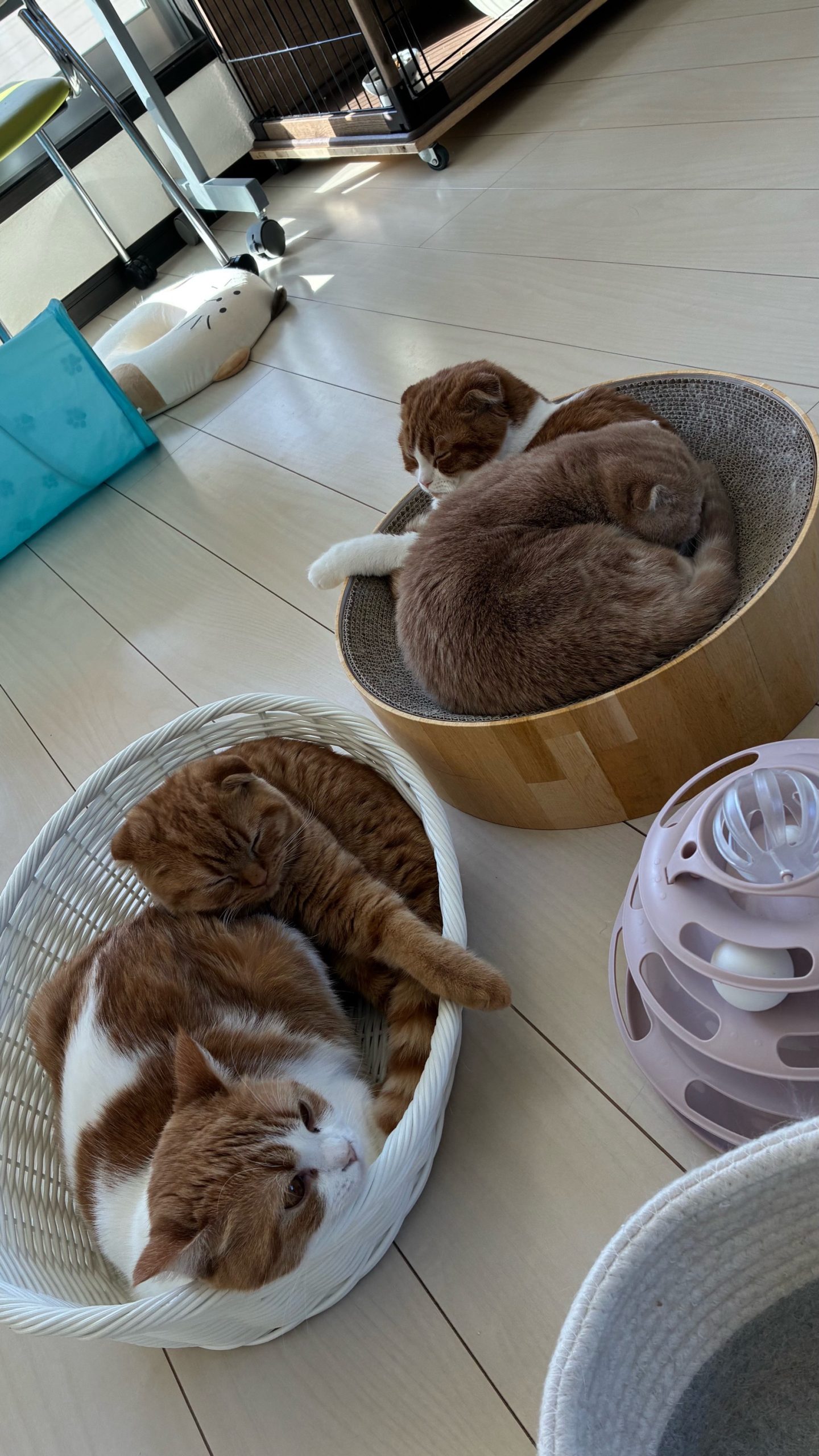 ごはんをたべるとみんなまた丸くなってお昼寝に入りました💤