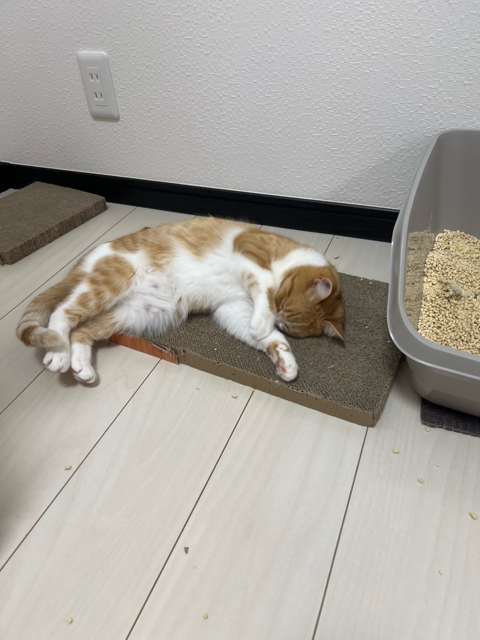 午前:こどもたち、寒い朝はお腹が空いた組とぐーすか寝ている組に分かれます🐱