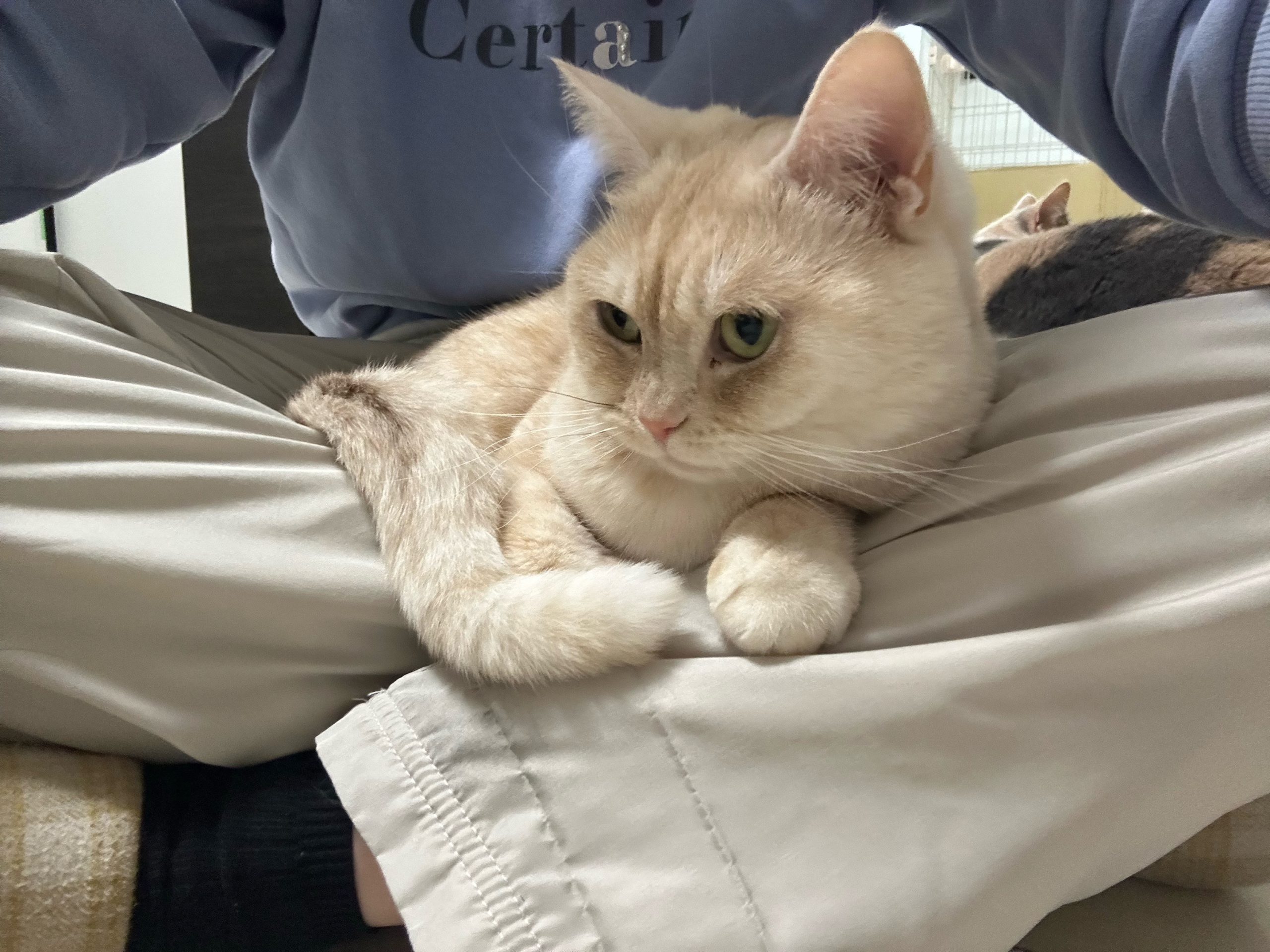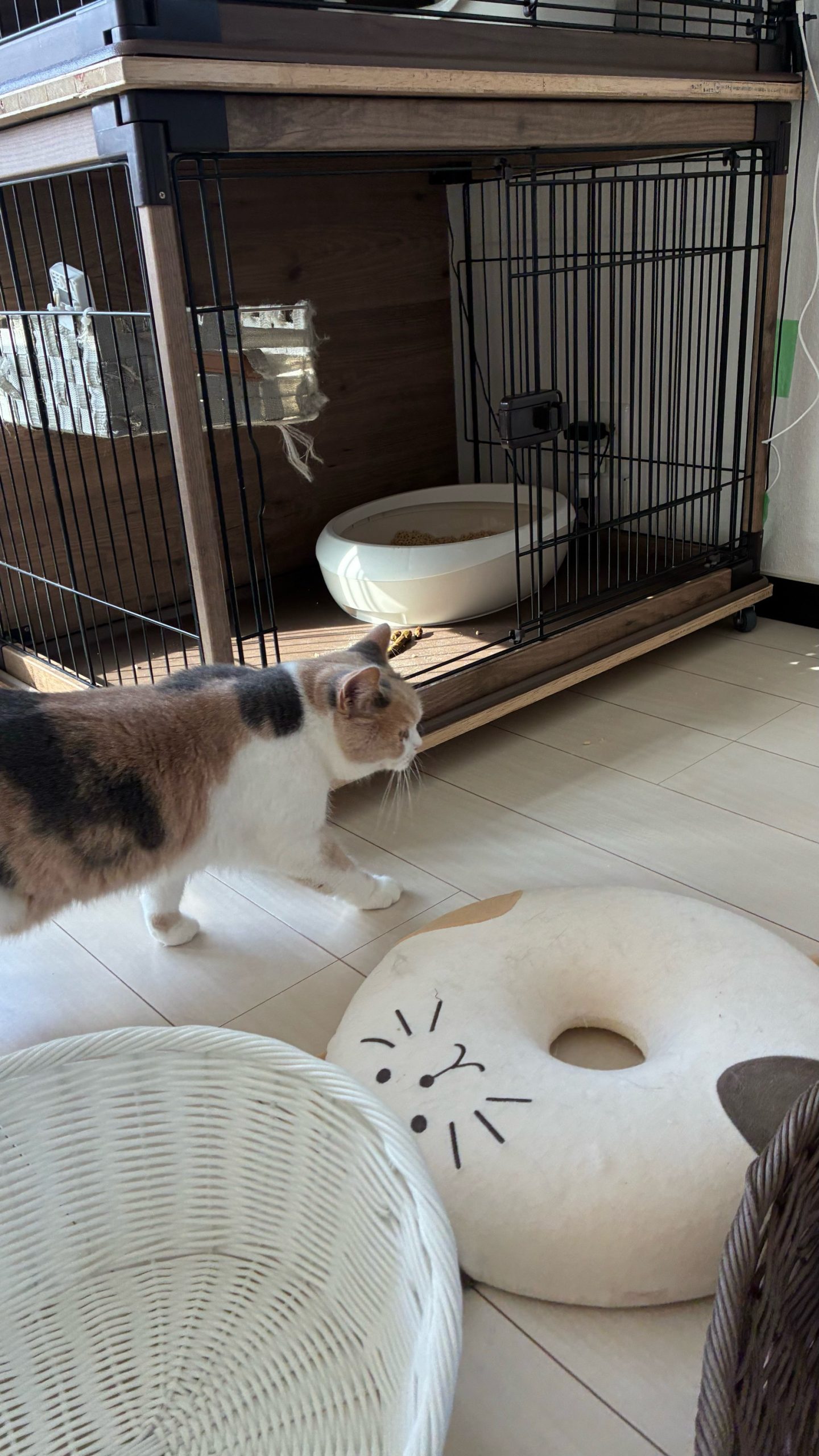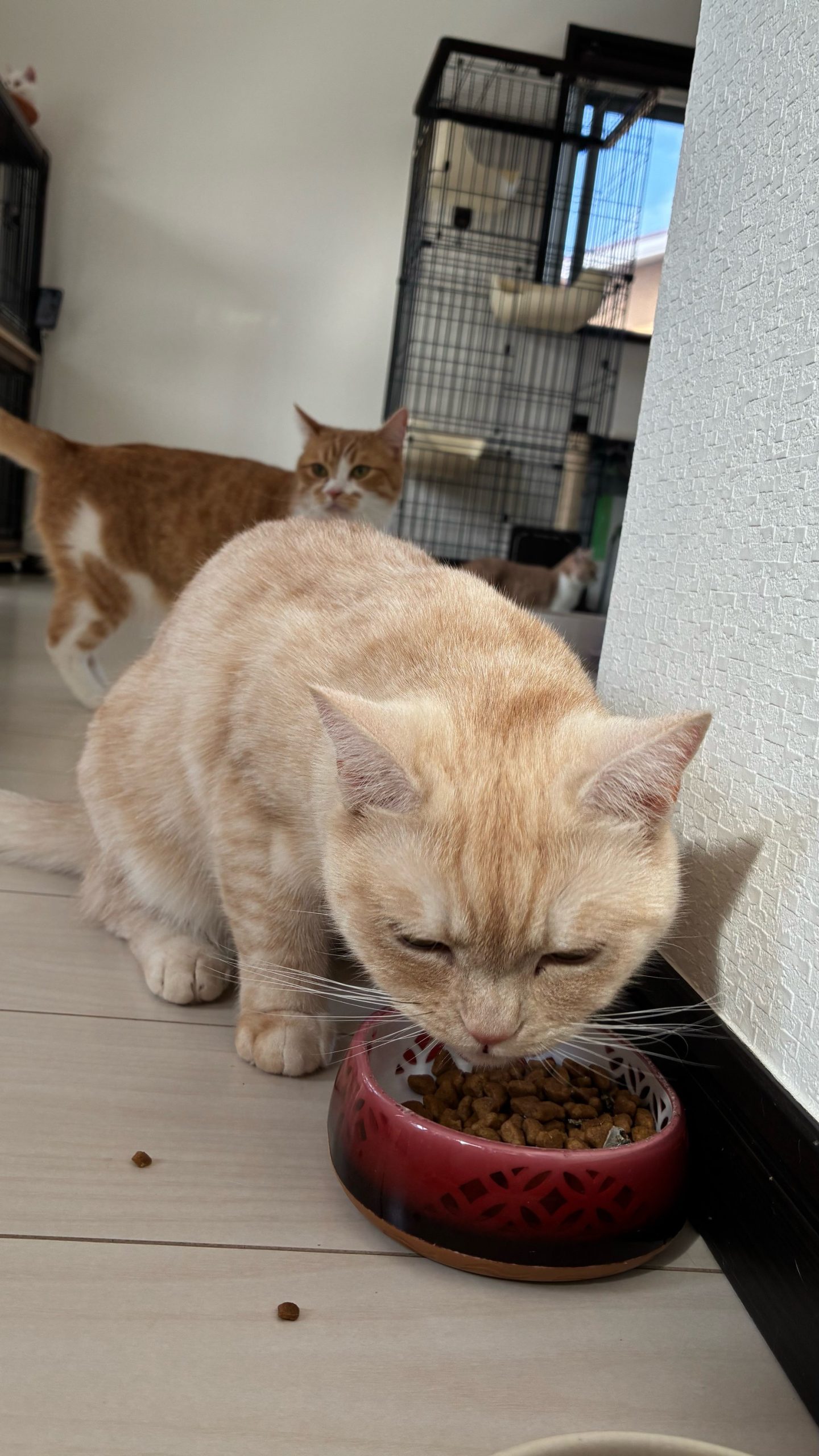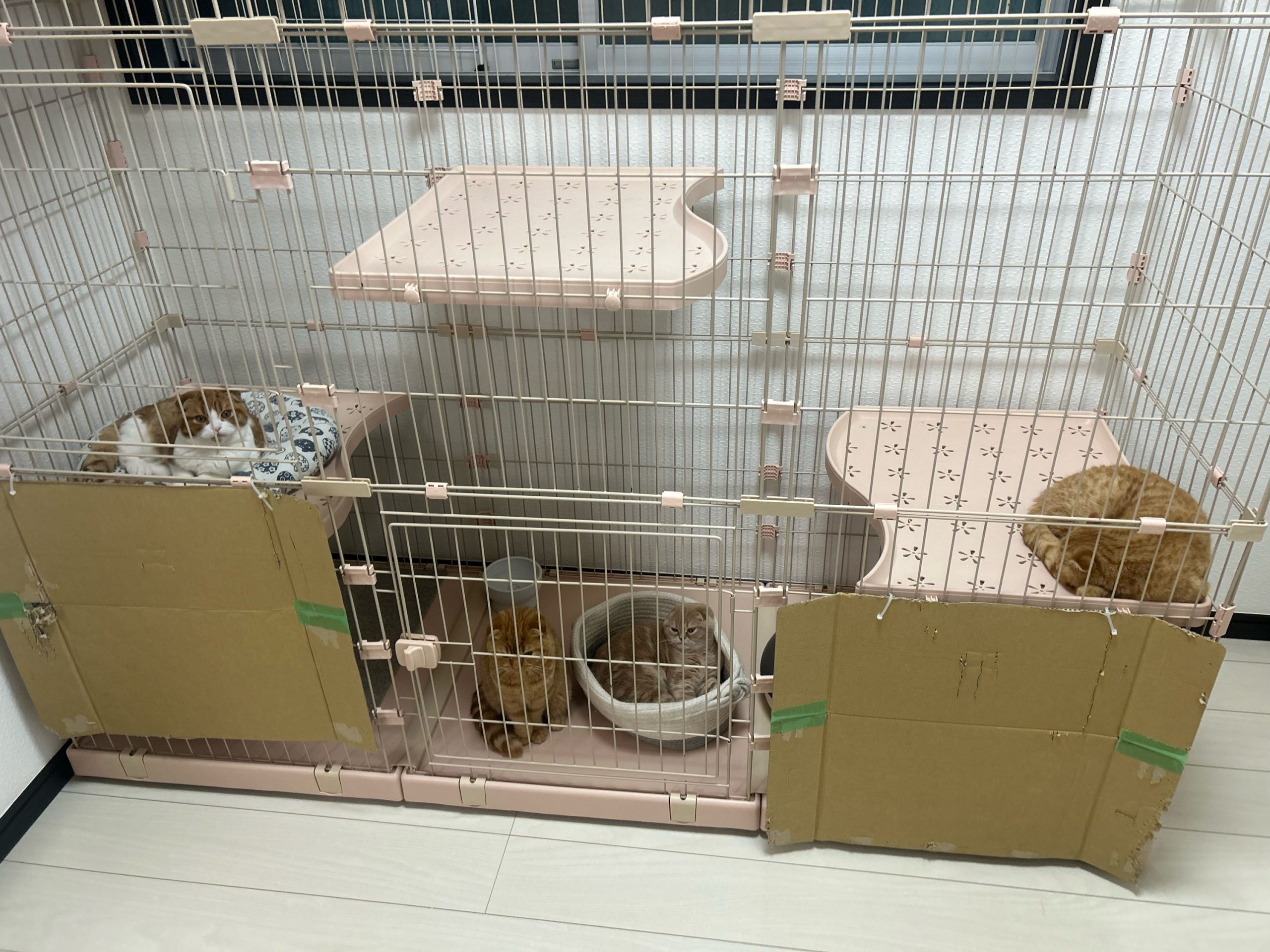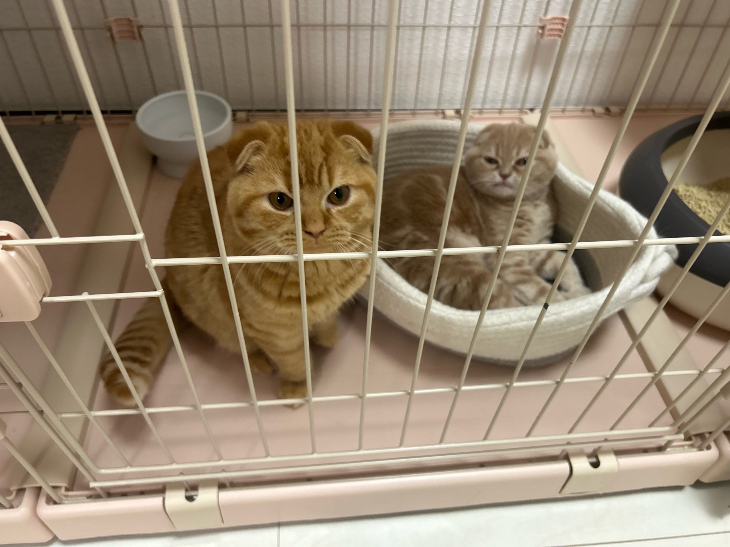 午後:今日はワクチン接種後なので、ロコ3つ子ちゃんとおこめ赤ちゃんの4匹は、ケージ内で過ごしてもらっています🏥🐱