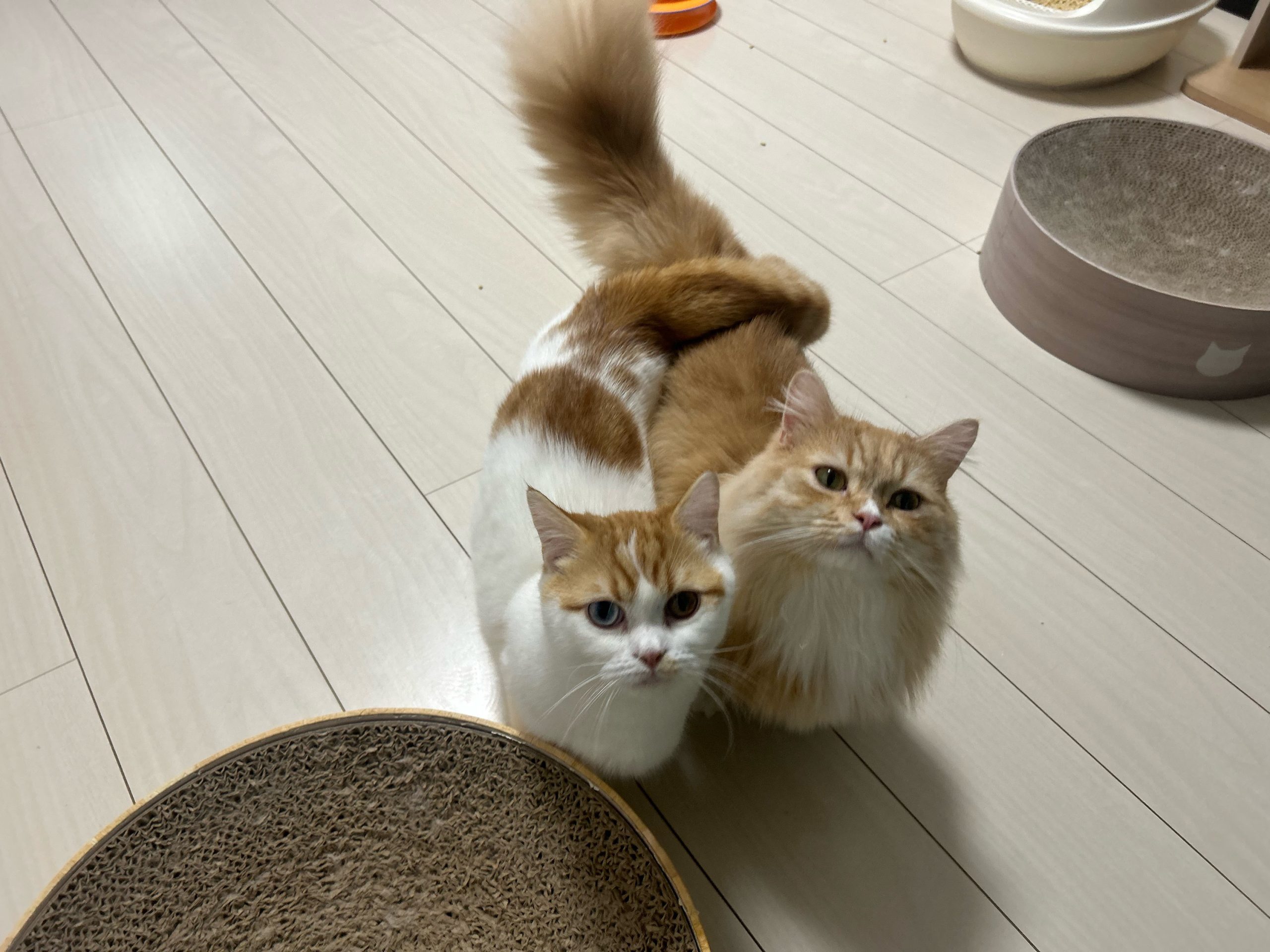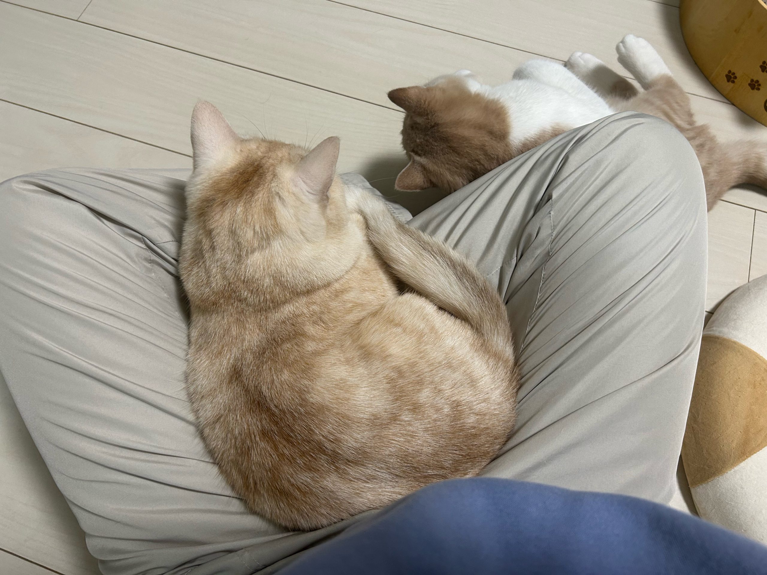 しっぽを絡ませるほど、ひっつき虫になっていました🐱🐱