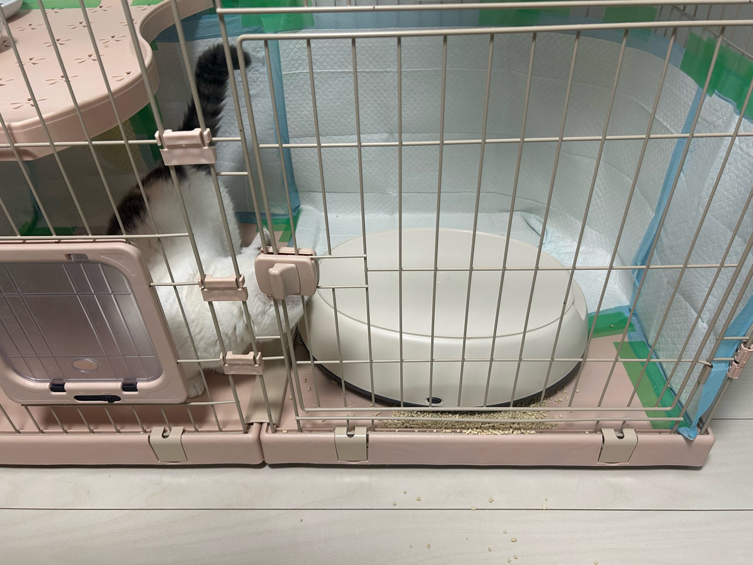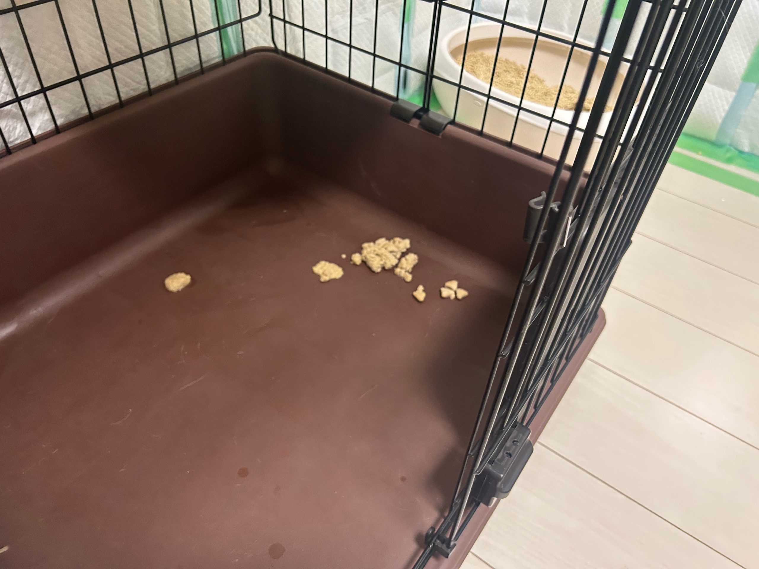 午前:殿マロペアのケージ内おトイレが、キレイにひっくり返っていました🚽