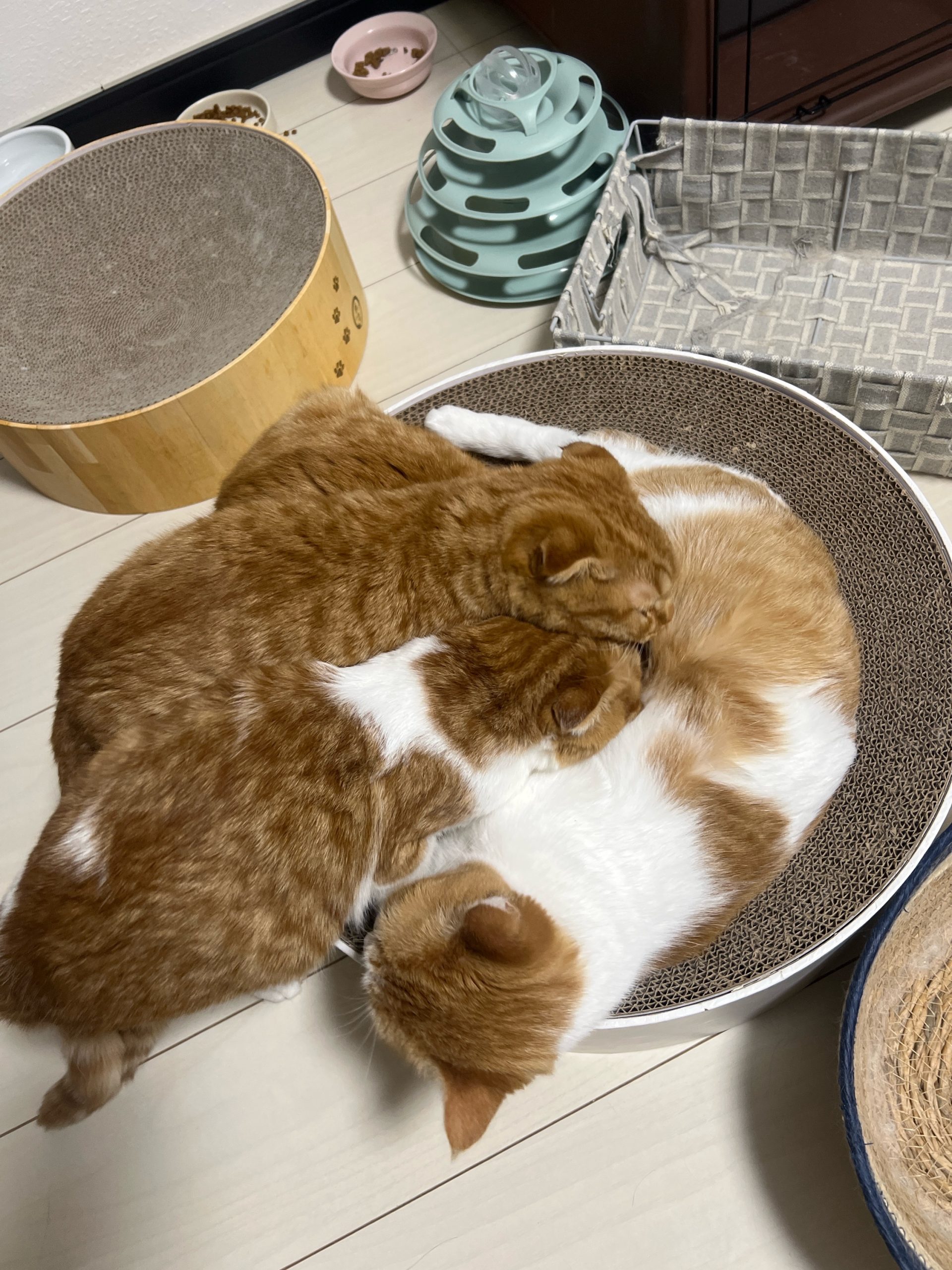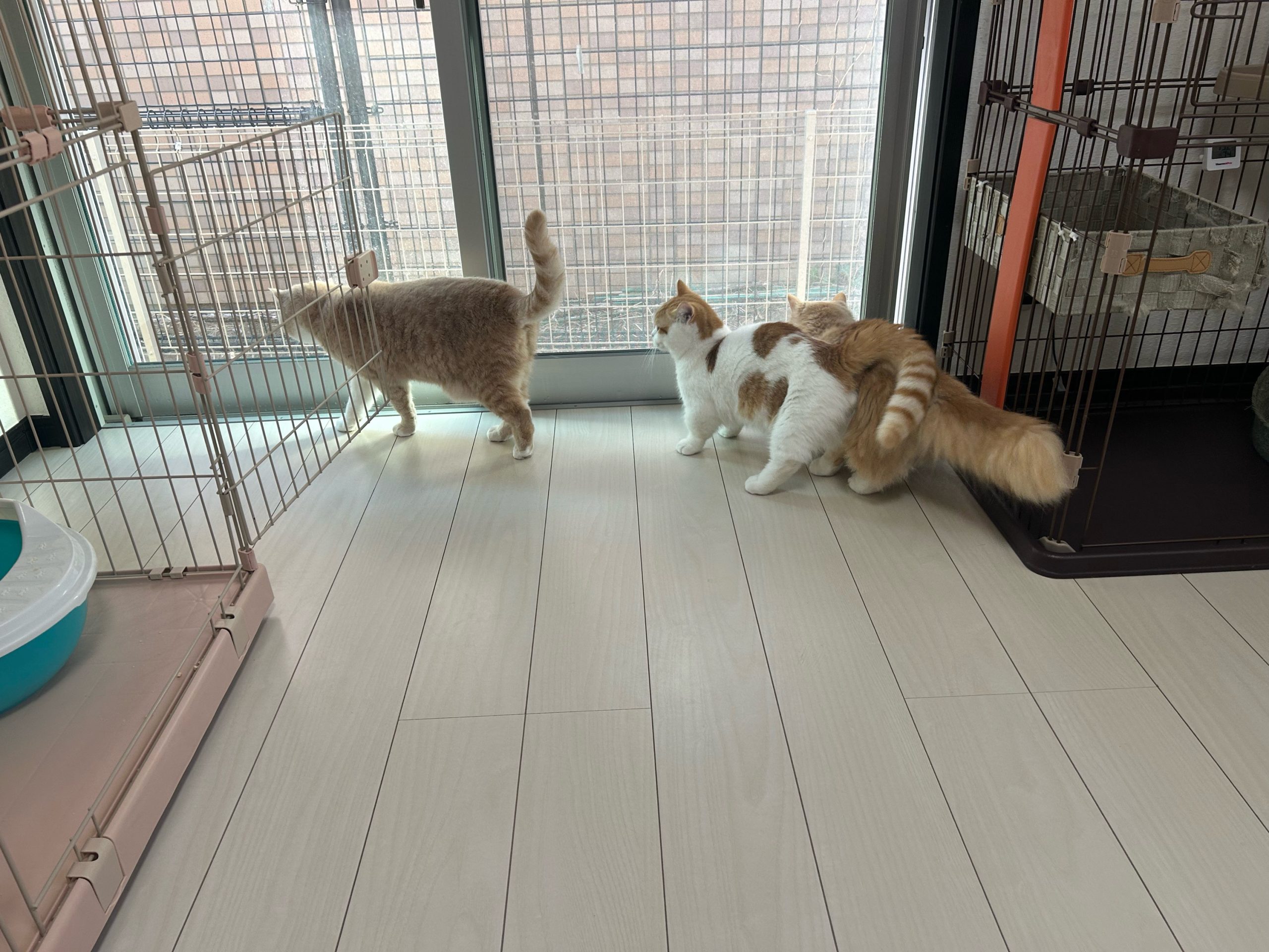 2階では昨日病院でワクチン接種等だった子猫ちゃんたち4匹が、やっとケージ外に出られてるんるん🎶