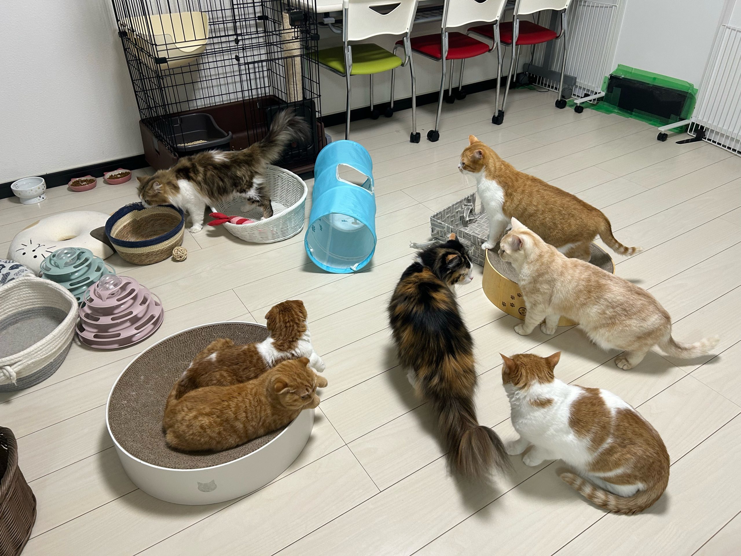 みんな匂いを嗅ぎつつ、ビビってしまう猫ちゃんたちは唸っていました💦