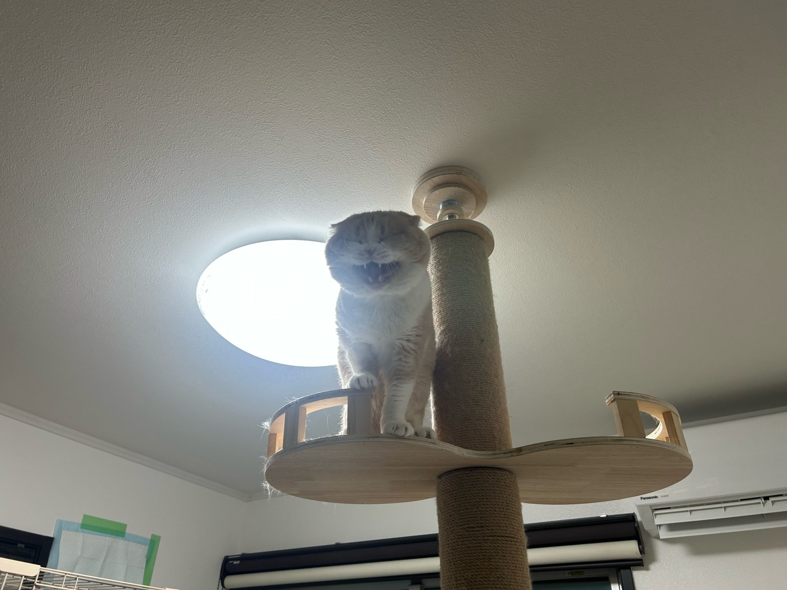 ちくわくんはまた上に登り、悲しげに床を見つめていました🥹