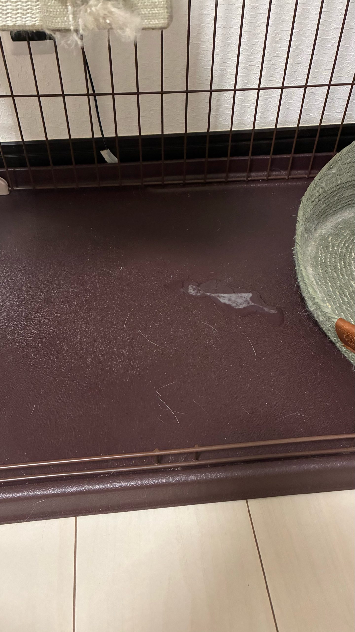 殿くん放牧中に床とフイルムにスプレーあり