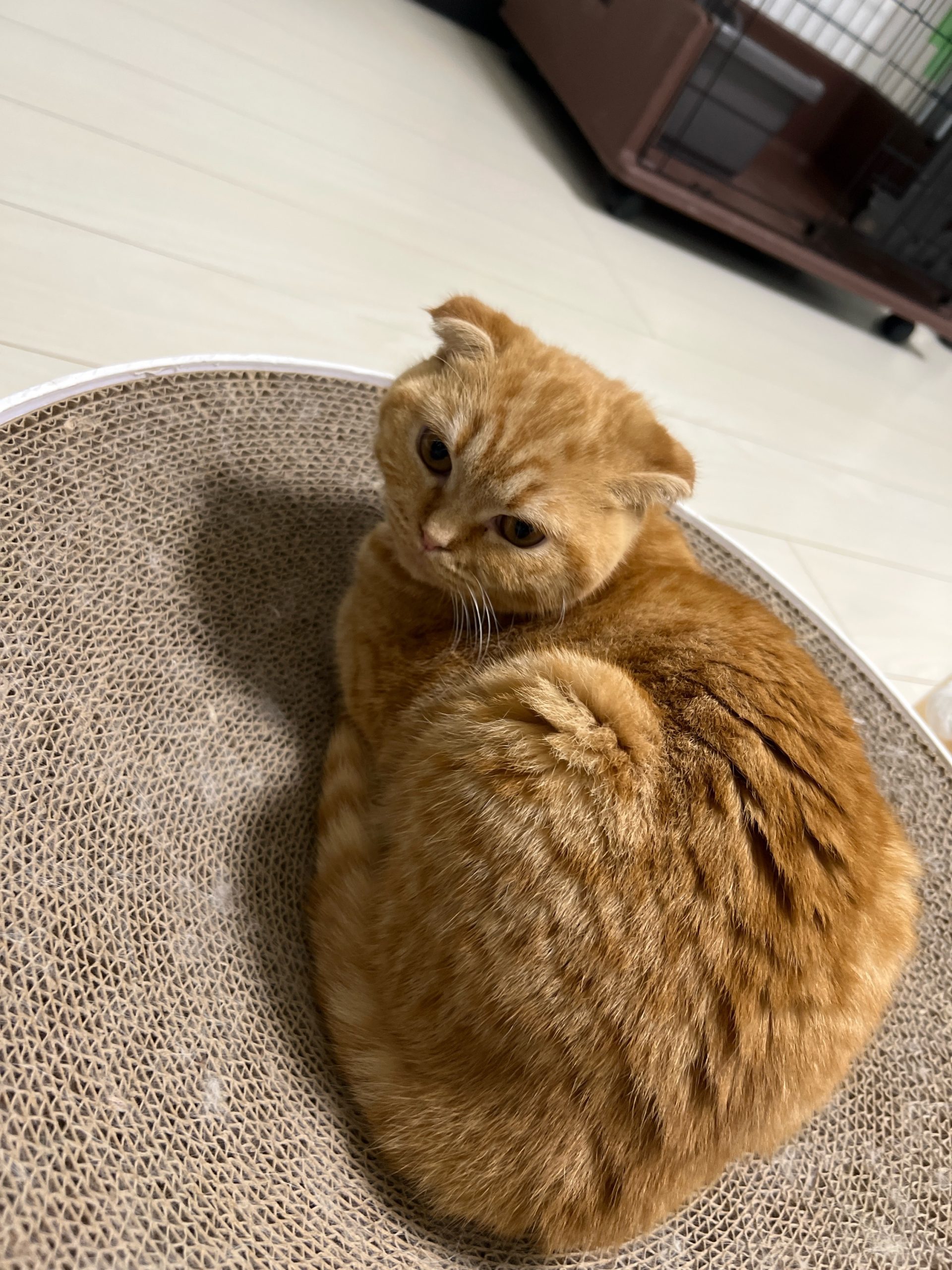 午後:まるくんキャットタワー最上段に嘔吐あり。やはり💩は緩め