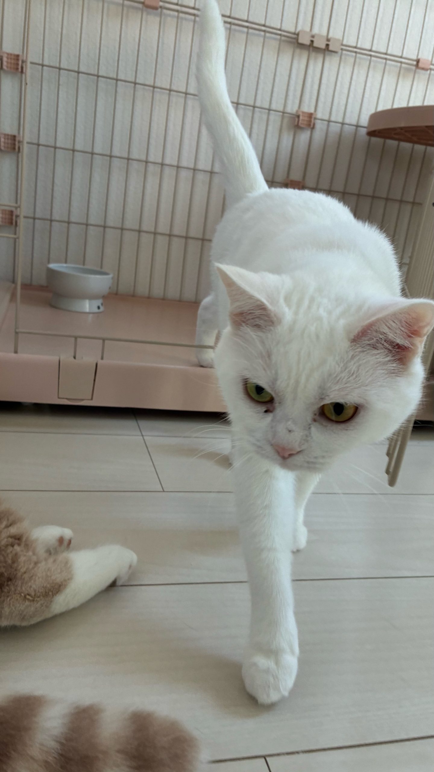 作業中ロコちゃん胃液嘔吐あり、こねこたちが食べにいくのですぐさま拭き取りました👌