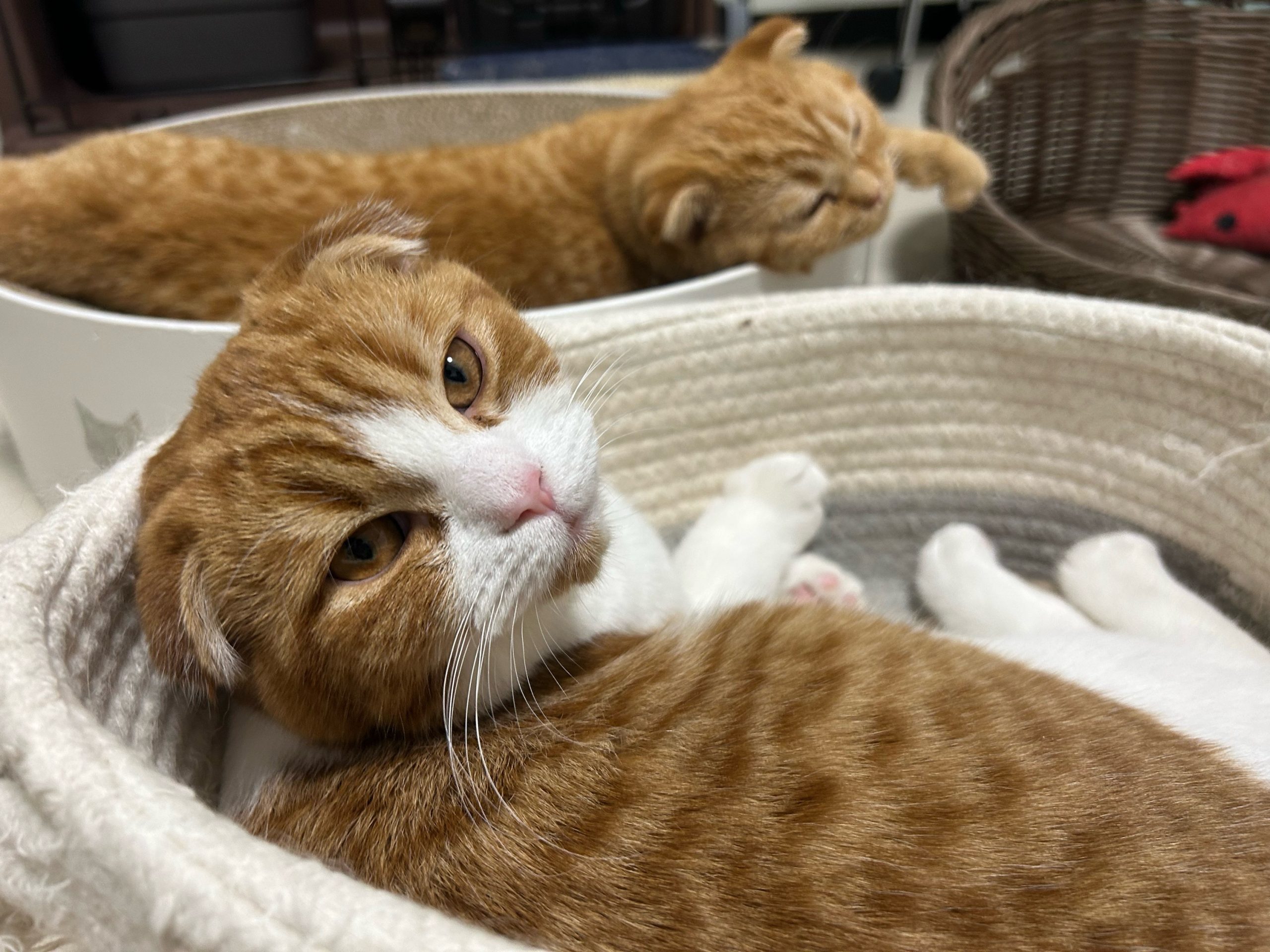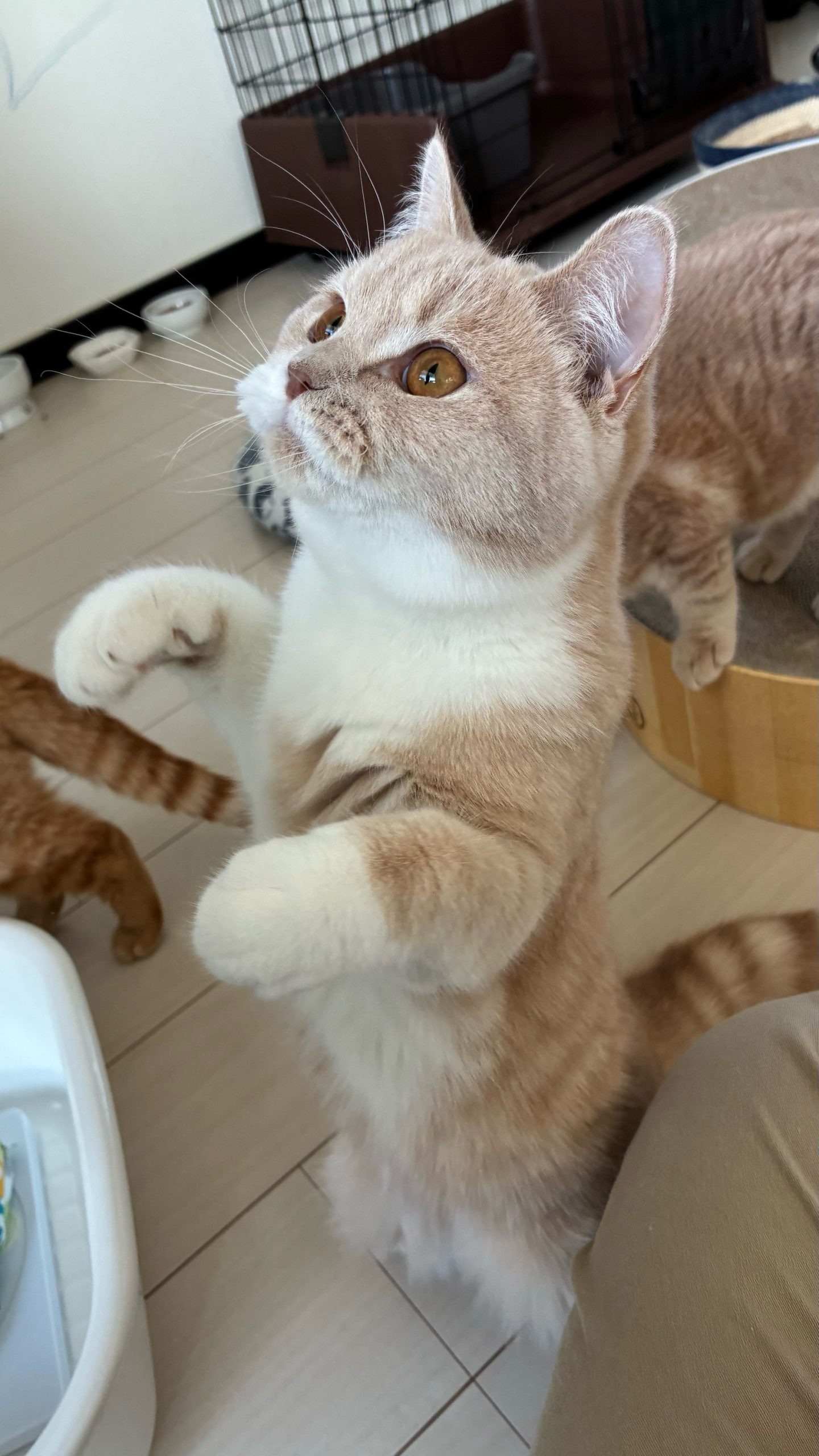 ご飯後だったので、きびくんがうらやましそうにこちらをチラリ😂きびくんはご飯前に目やにをきれいにしふみふみ甘えてくれました。