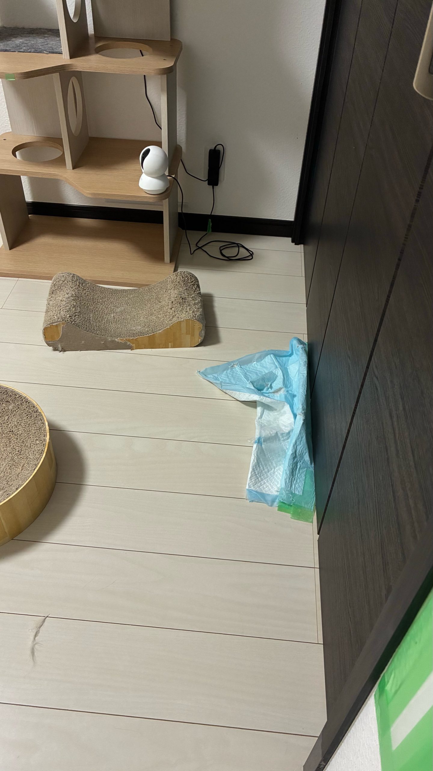 嘔吐無し、ばくきび部屋のシート剥がされ遊ばれておりました