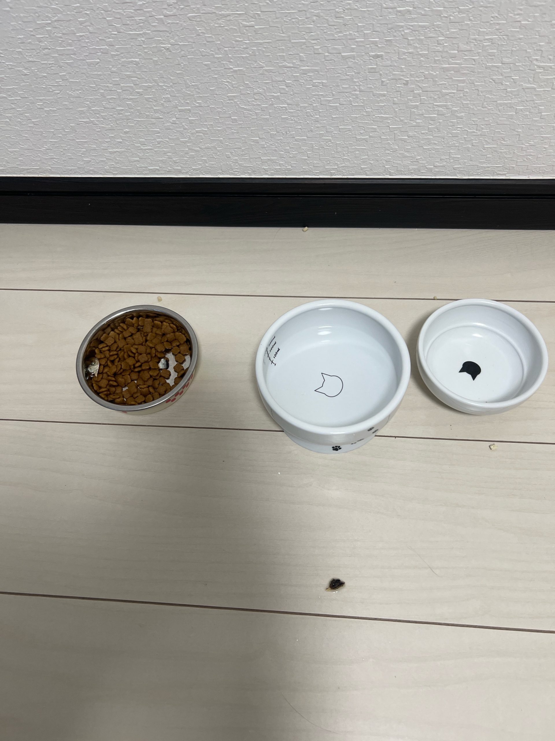 ばくくんの成猫用ご飯は完食ですがちくわくんのご飯はほとんど残っていました…❓