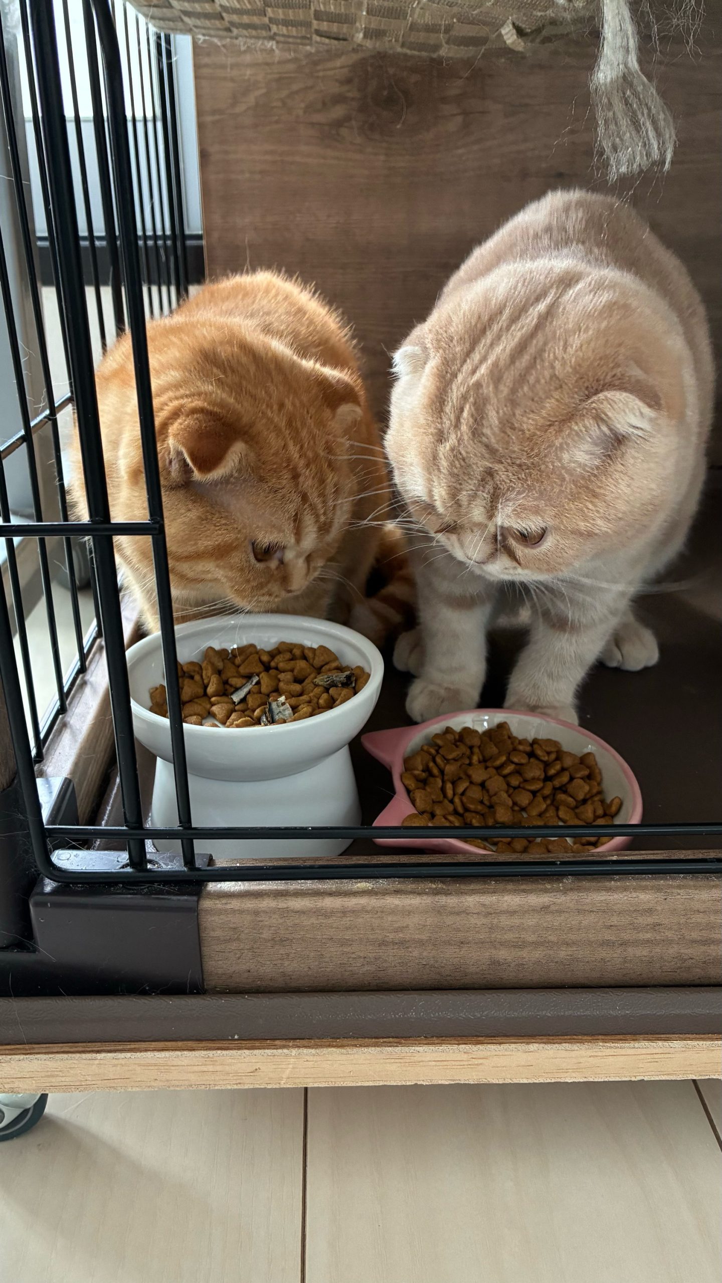 午前:全部屋嘔吐なし、まるくんごはんもほぼ完食🍚ちくわくんのごはんも空っぽになってました