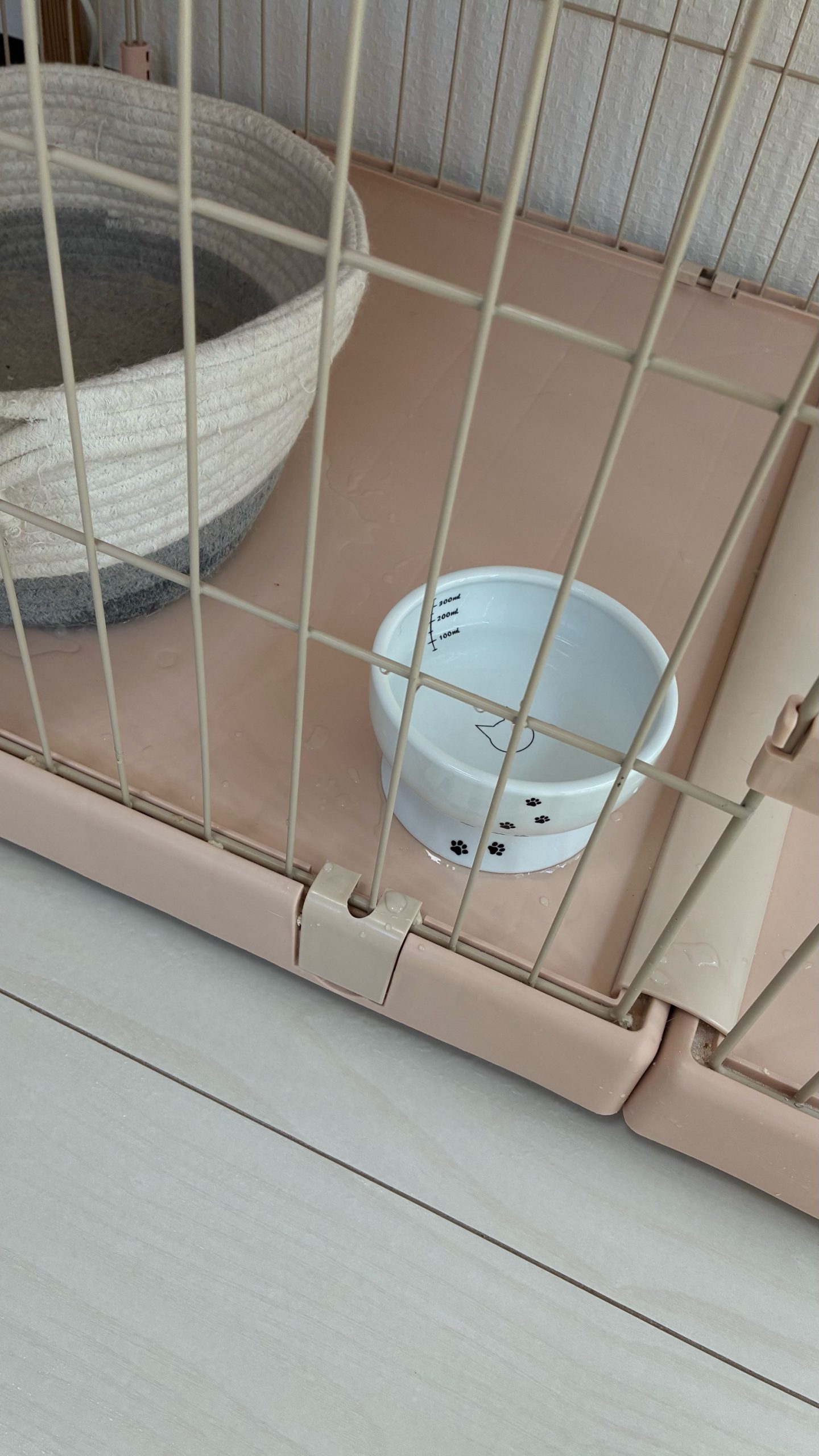 きびくんケージのお水をこぼしてビチャビチャに😂中のカゴが少し濡れてるのでたてかけてあります