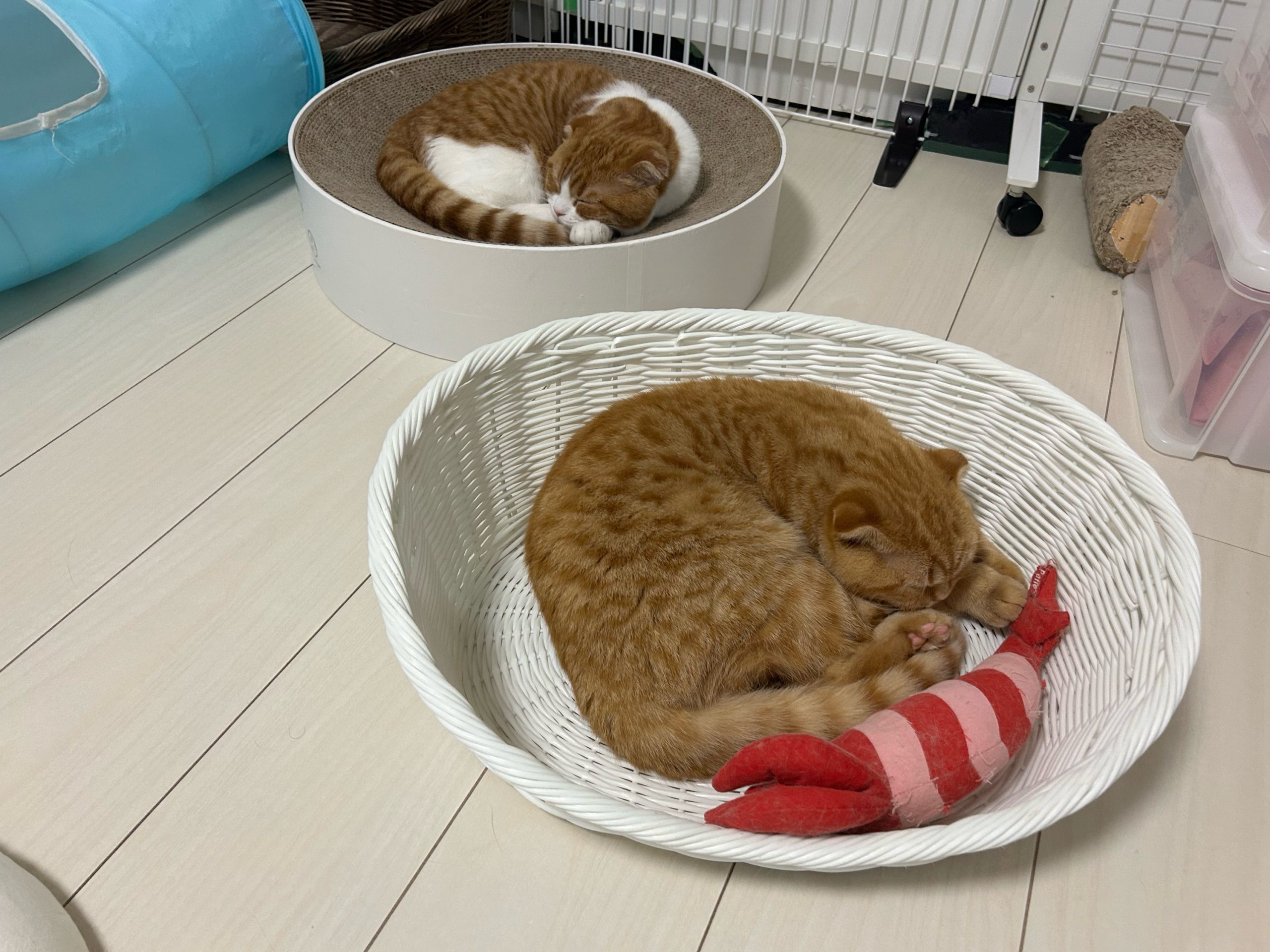 猫ちゃんたちはふれあい体験のご案内でたくさん遊んでいただき、ほとんどの猫ちゃんたちがぐっすり😴