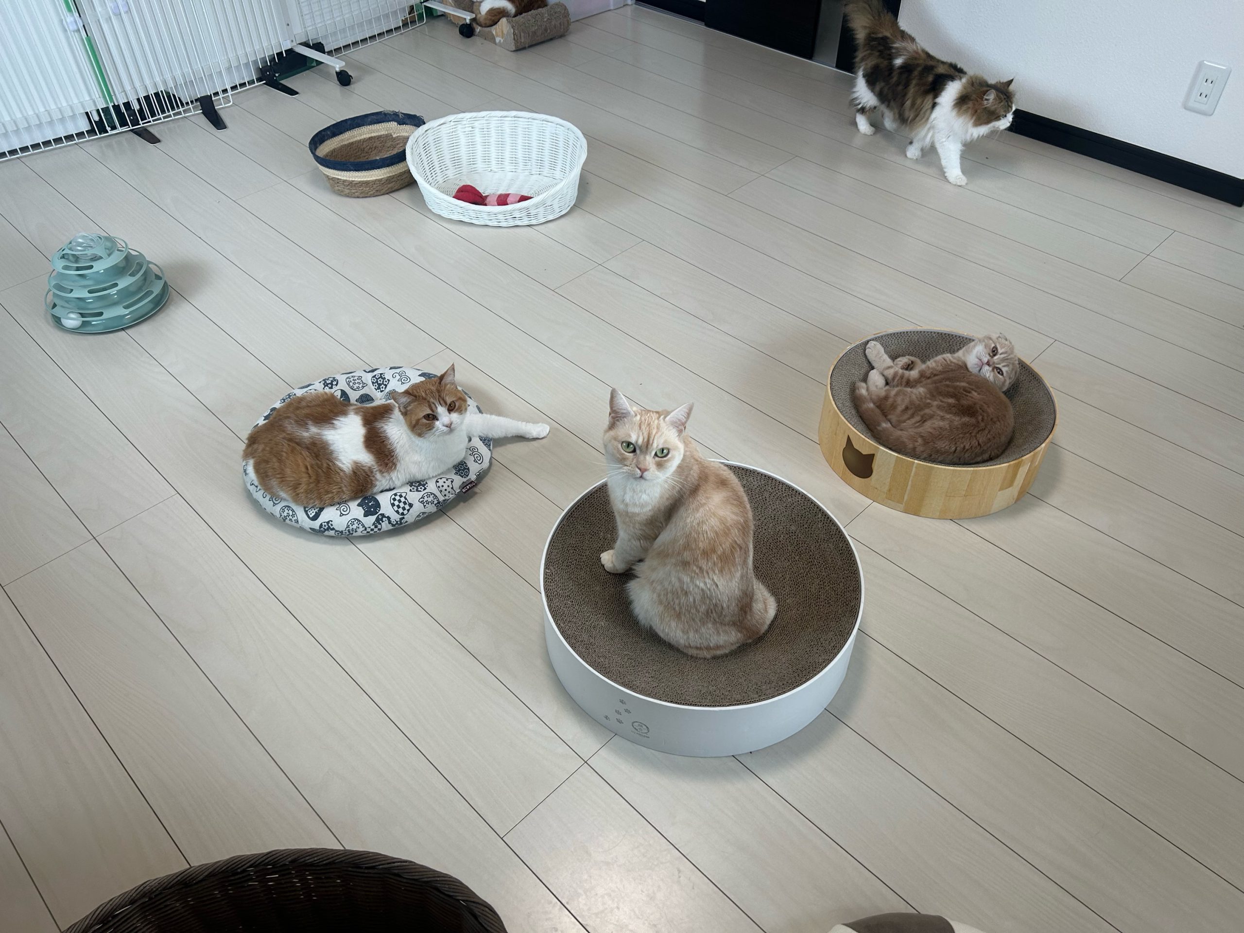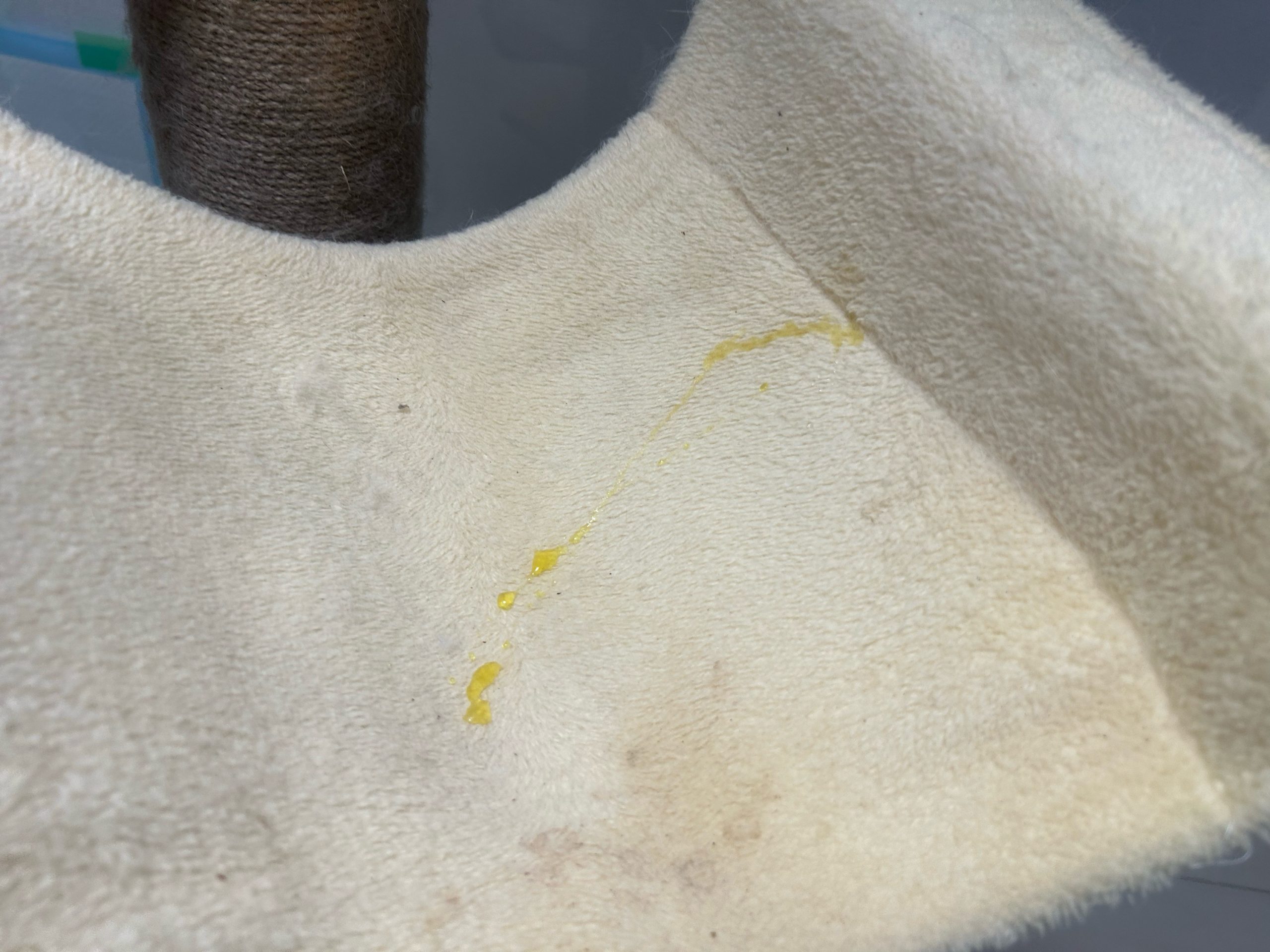 殿くんはいつものキャットタワーの布部分にスプレーあり🙆🏻♀️