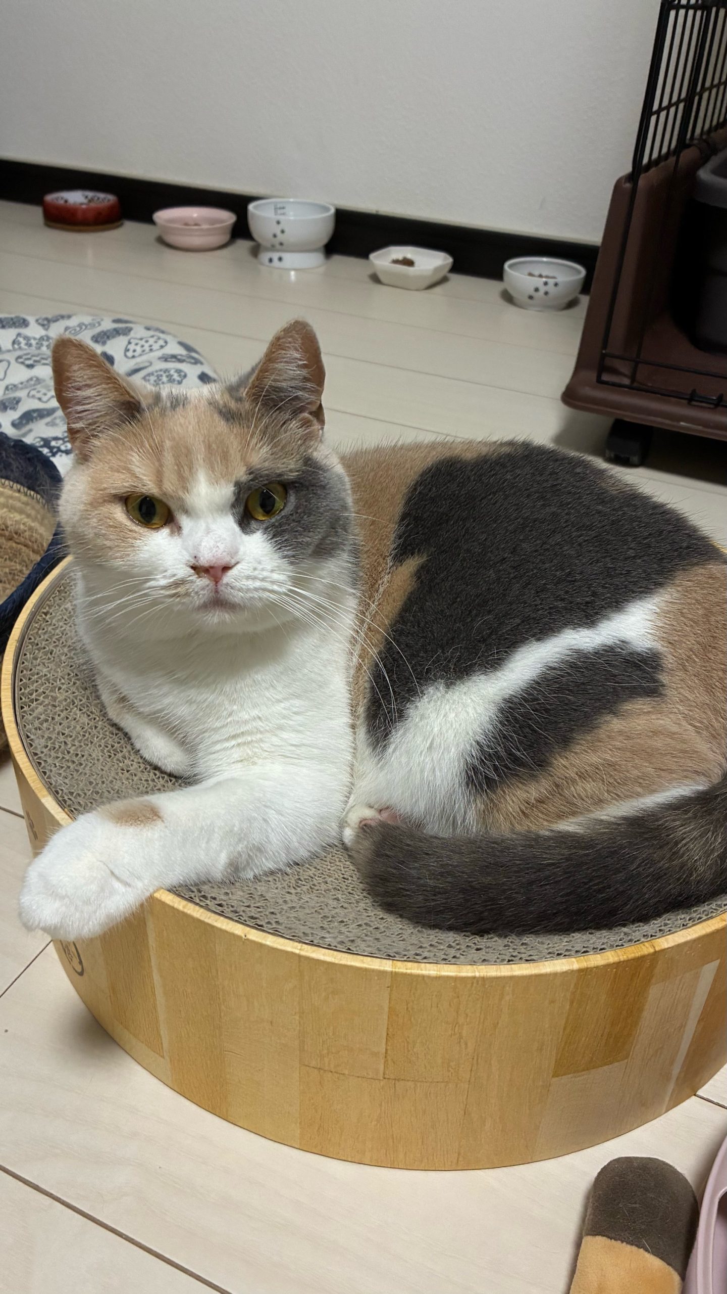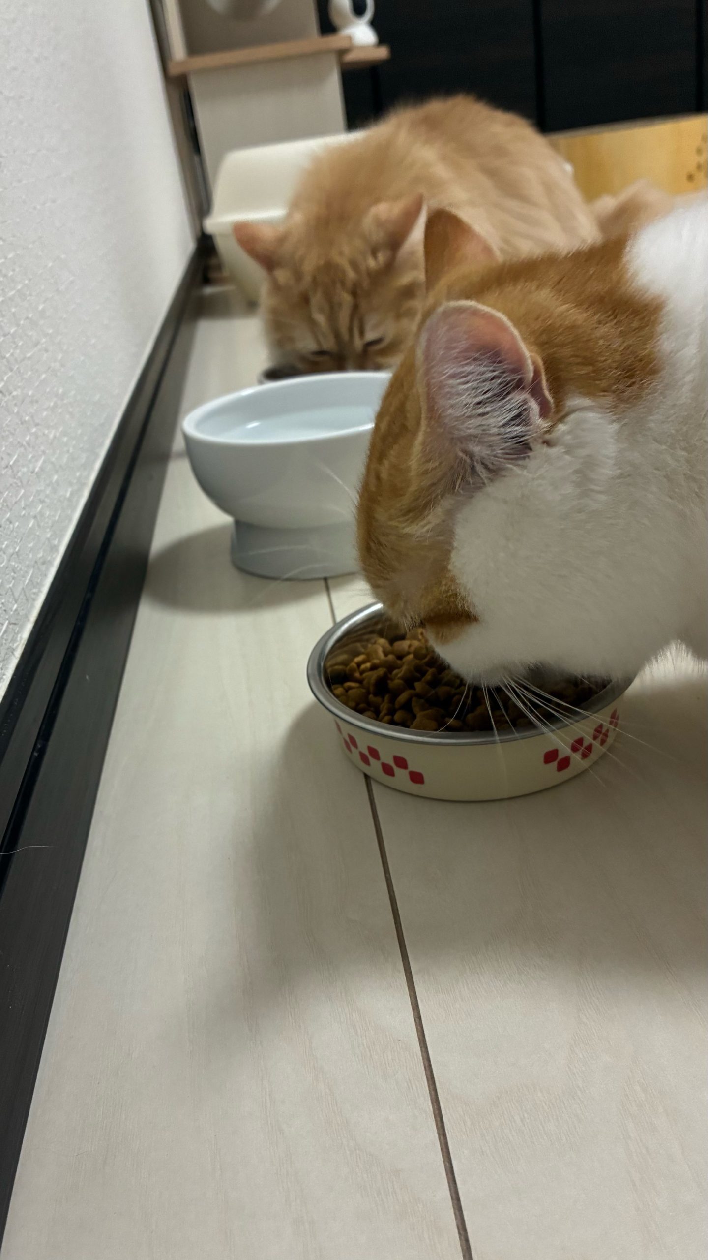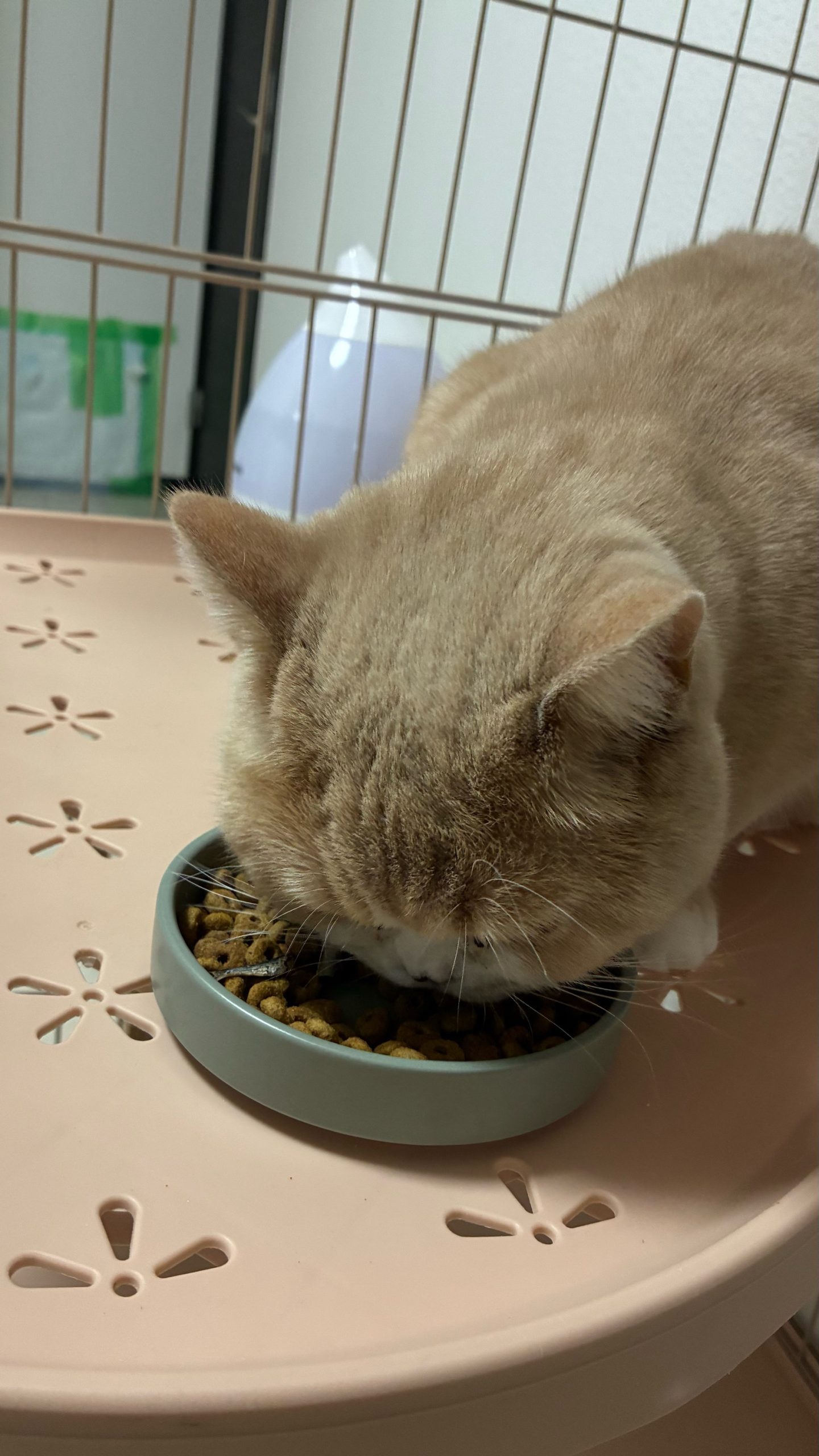 午前:まるくんフード嘔吐あり、その後片付ける前の朝ごはんをむしゃむしゃ