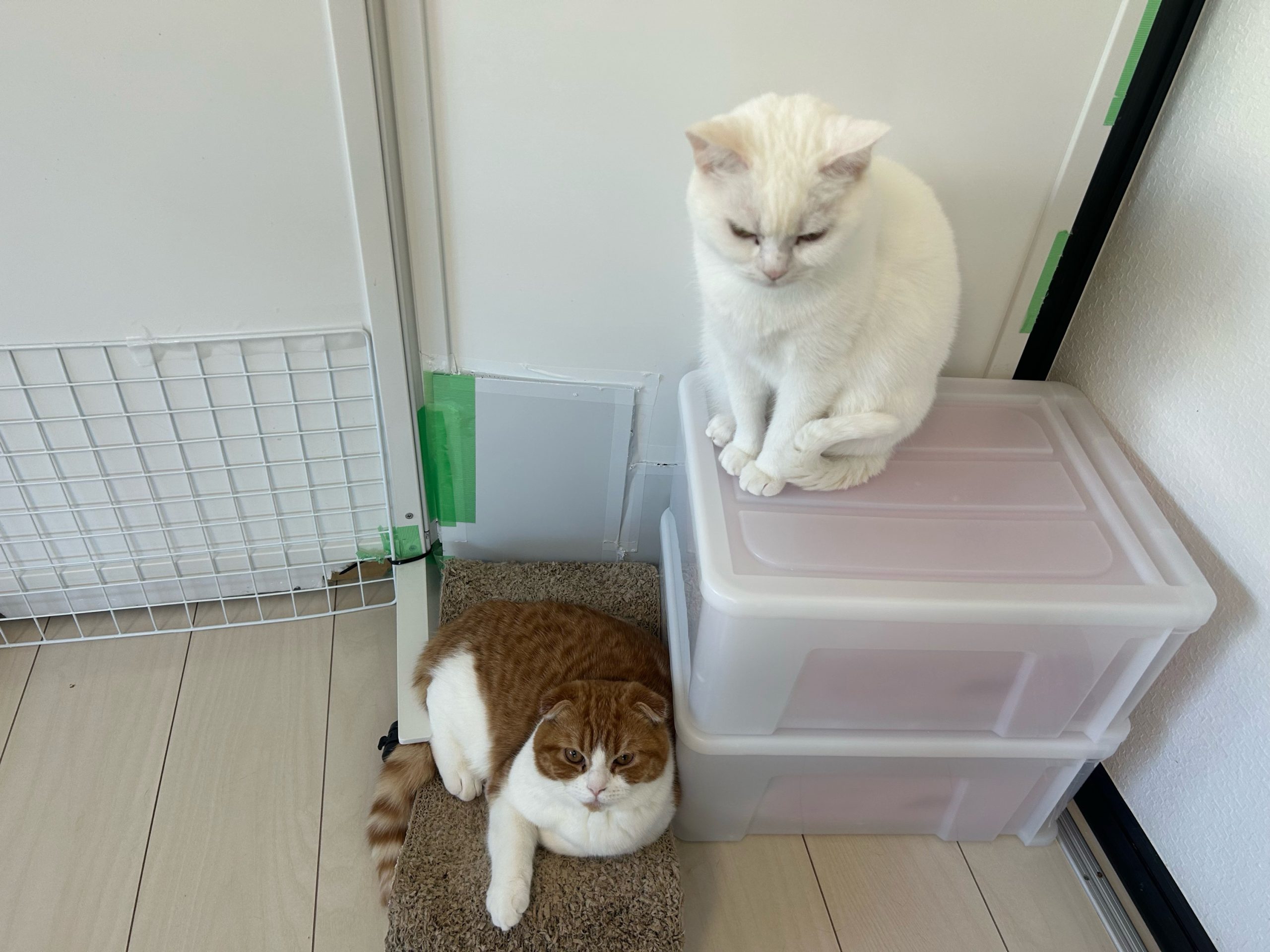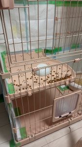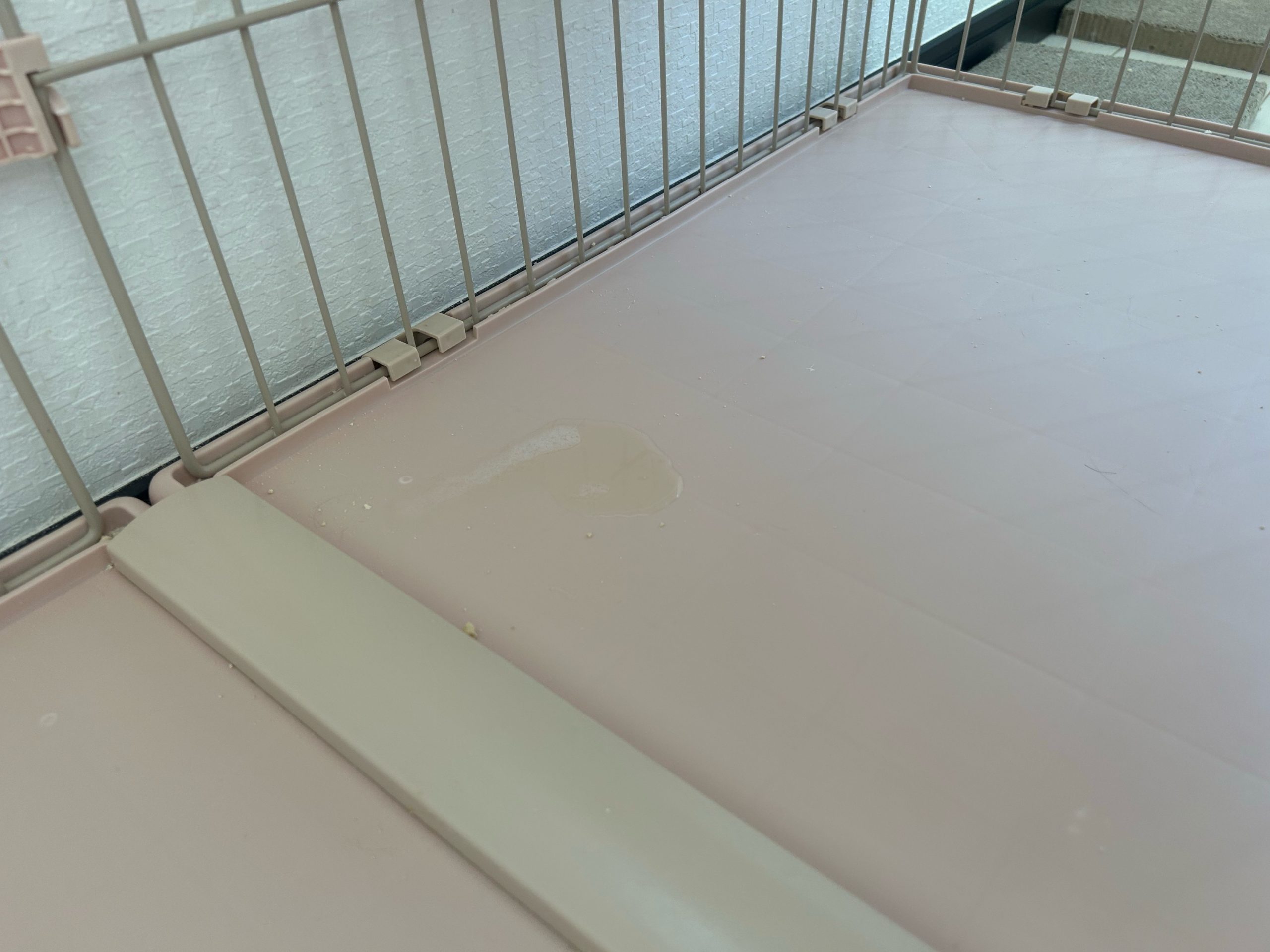 1階作業中に、2階の大ケージ内に誰かの胃液のみの嘔吐あり💦