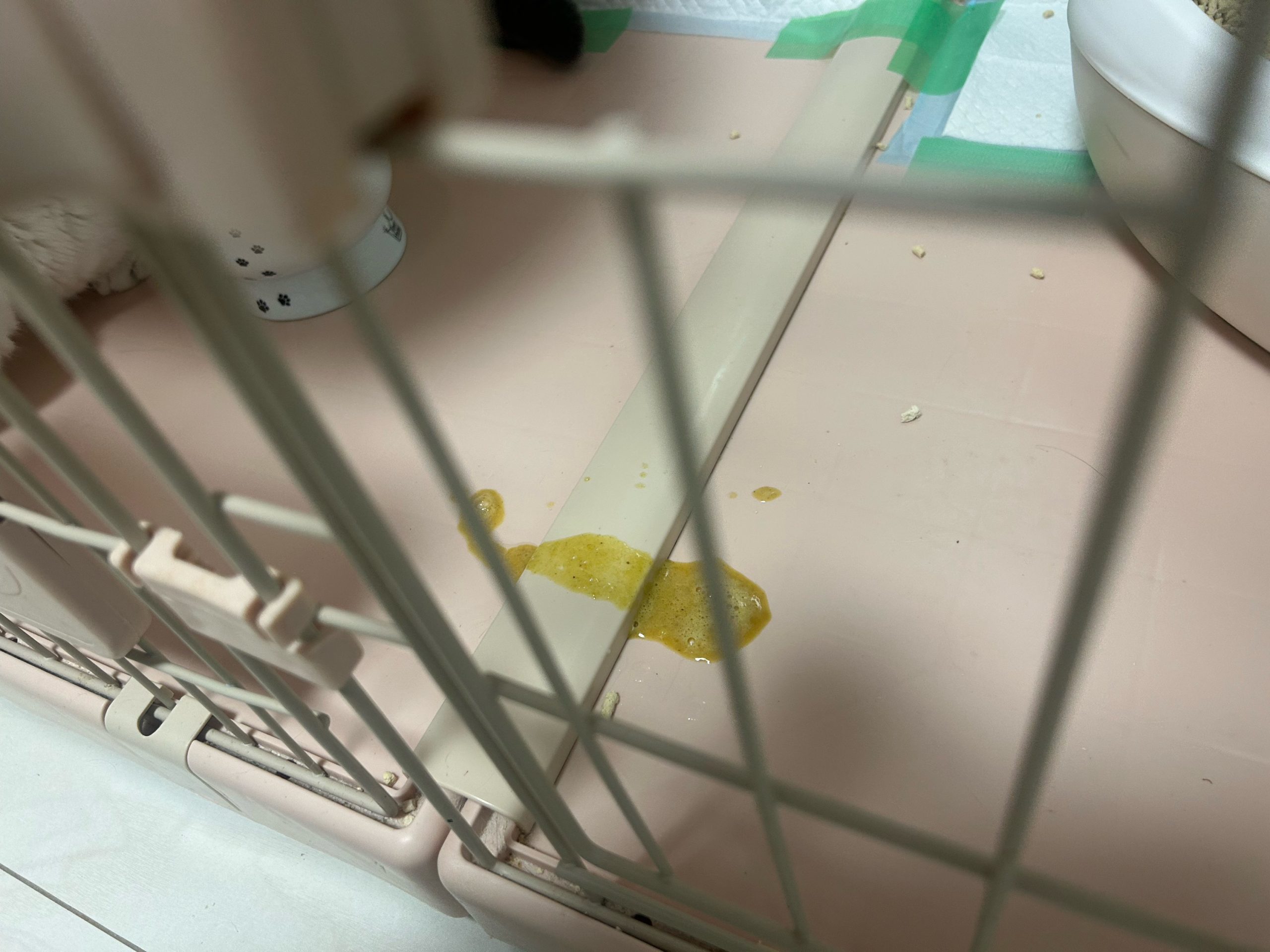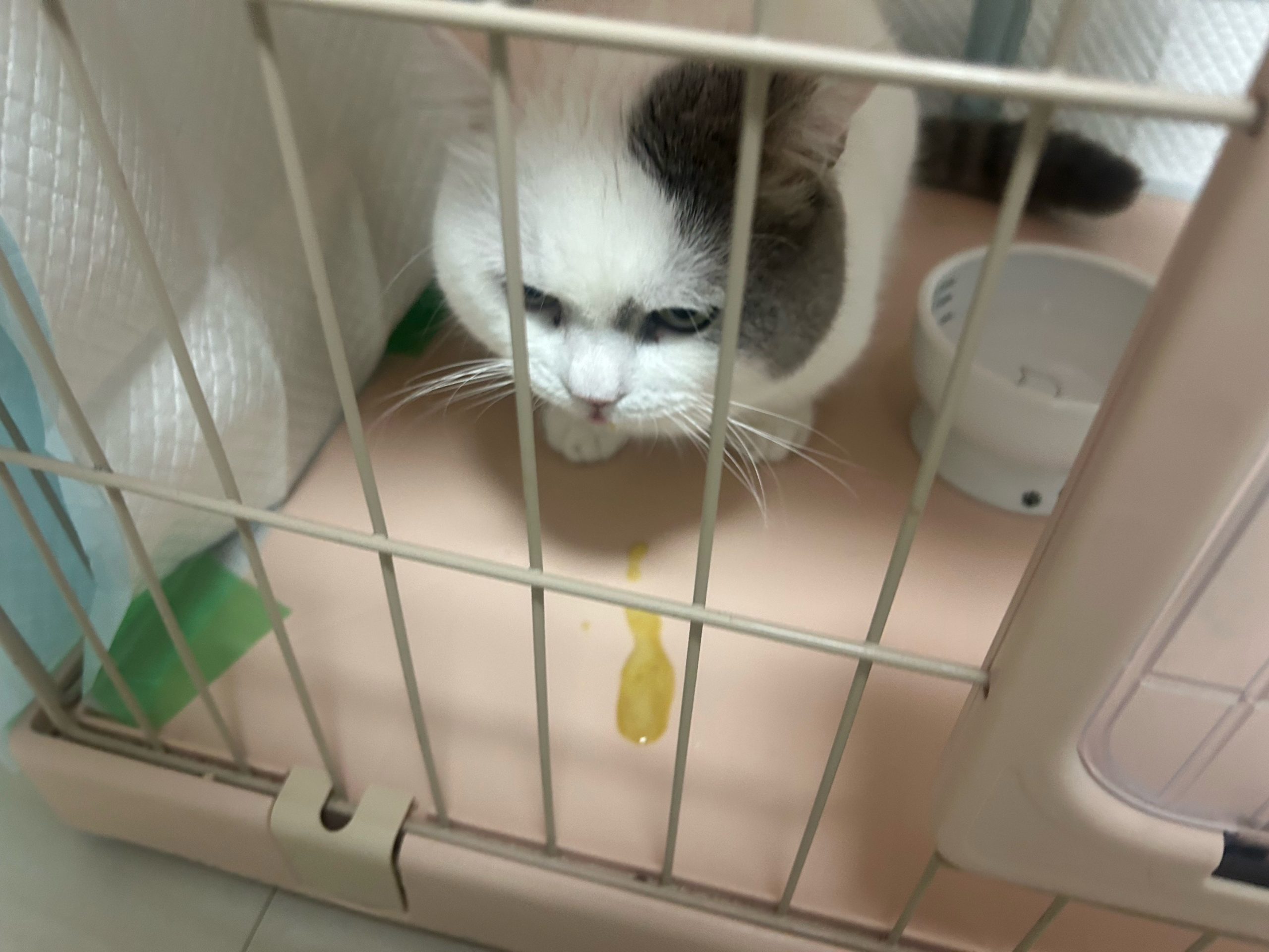 午前:ちょうどお部屋に入ったタイミングで、殿くん胃液のみの嘔吐あり💦