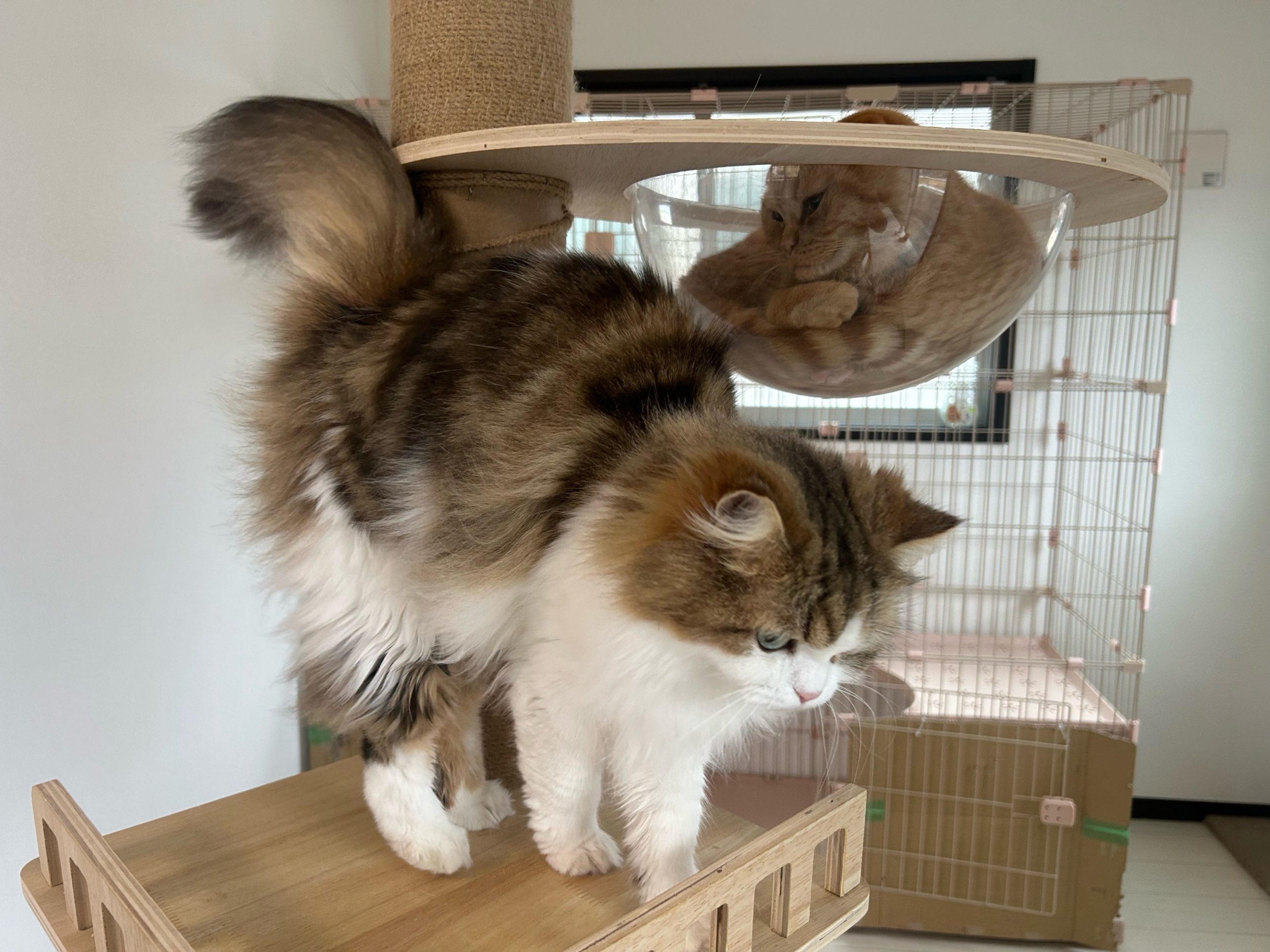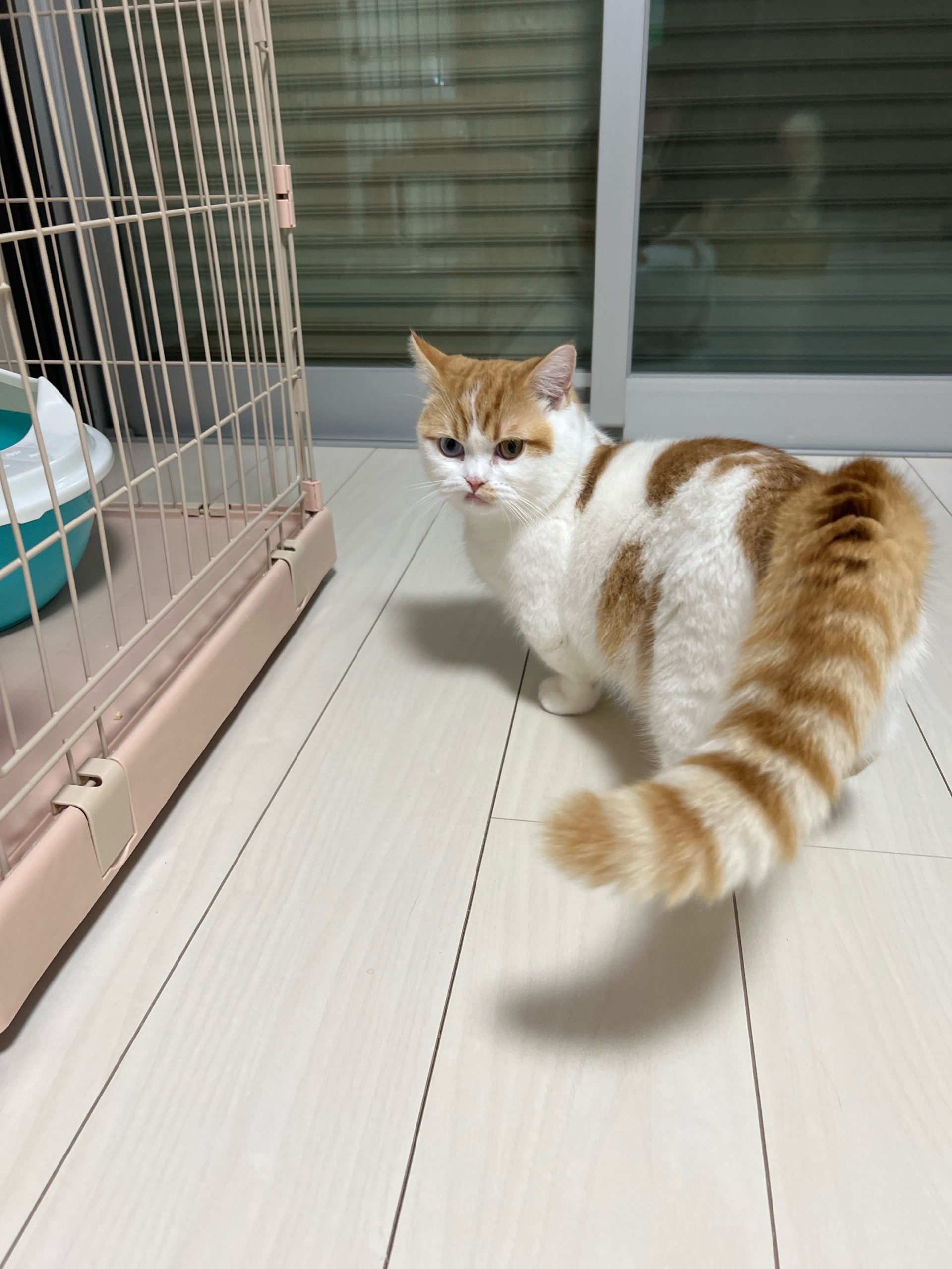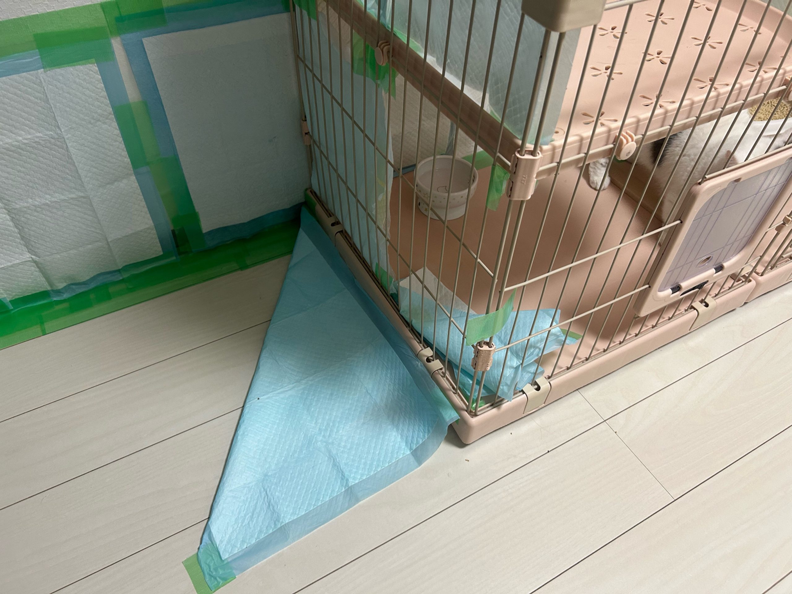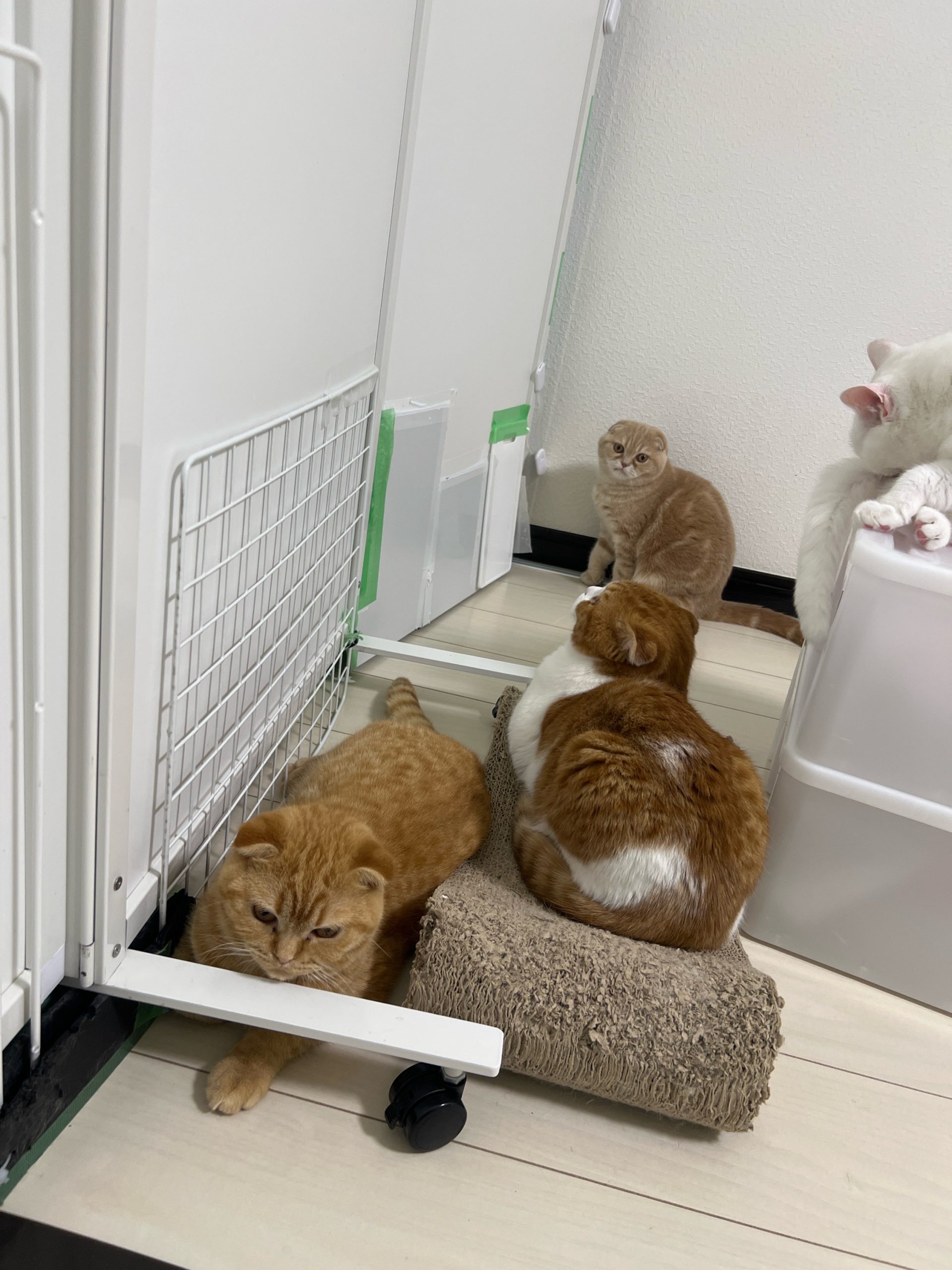 ロコちゃんがキッチンに侵入してしまい物音がするので子猫たちがパーティション近くで…