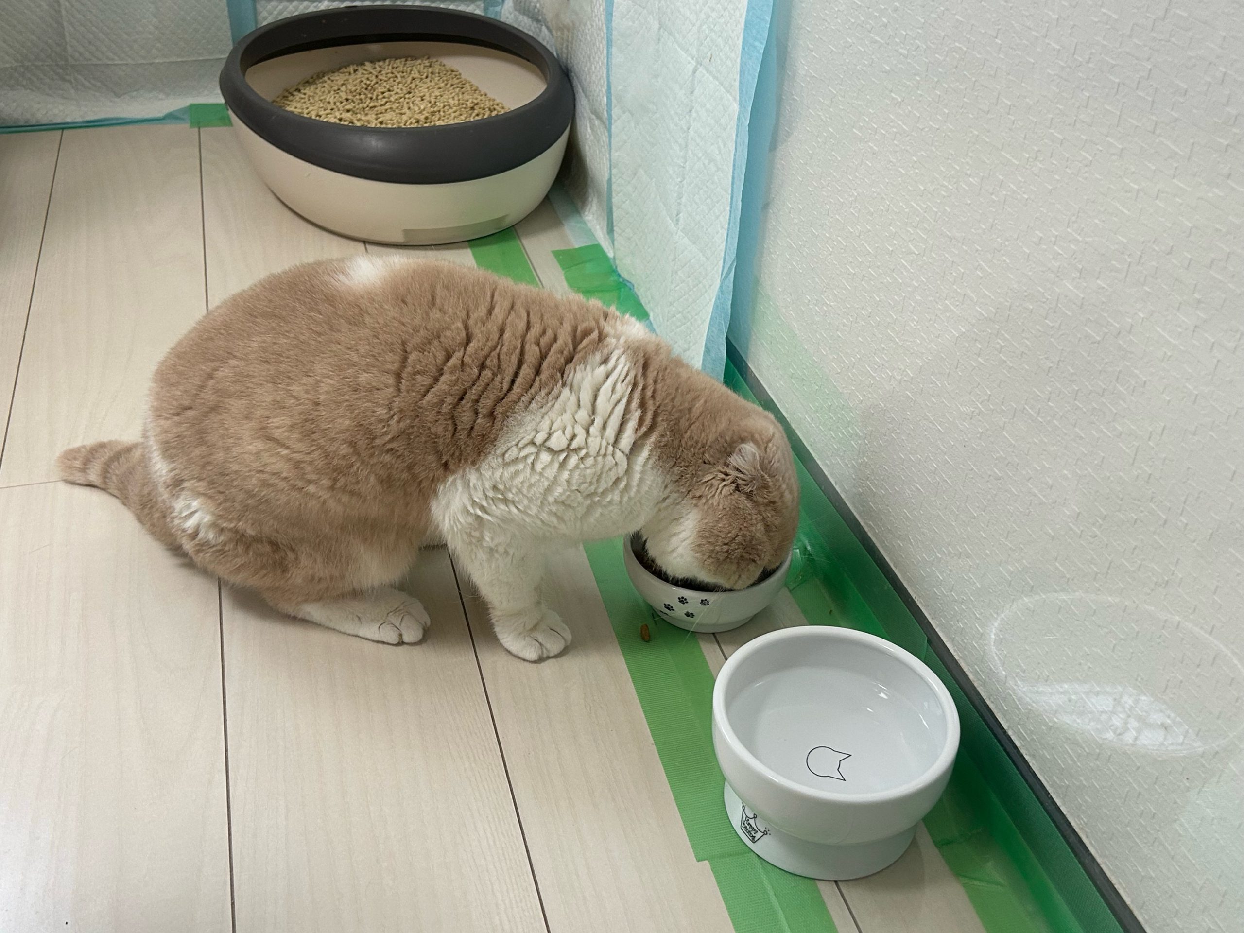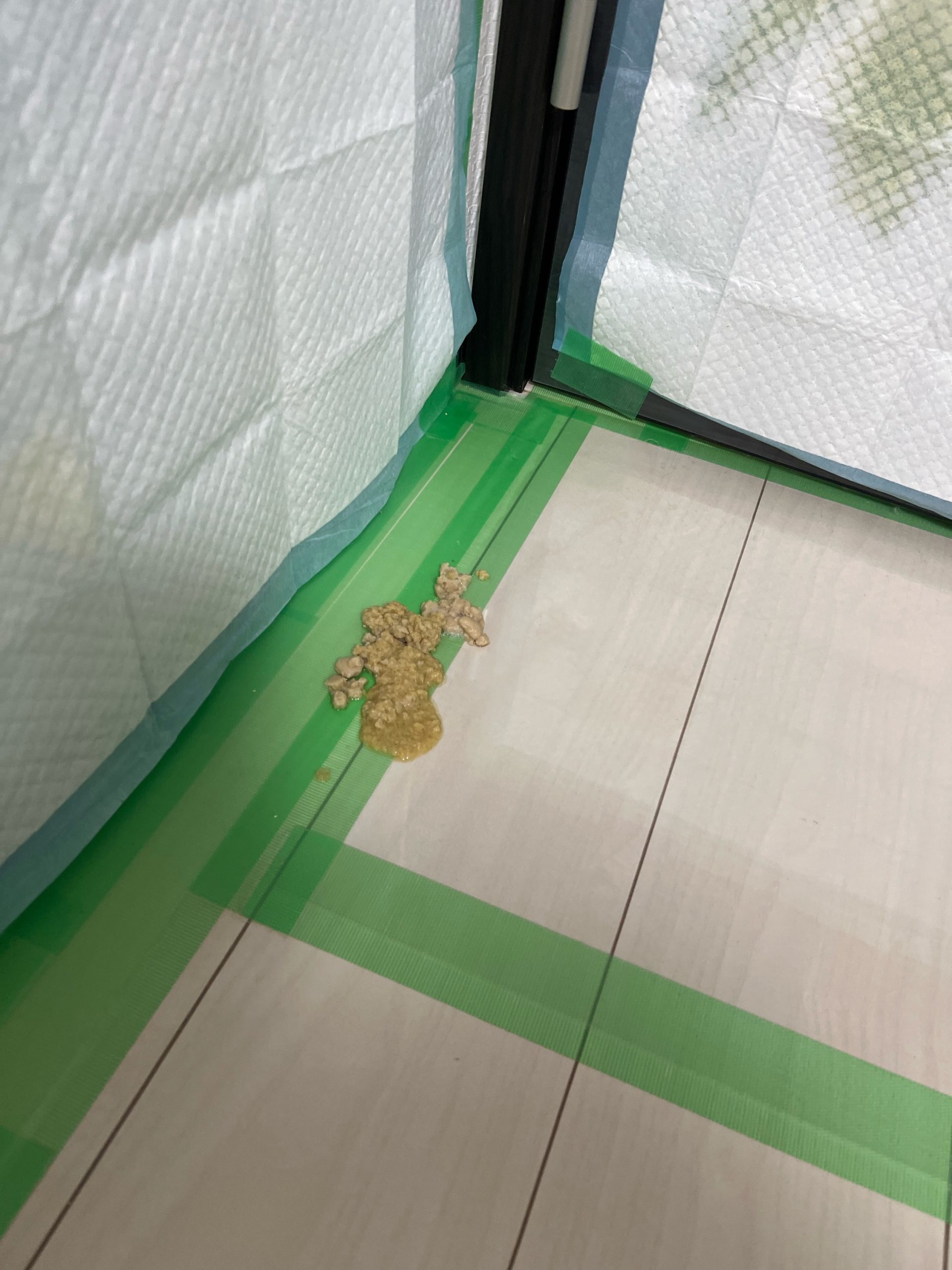 入室時はご飯に手をつけていない様子。作業中に嘔吐その後ご飯を食べていた。