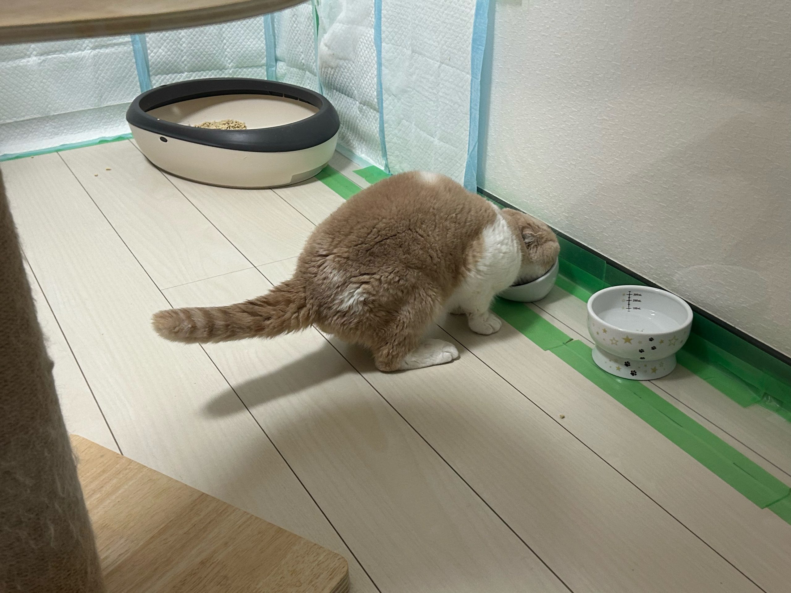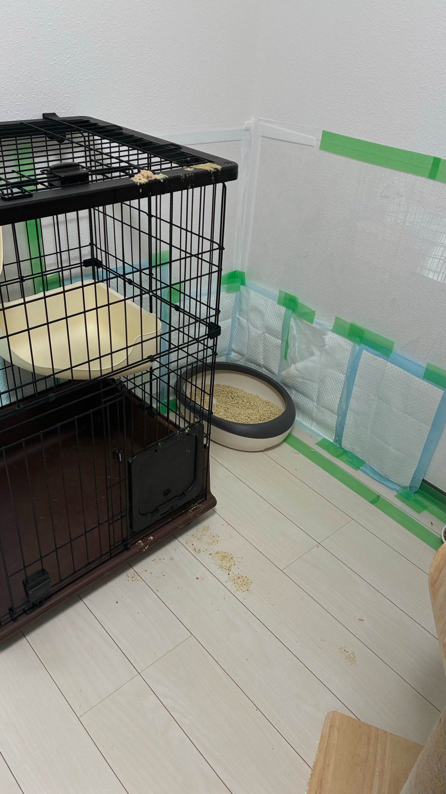 午前:まるくんケージ上から嘔吐あり、部屋もスプレー多めで少し荒れてました😂