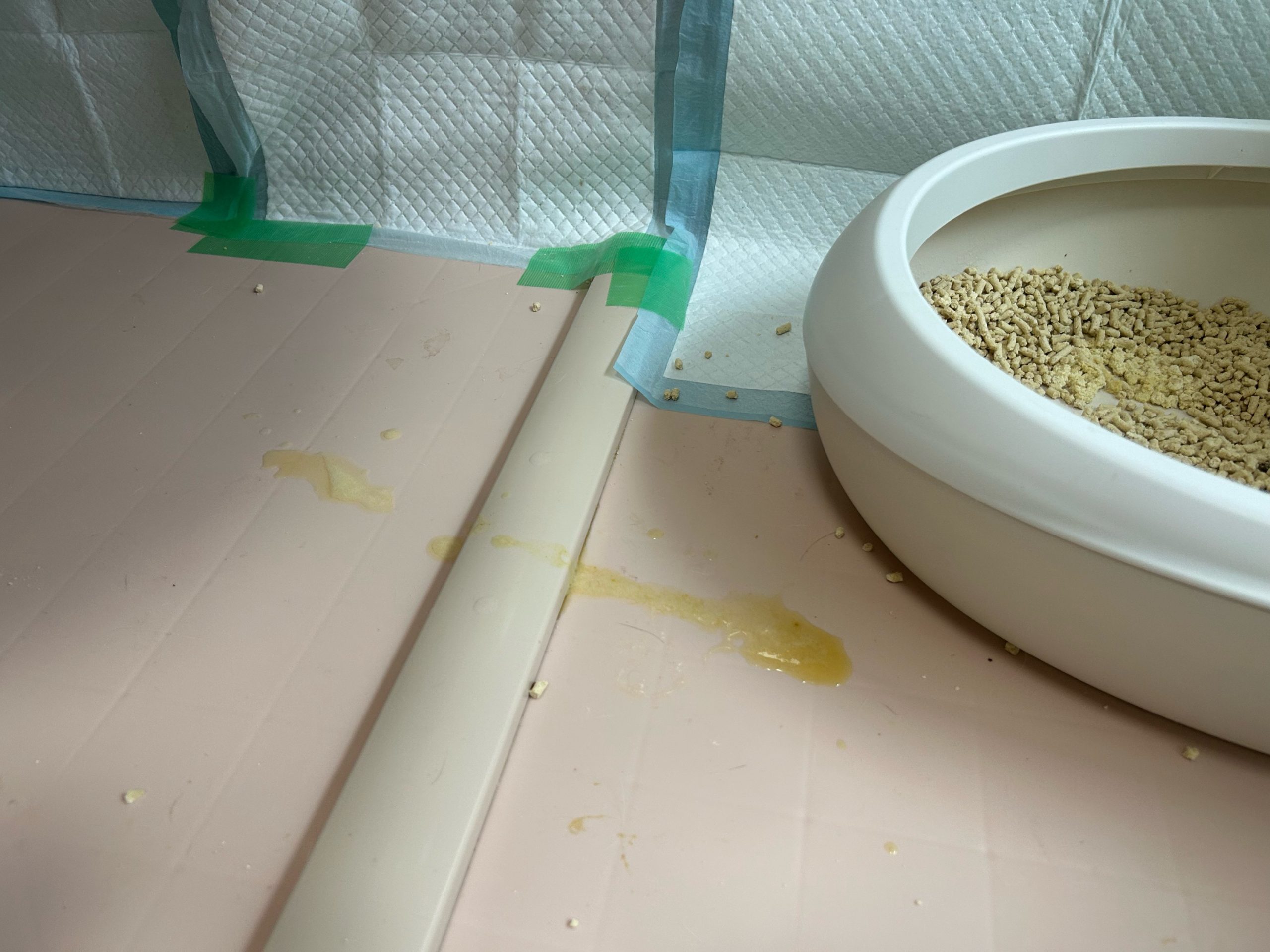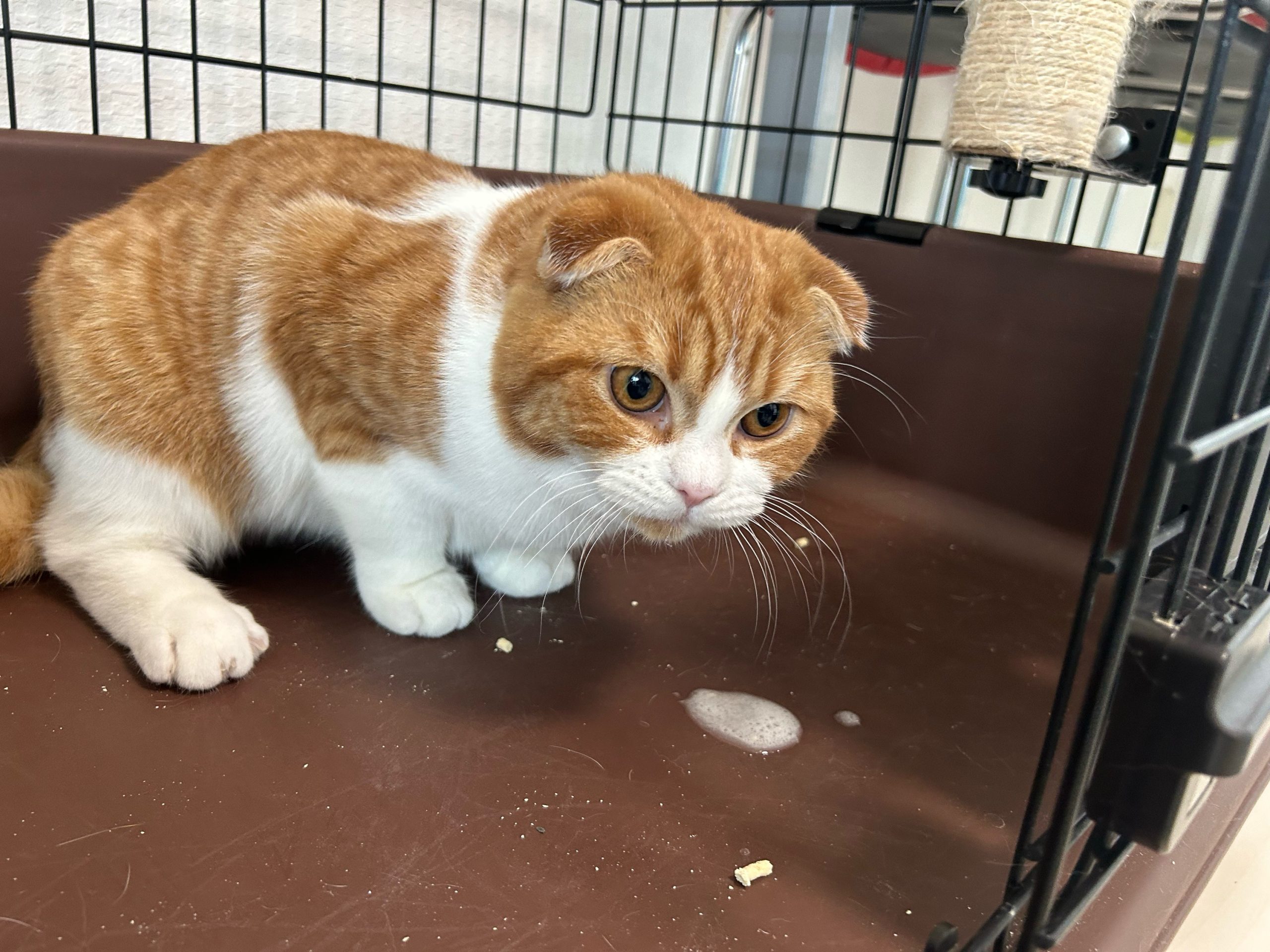 殿くんケージ内に黄色の胃液のみの嘔吐あり💦