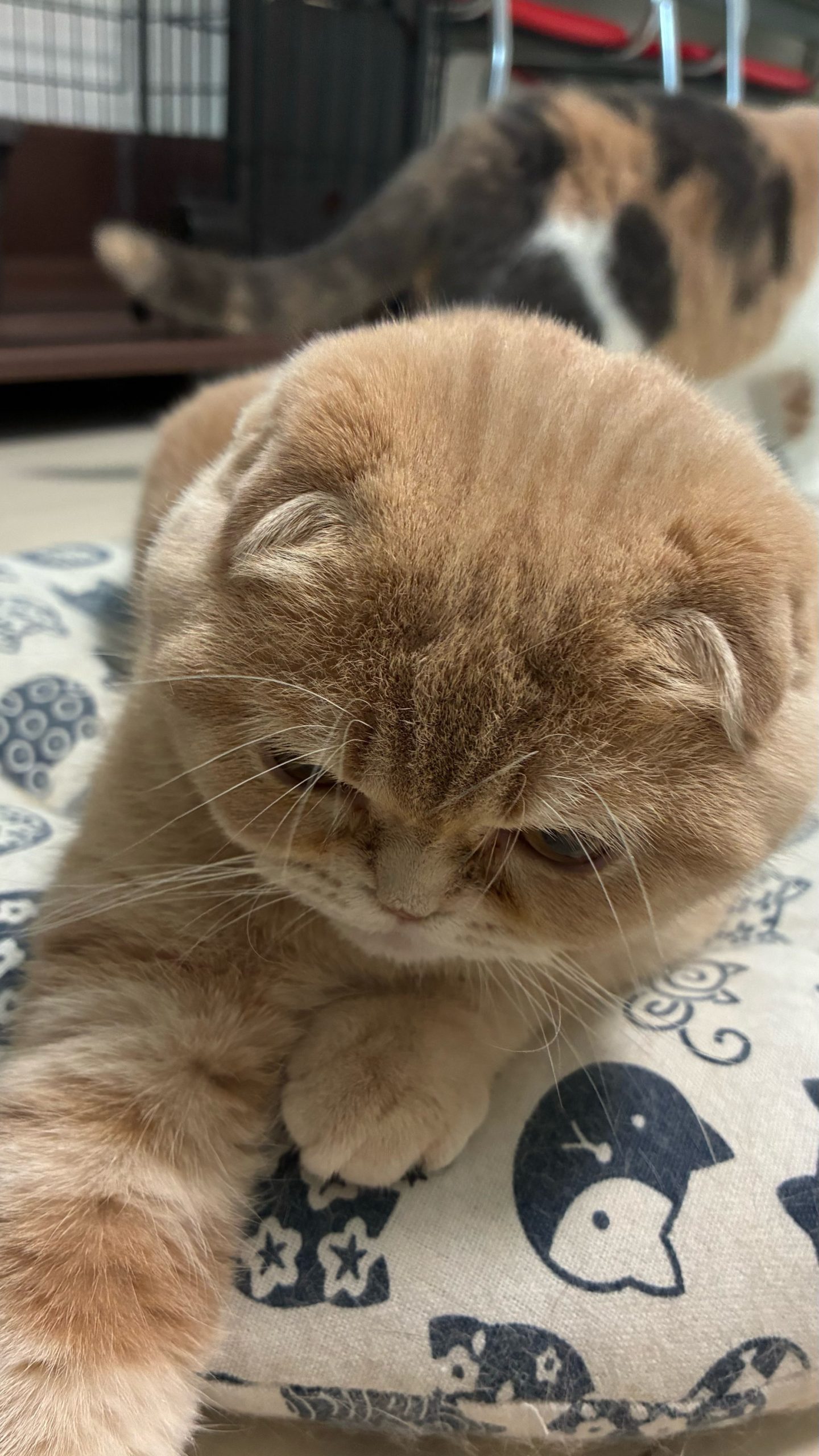 ぐらちゃんがフード食べてすぐの嘔吐、掃除道具を取りに行く間にはるげんコンビがすかさず先に嘔吐処理に向かうので大変です😂