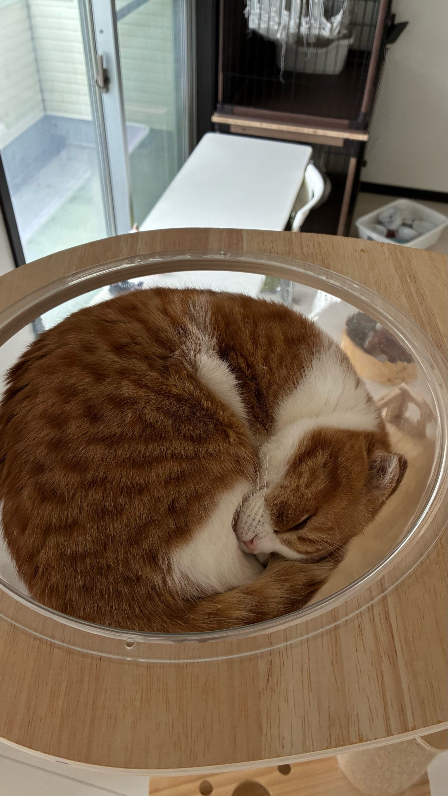 午前:雨模様でねこたちも朝イチは丸くなっておやすみモード💤