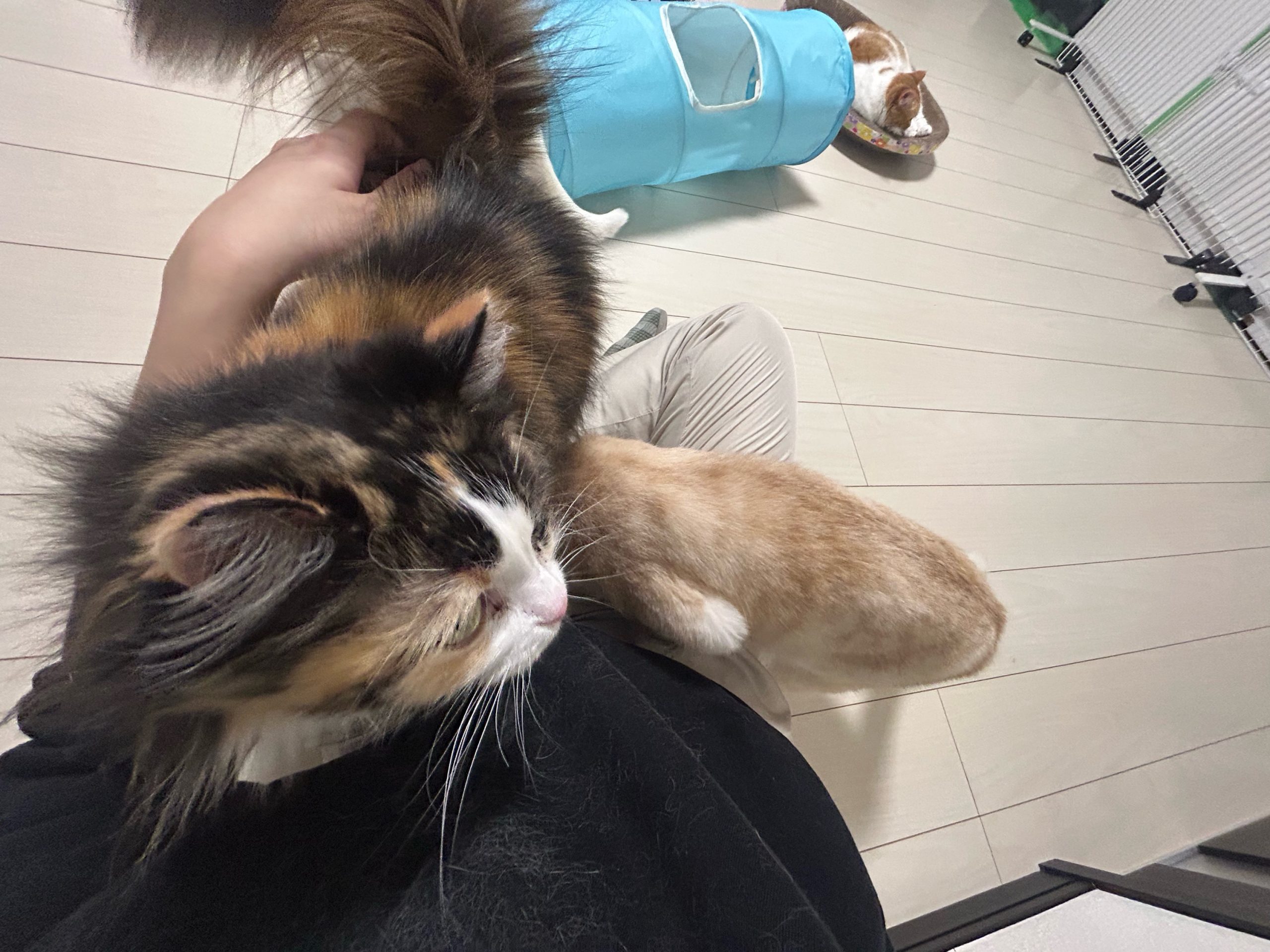 清掃後の記録打ち込み時に座っていると、姫ちゃんは普段よりも強めに甘えているご様子でした👀