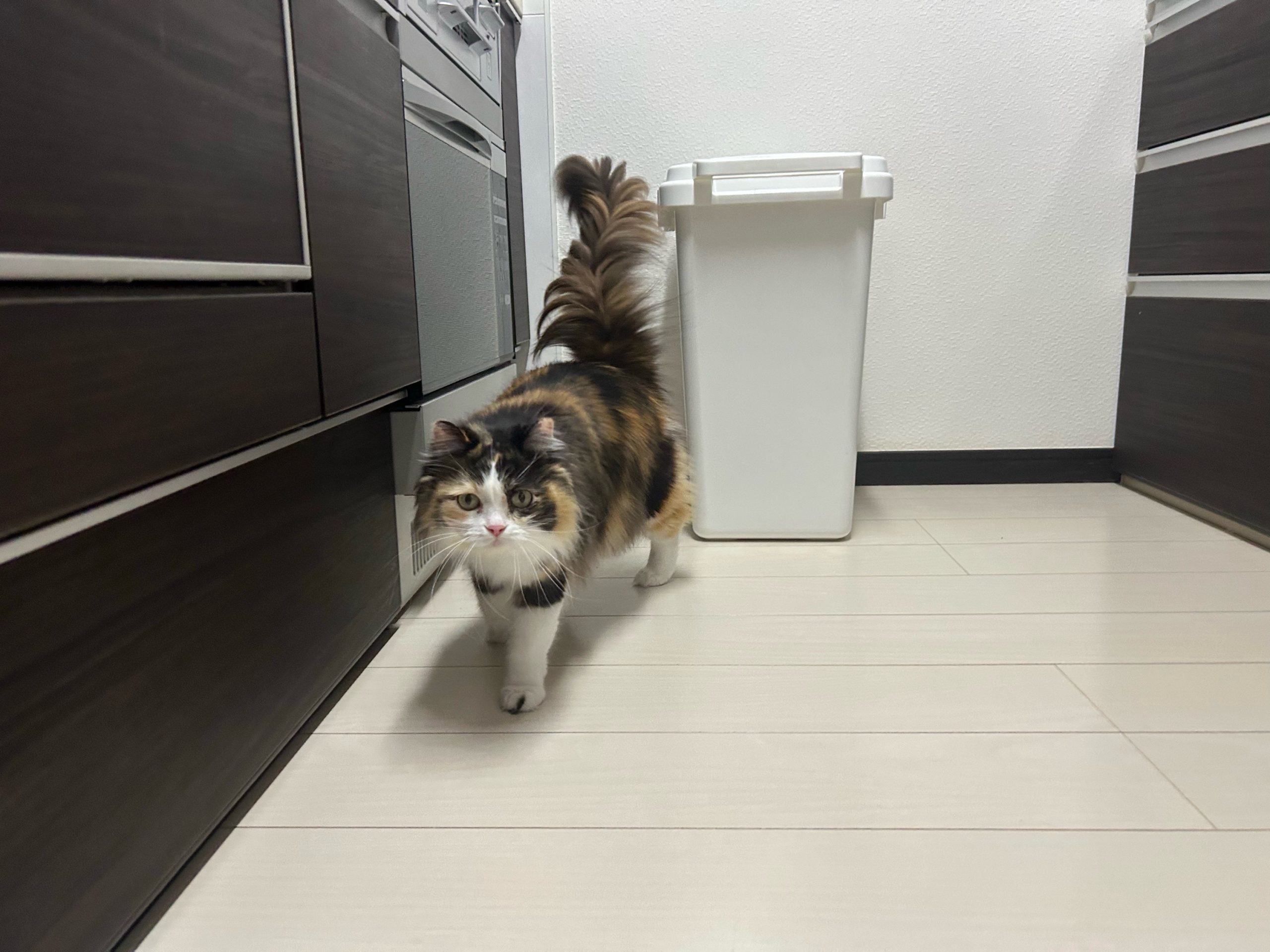 ご飯配膳時に姫ちゃんが作業エリアに侵入🐈🐾