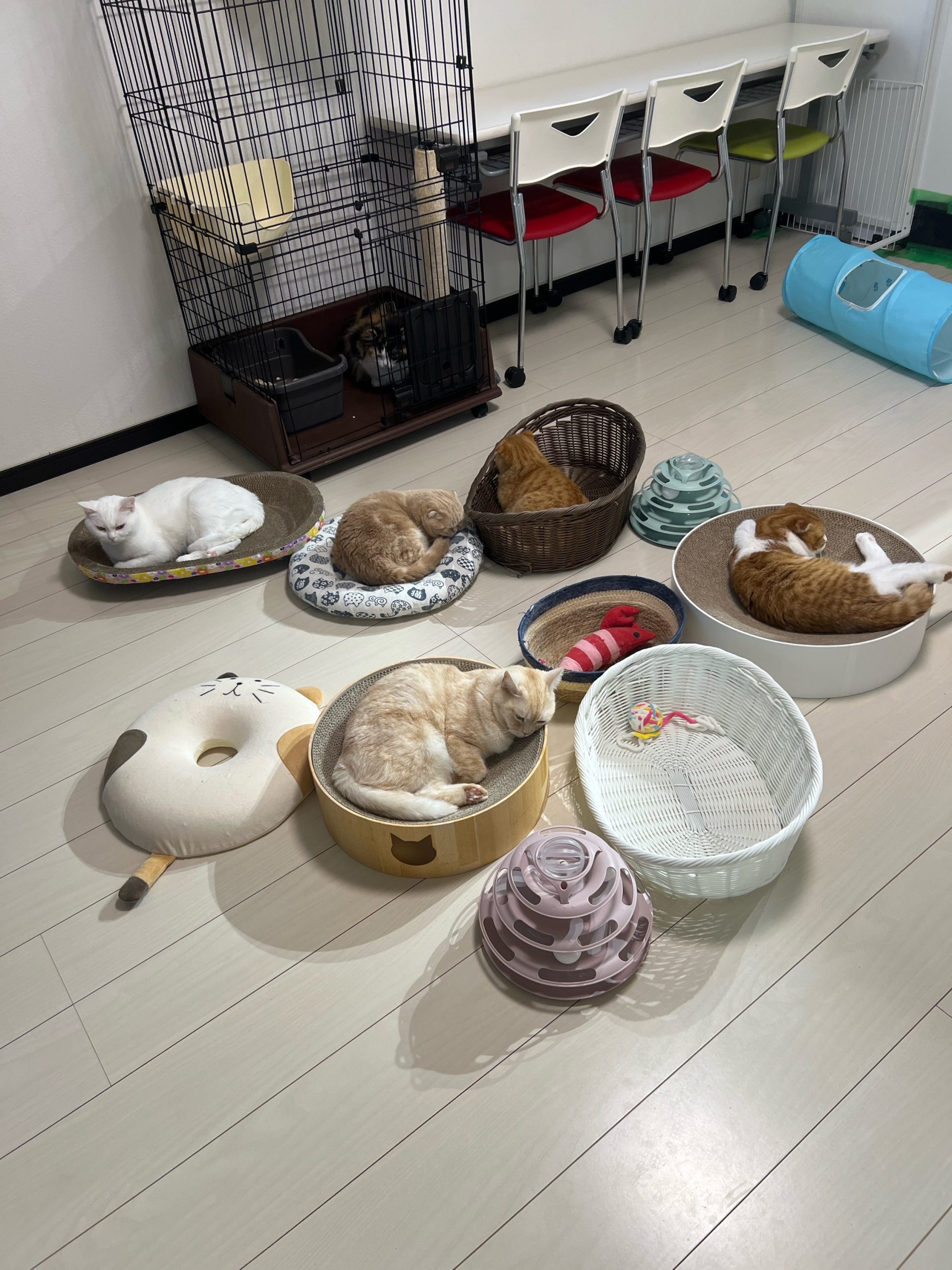 2階では1度、ロコちゃんvsレモンちゃん、おこめちゃんvsレモンちゃんの猫パンチや追いかけがあり💦