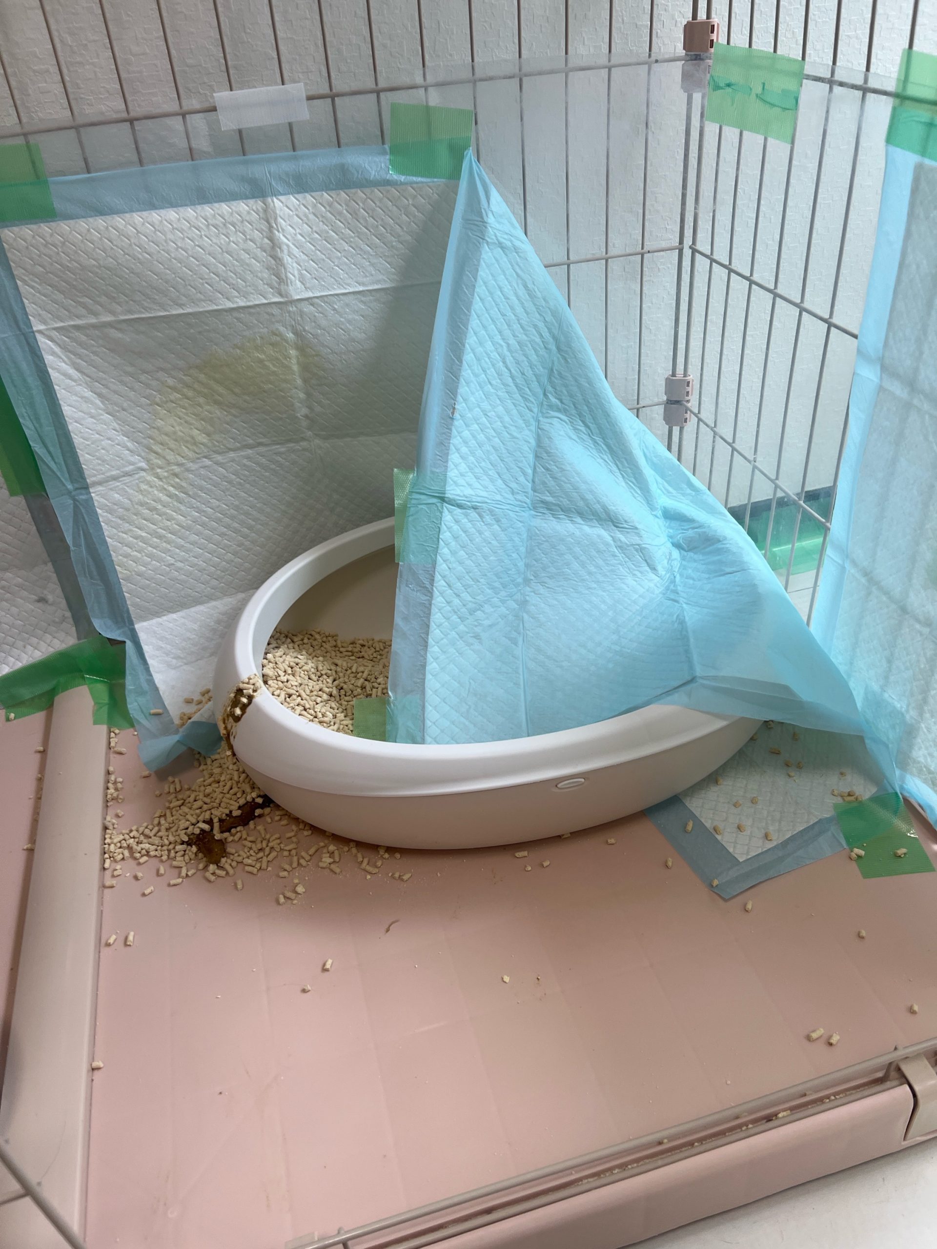 午後:殿くんケージ上からスプレー❓