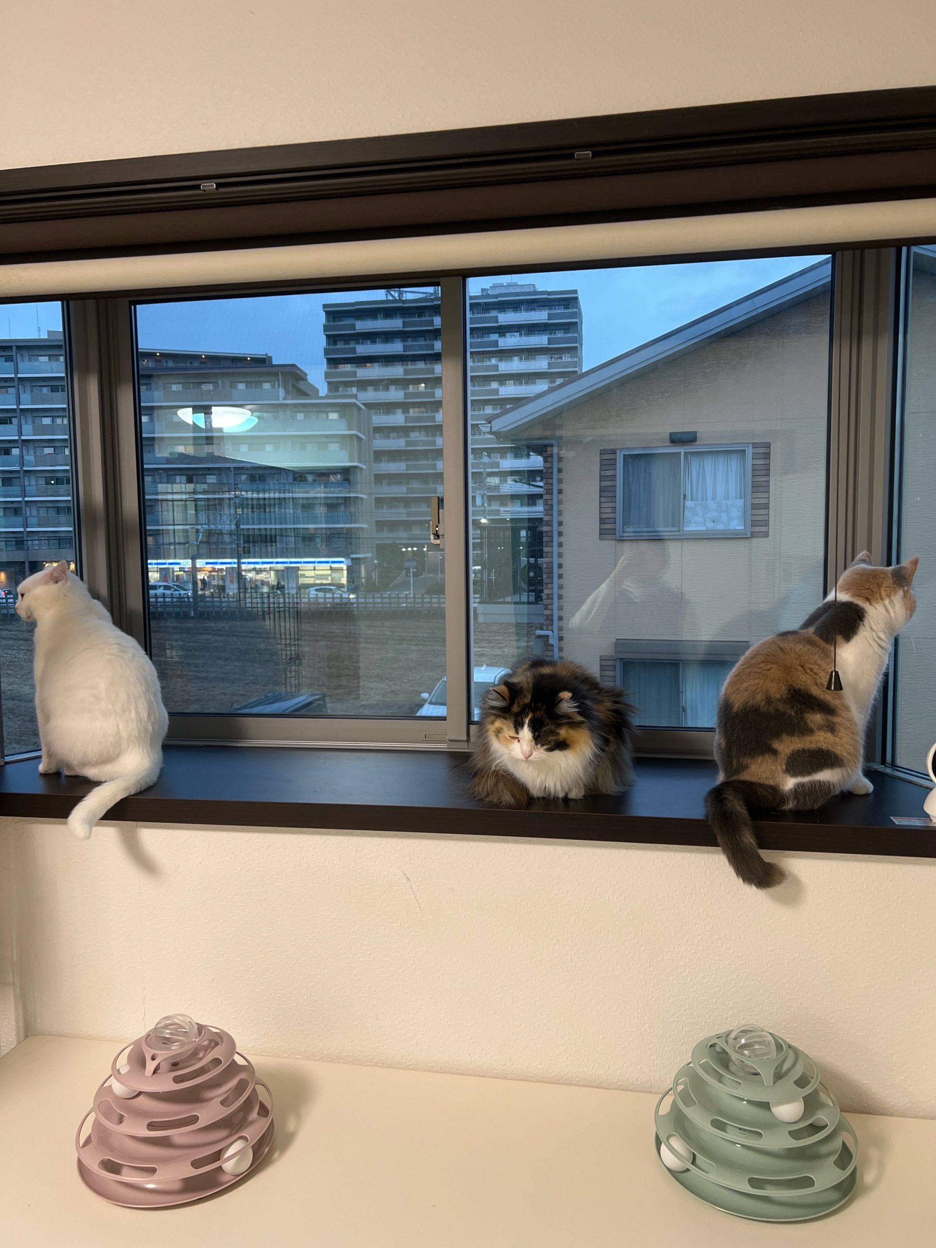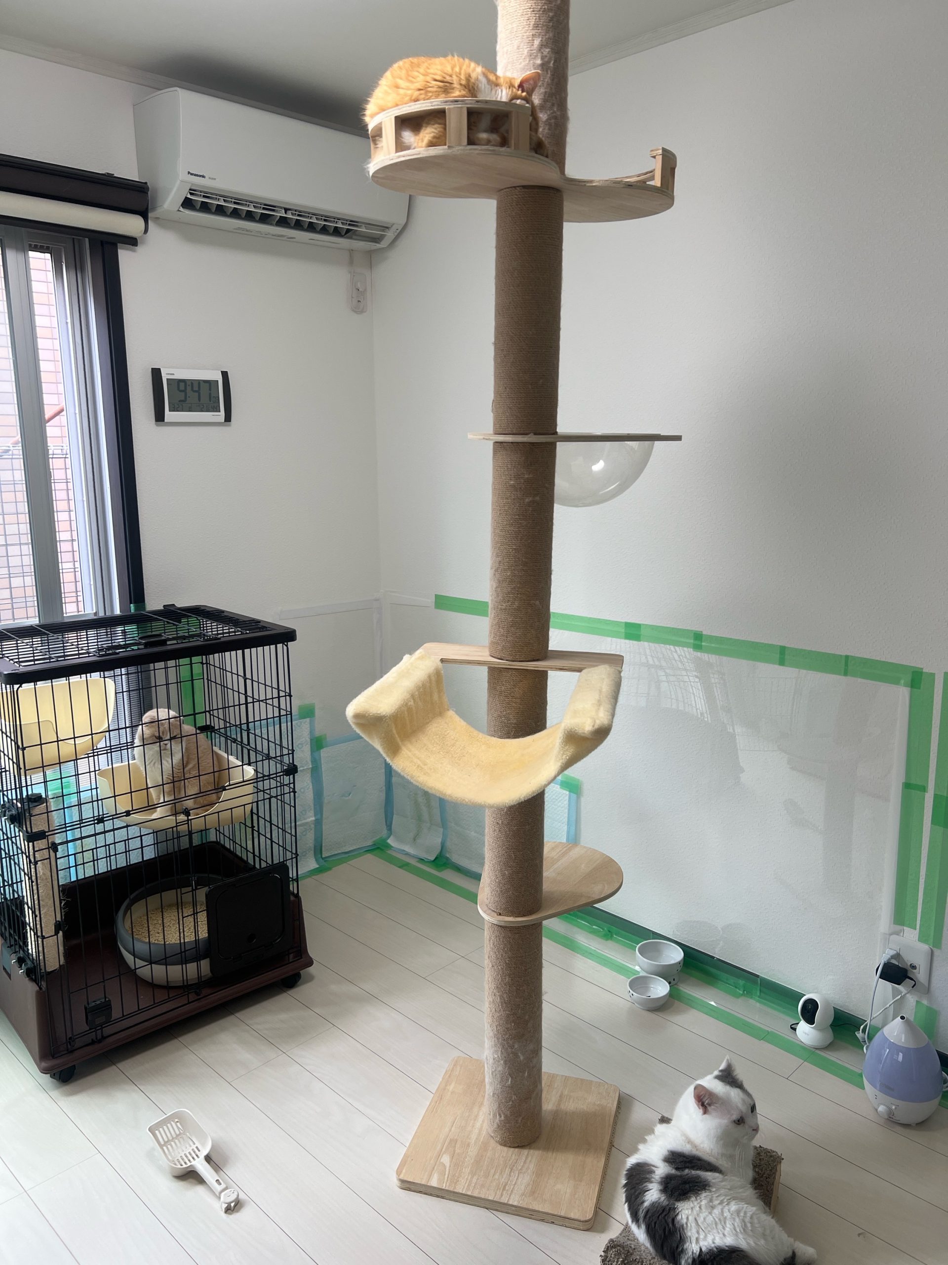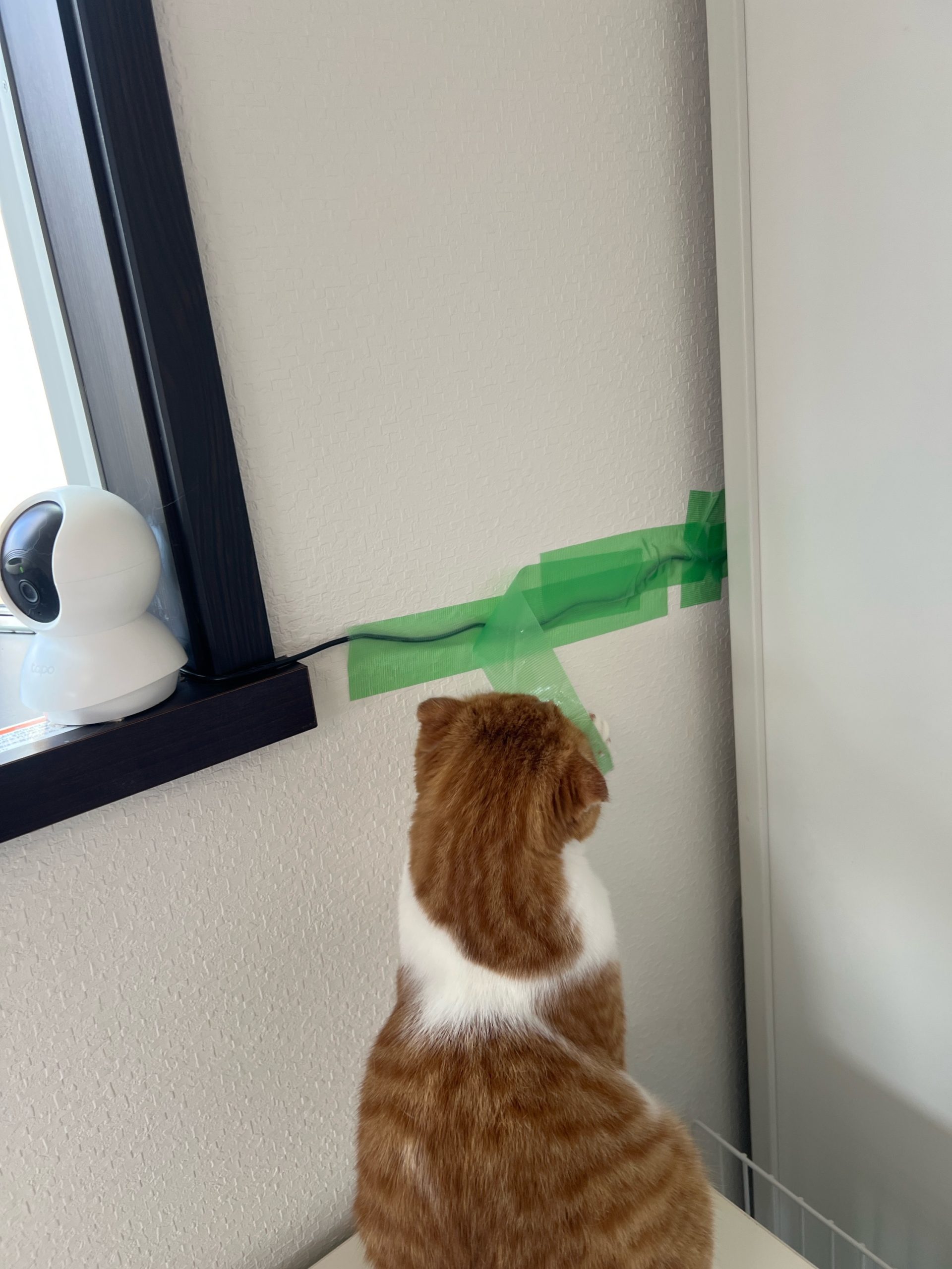 2階ロコ赤ちゃん弟くんは出窓のカメラのコードを齧ってしまい😓テープを貼れば剥がされ💦
