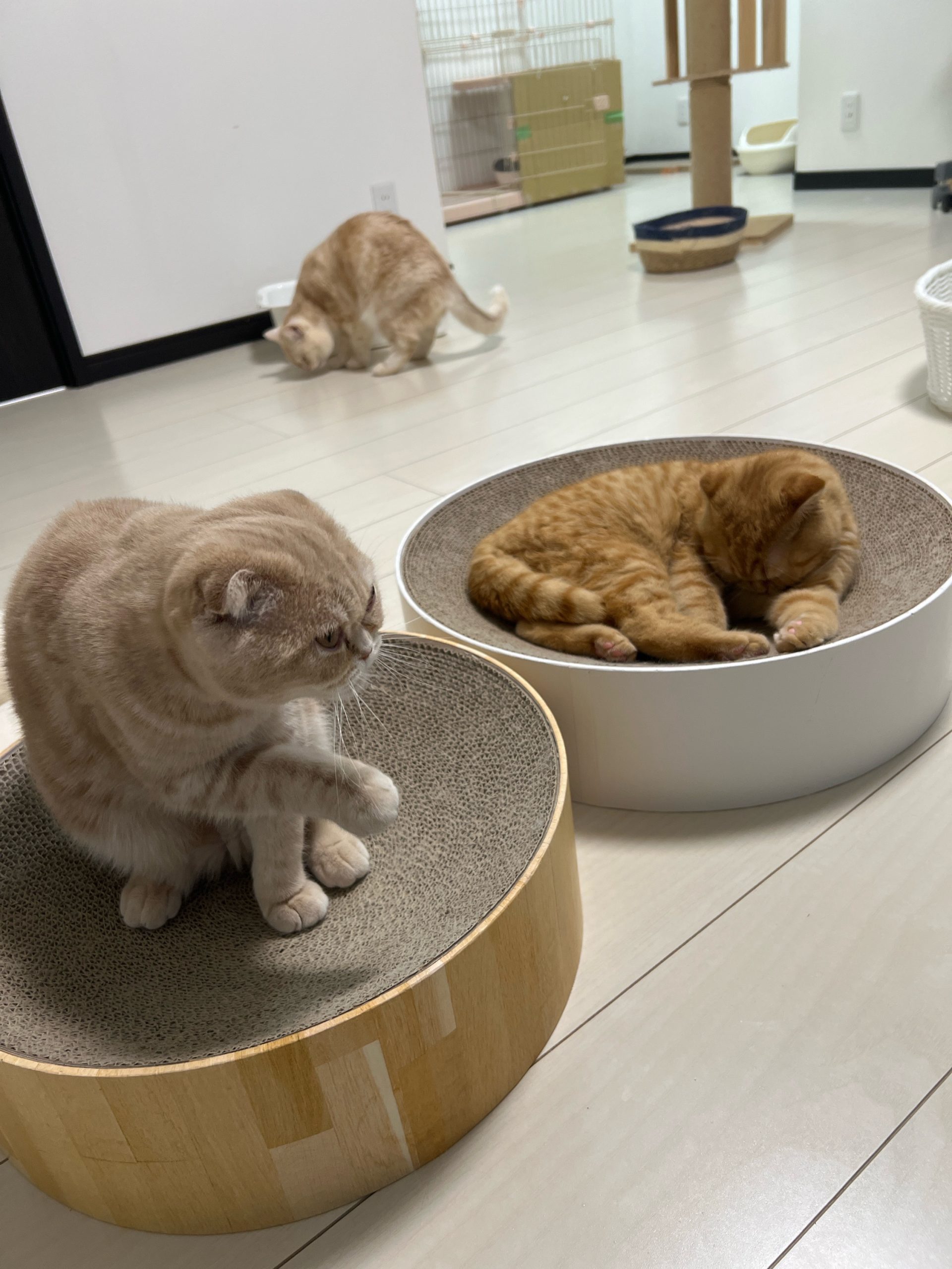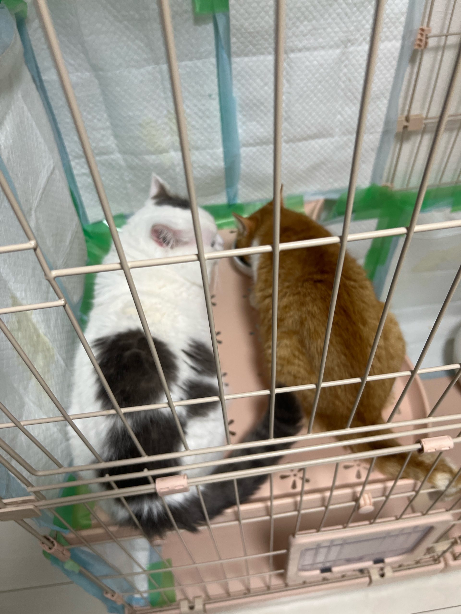 むぎちゃんは殿くんが気にならないくらいシート剥がしに夢中‥💦