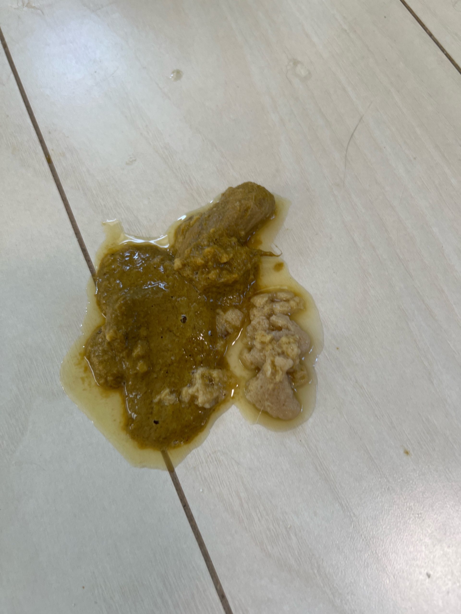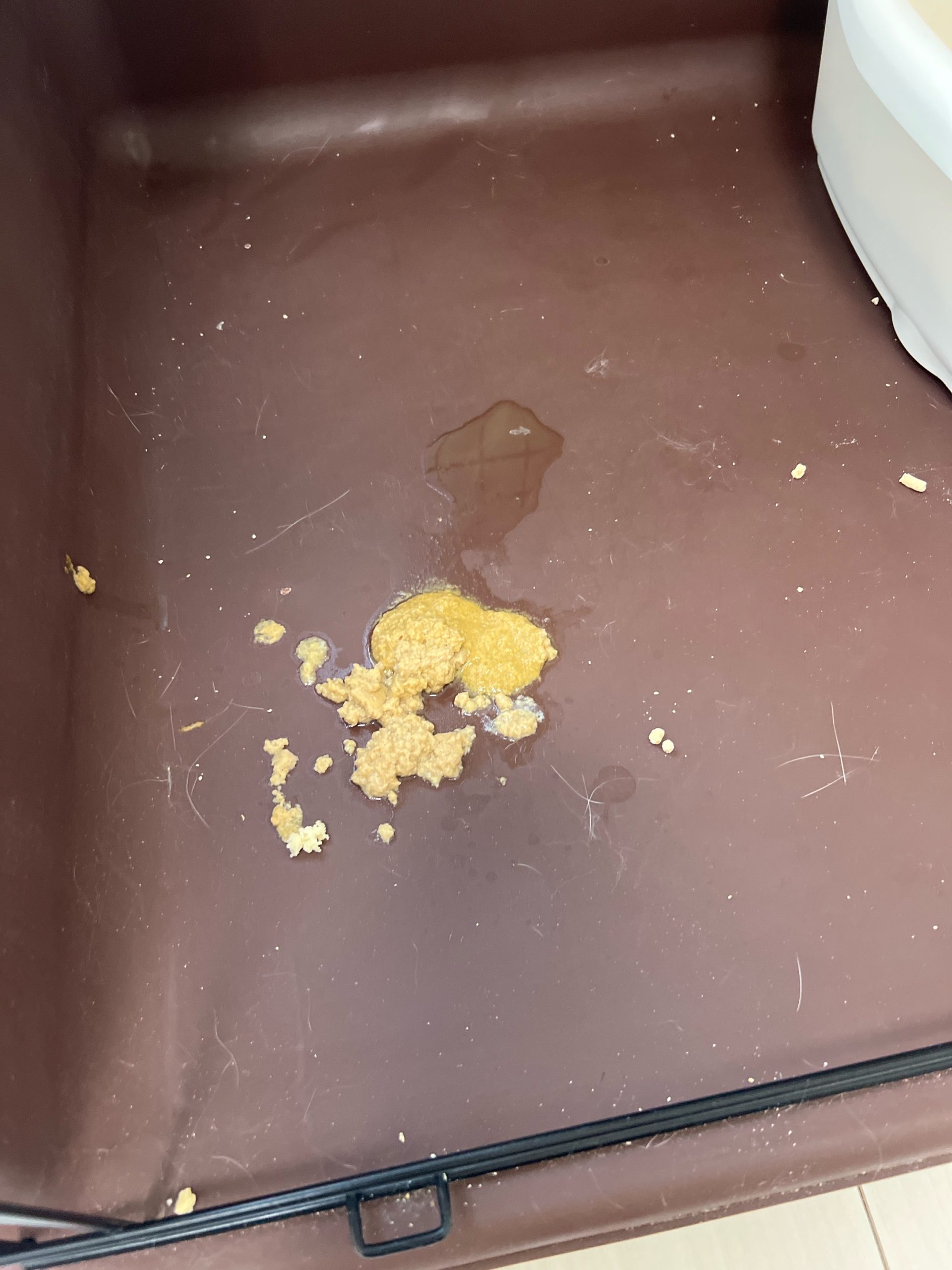 2階も毛玉混じりのフードとかなり消化されてる嘔吐。玄米くん茶色の液体の嘔吐あり