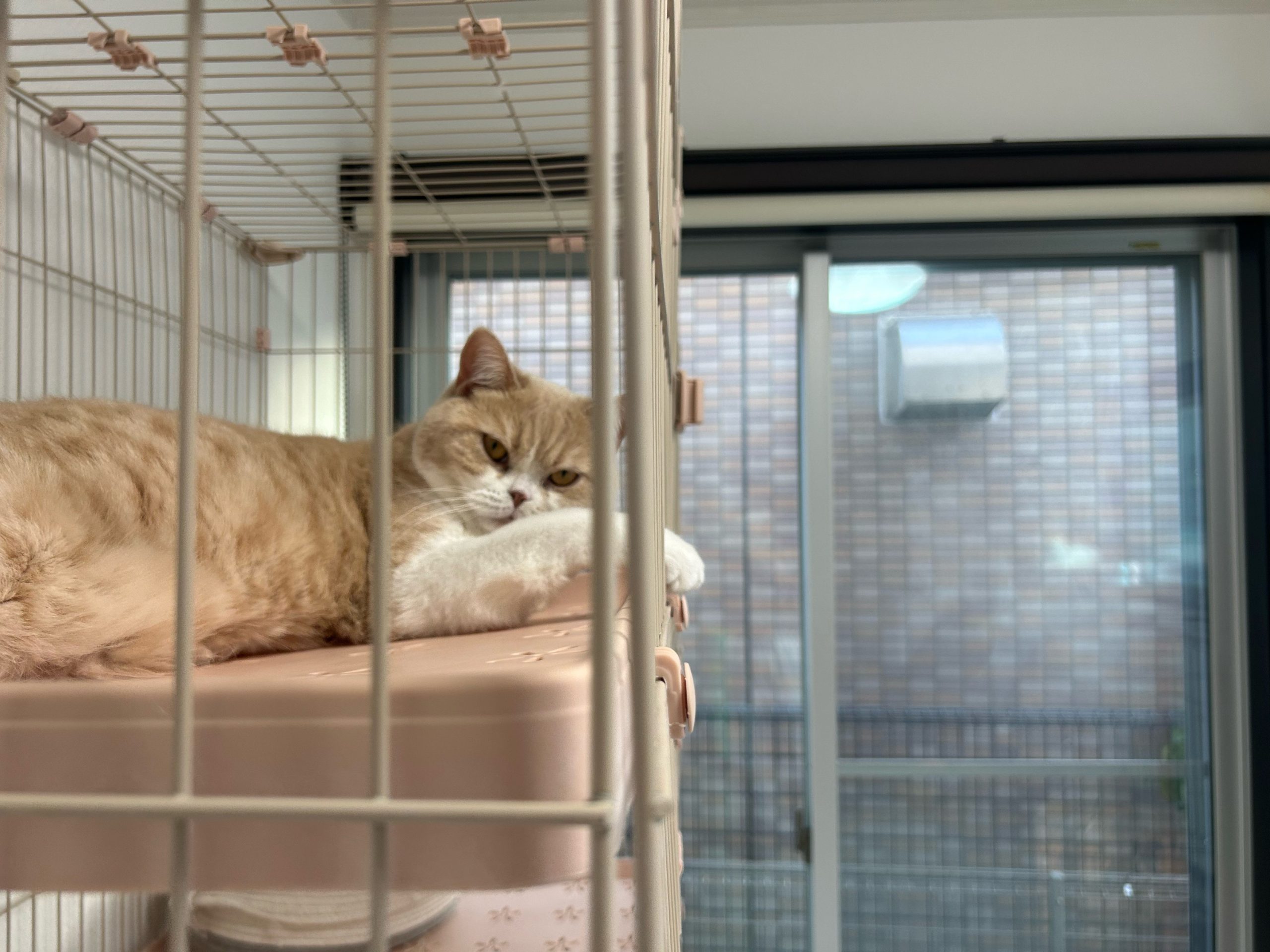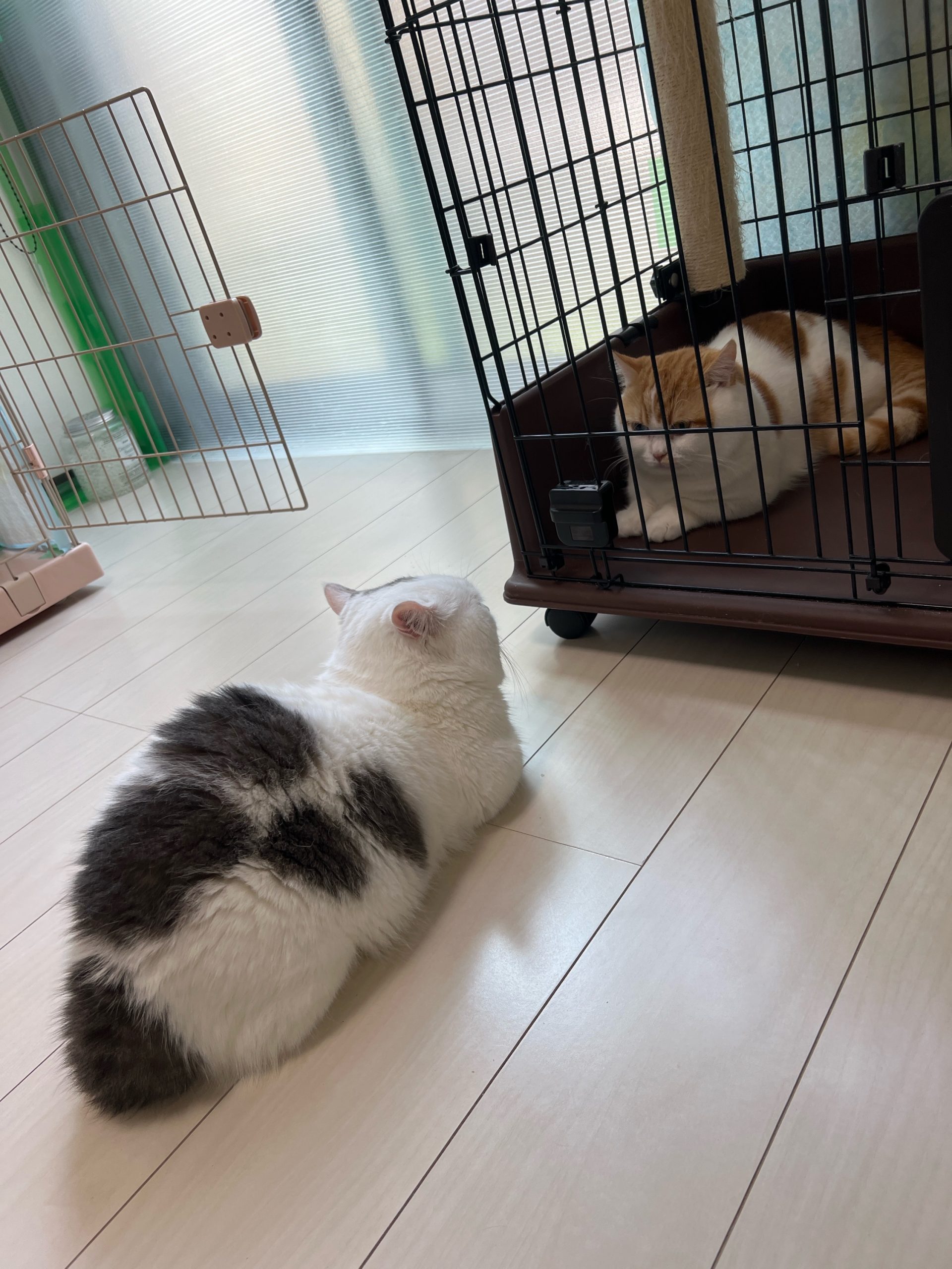 今日も殿くんと位置を交代&ちくわくんも小ケージ🏠(人が部屋にいる時はちくわくんケージ外ok)にしています。