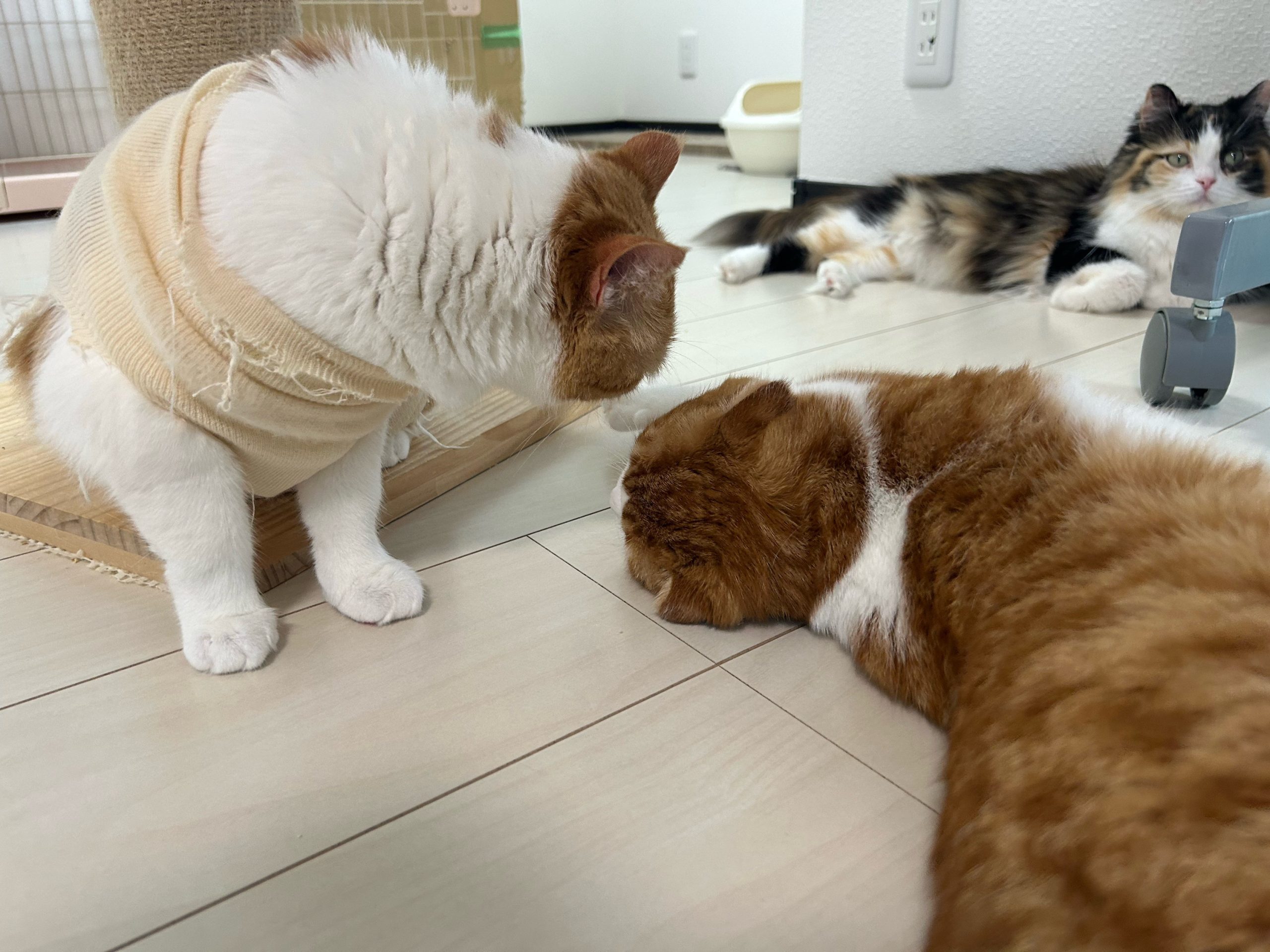 午前:ロコちゃんが保護服を脱ぎ捨ててありました😳