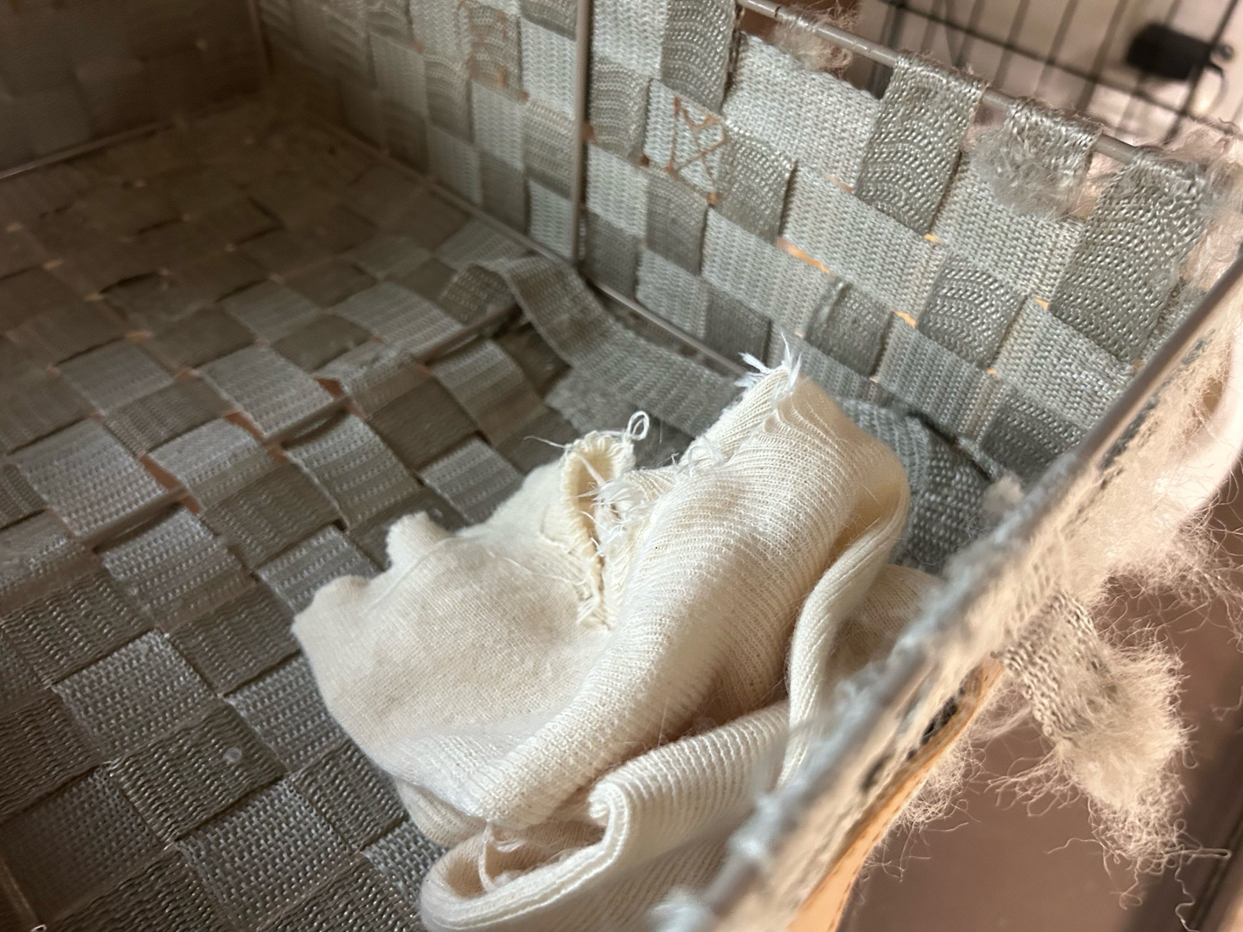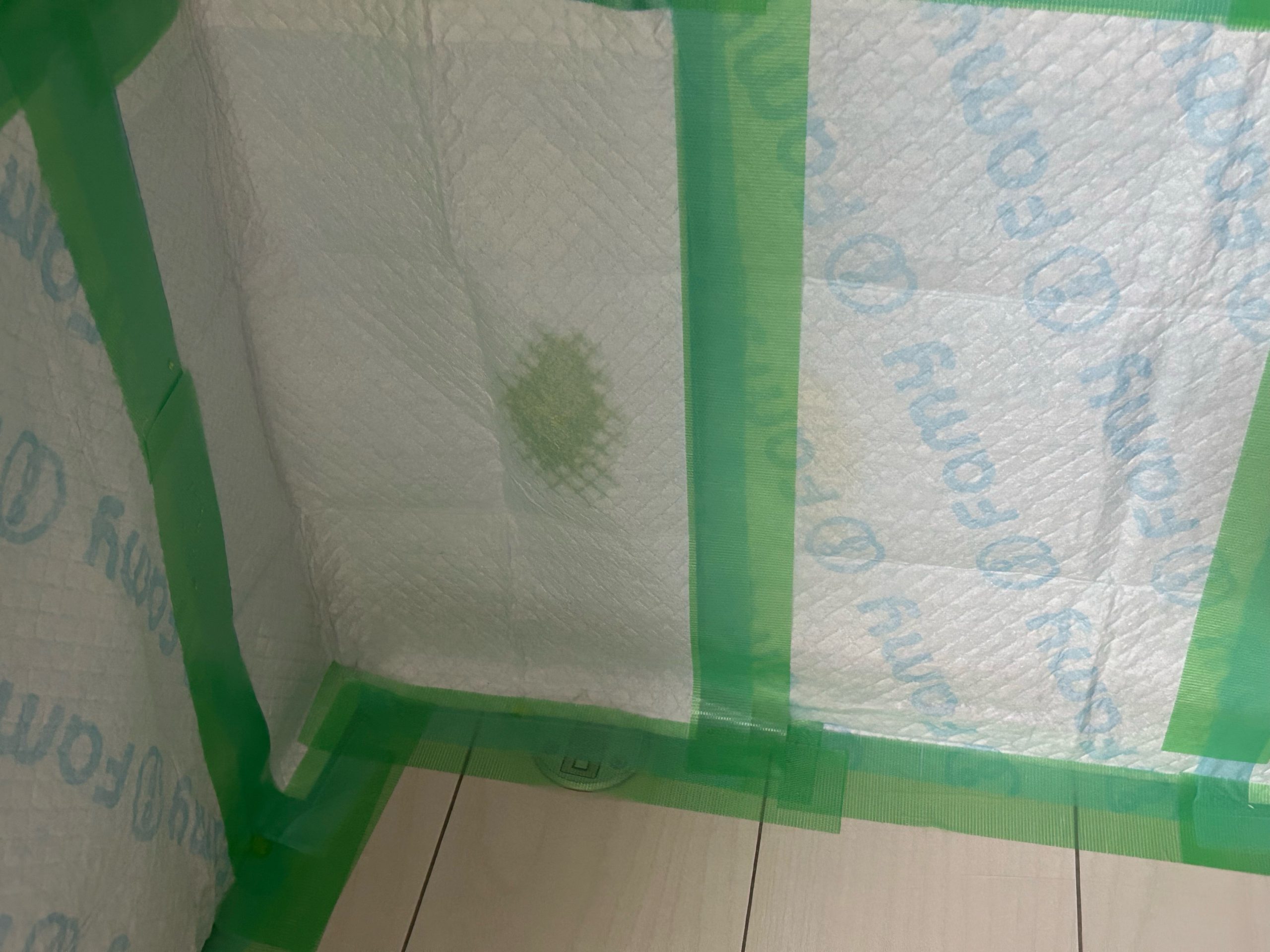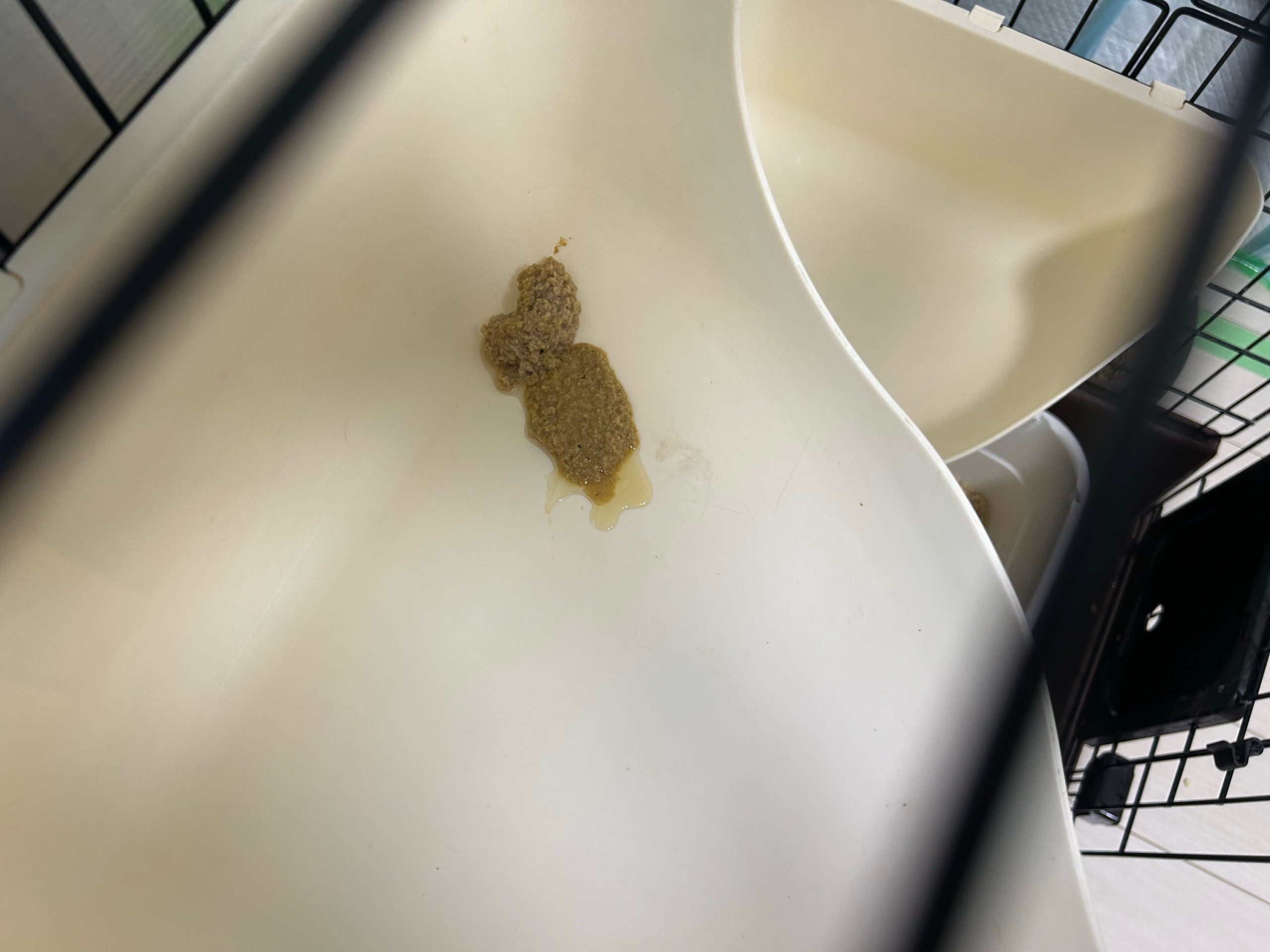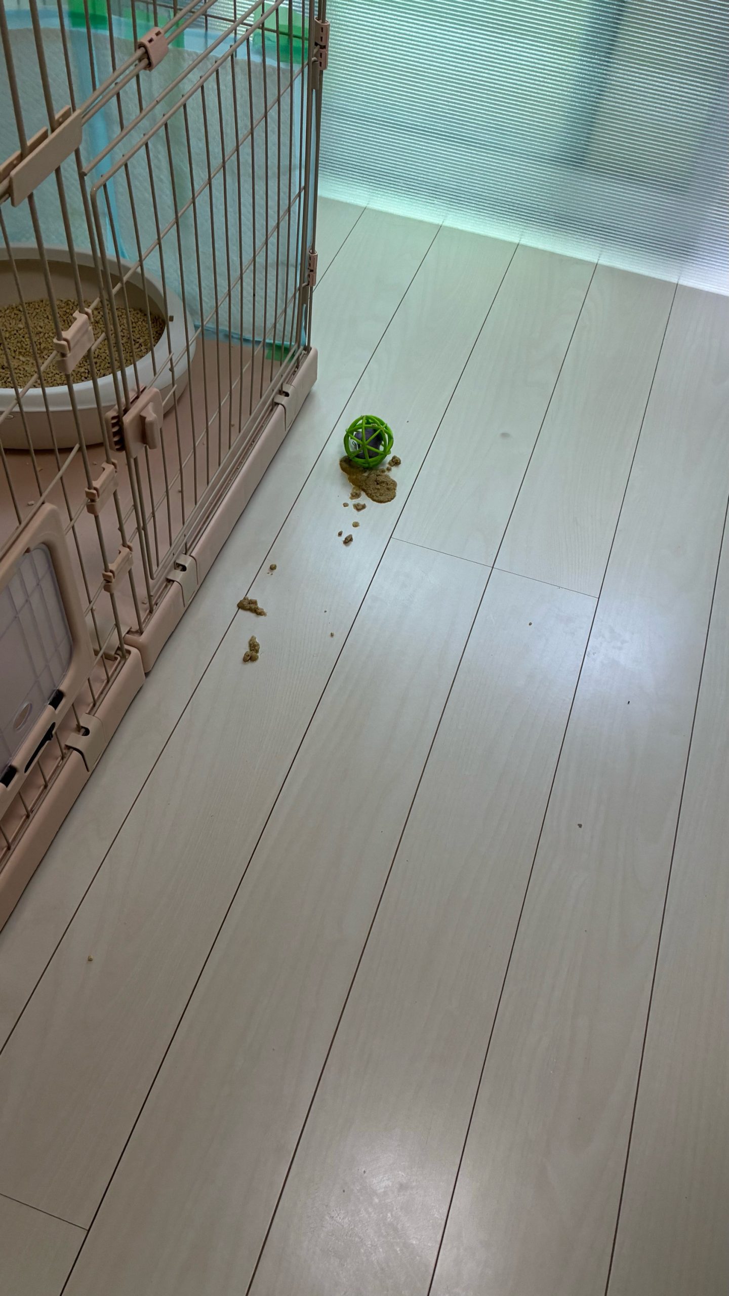 まるくん嘔吐あり、とのケージのシートが剥がれ後ろにスプレーあり🌈