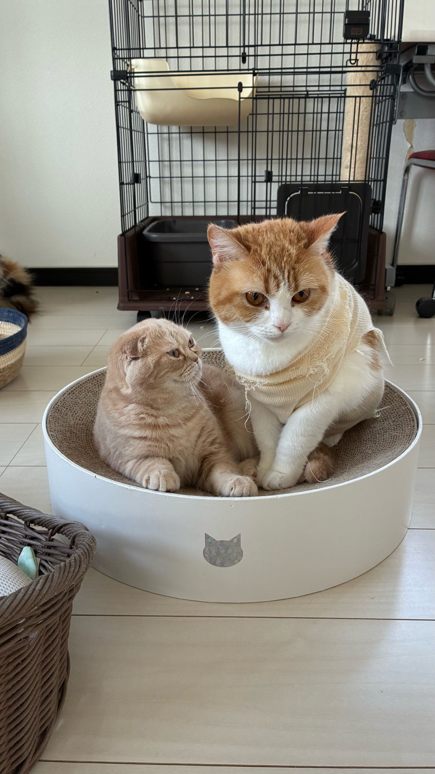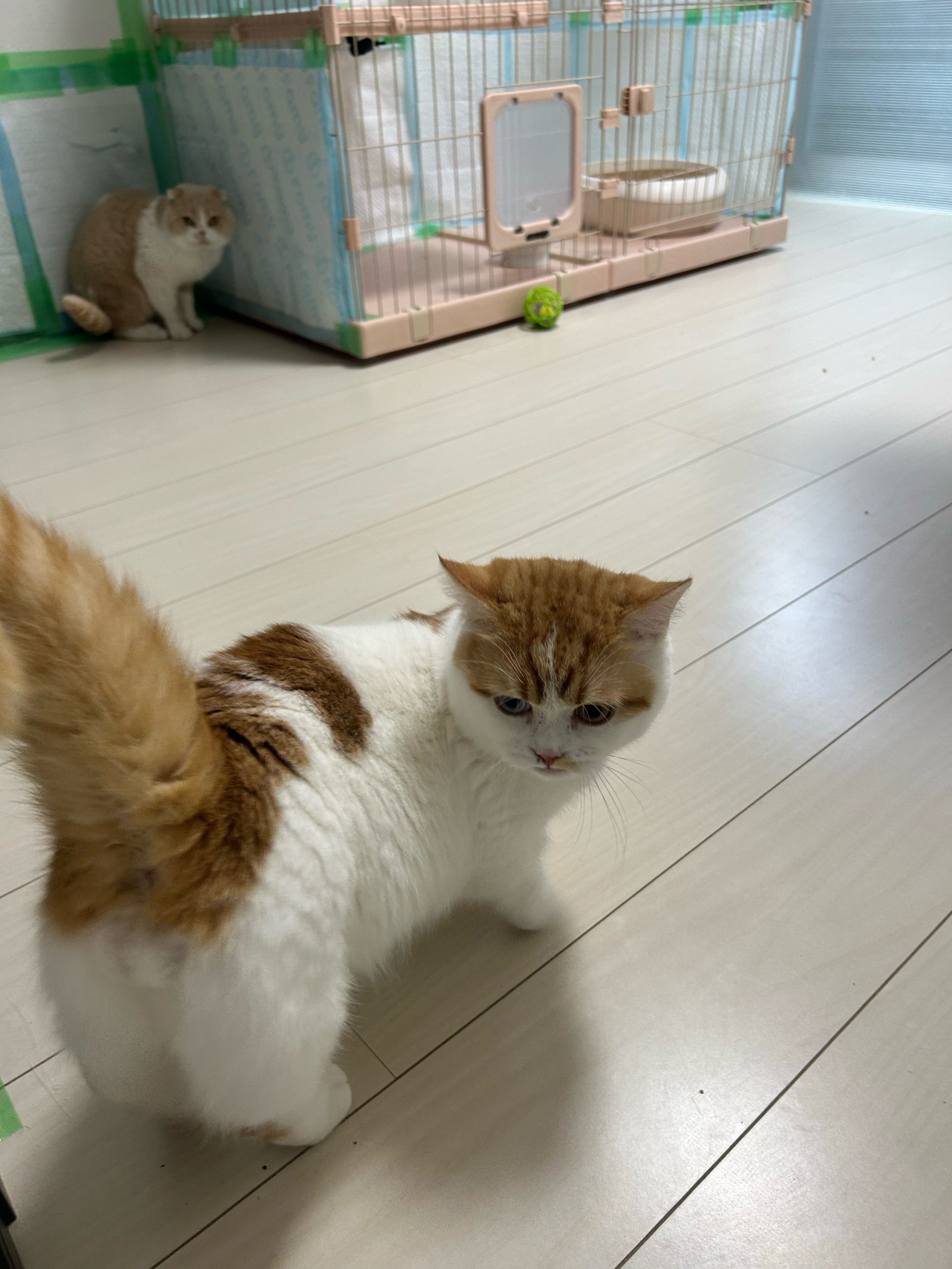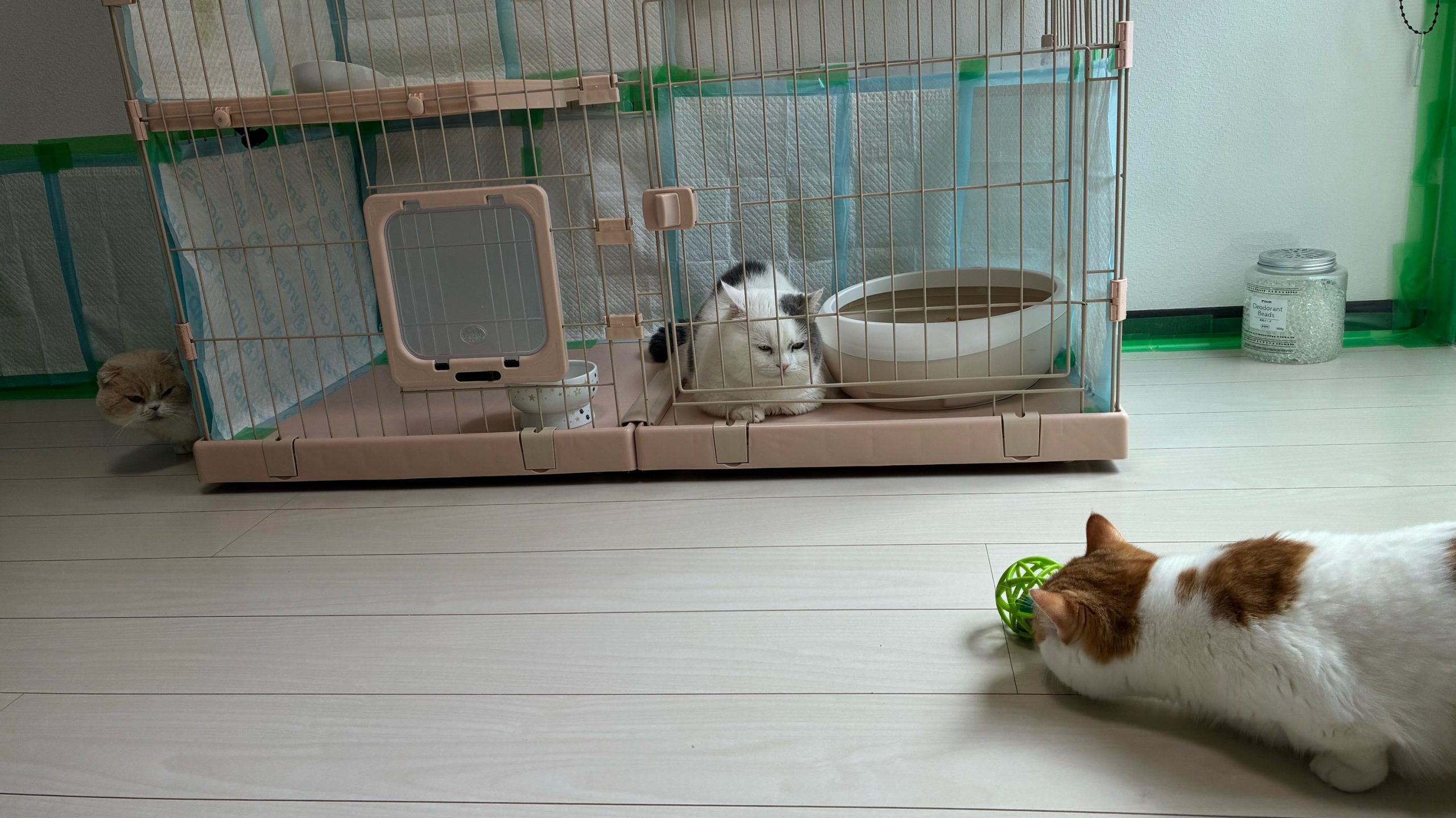 先日、殿・まる間で流血沙汰がありましたので、ケージ外の放牧エリアでまる・ちくわペアでの住み分けとなっております🐈