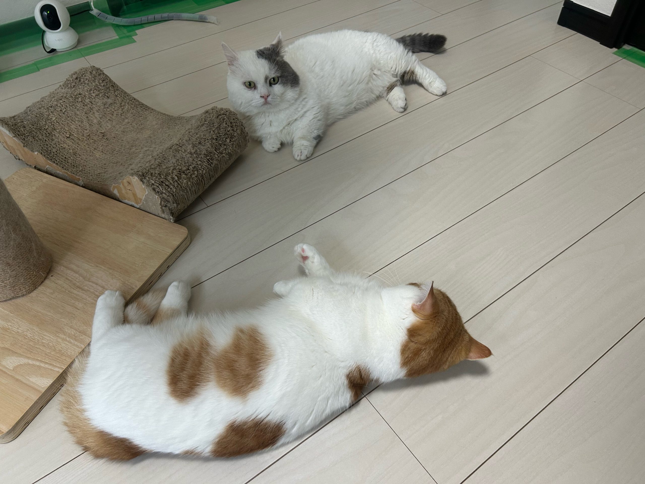 はるくんはきびくんとばくくんとオープンでも過ごせておりました。ごはんは相変わらず成猫ごはんが好きのようで、きびくんのごはんをむしゃむしゃとしておりました🍚