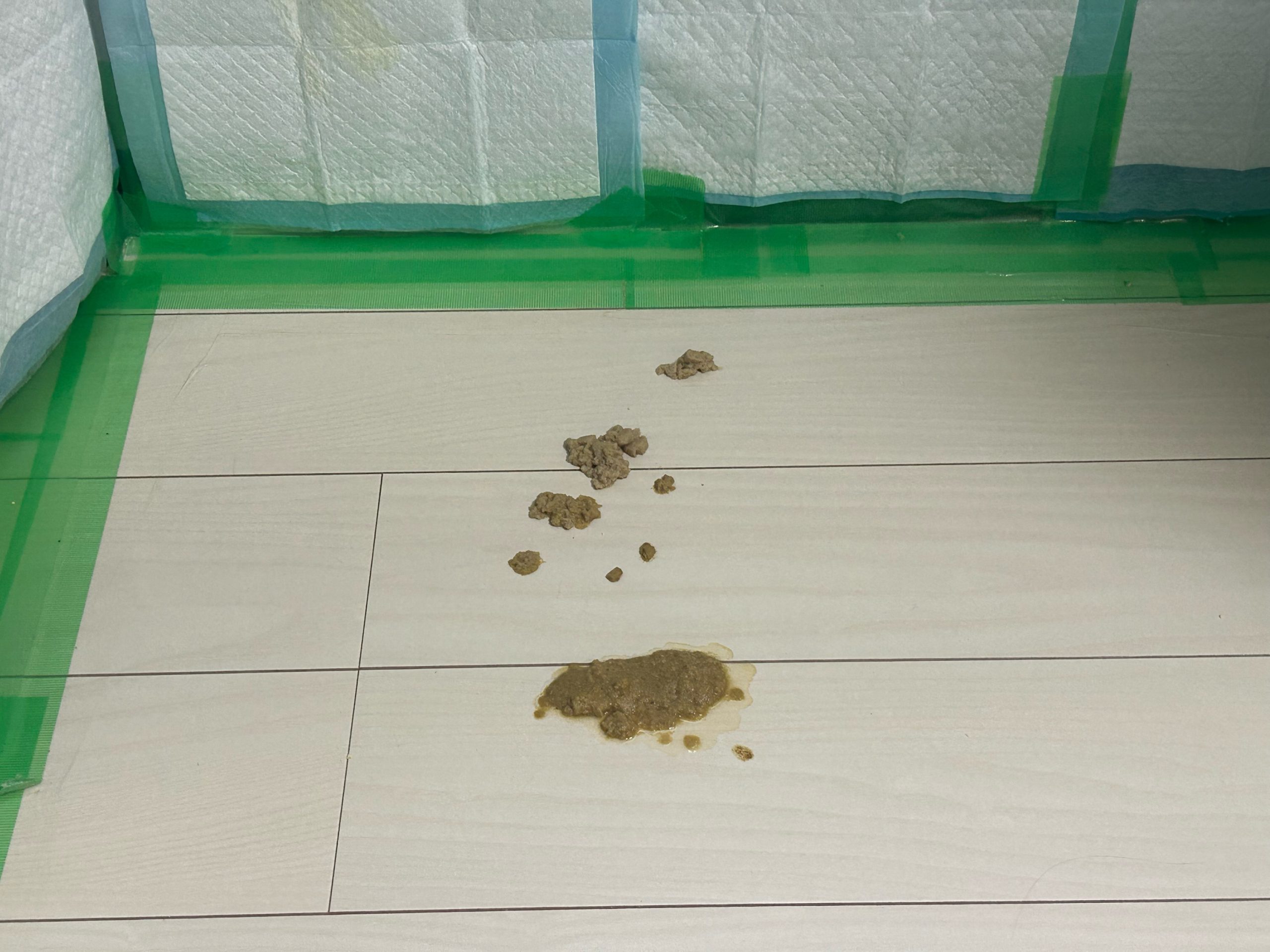 1階作業中に、2階に胃液のみの透明な嘔吐あり💦