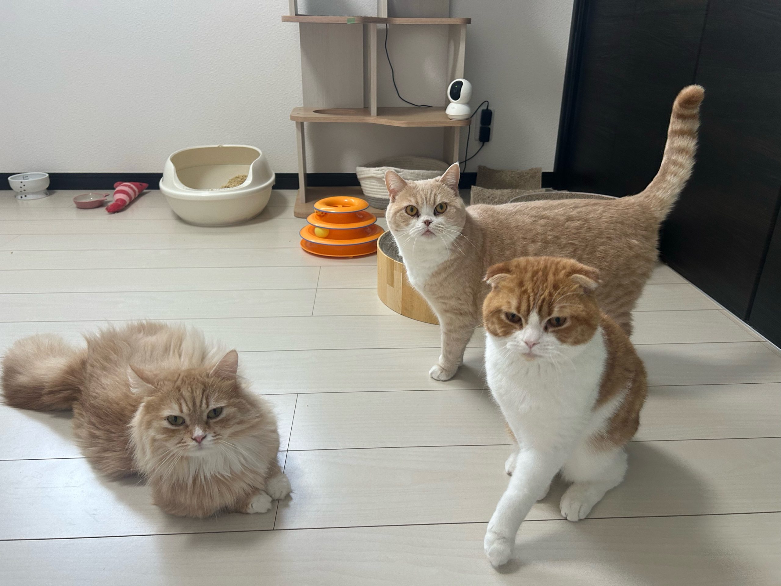 ばくくん・きびまいくん・はるくんの3匹は、まったりのんびりしつつ人に構え構えとアピールでした🐱