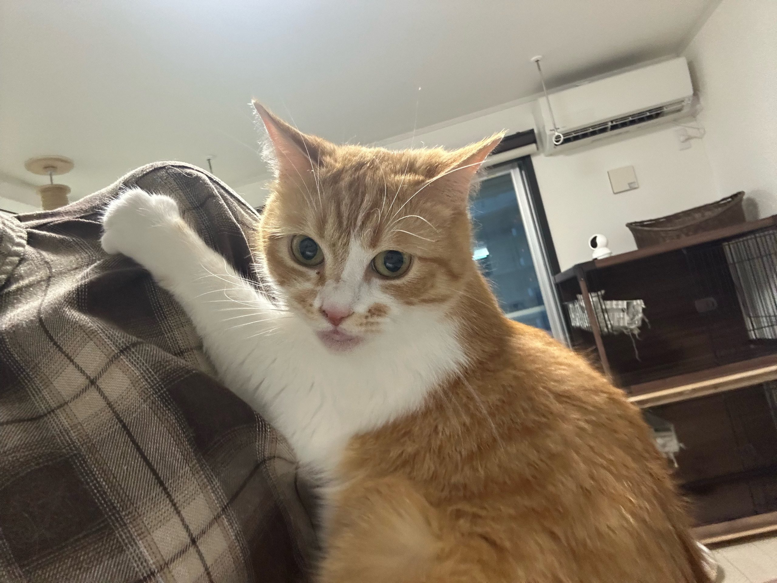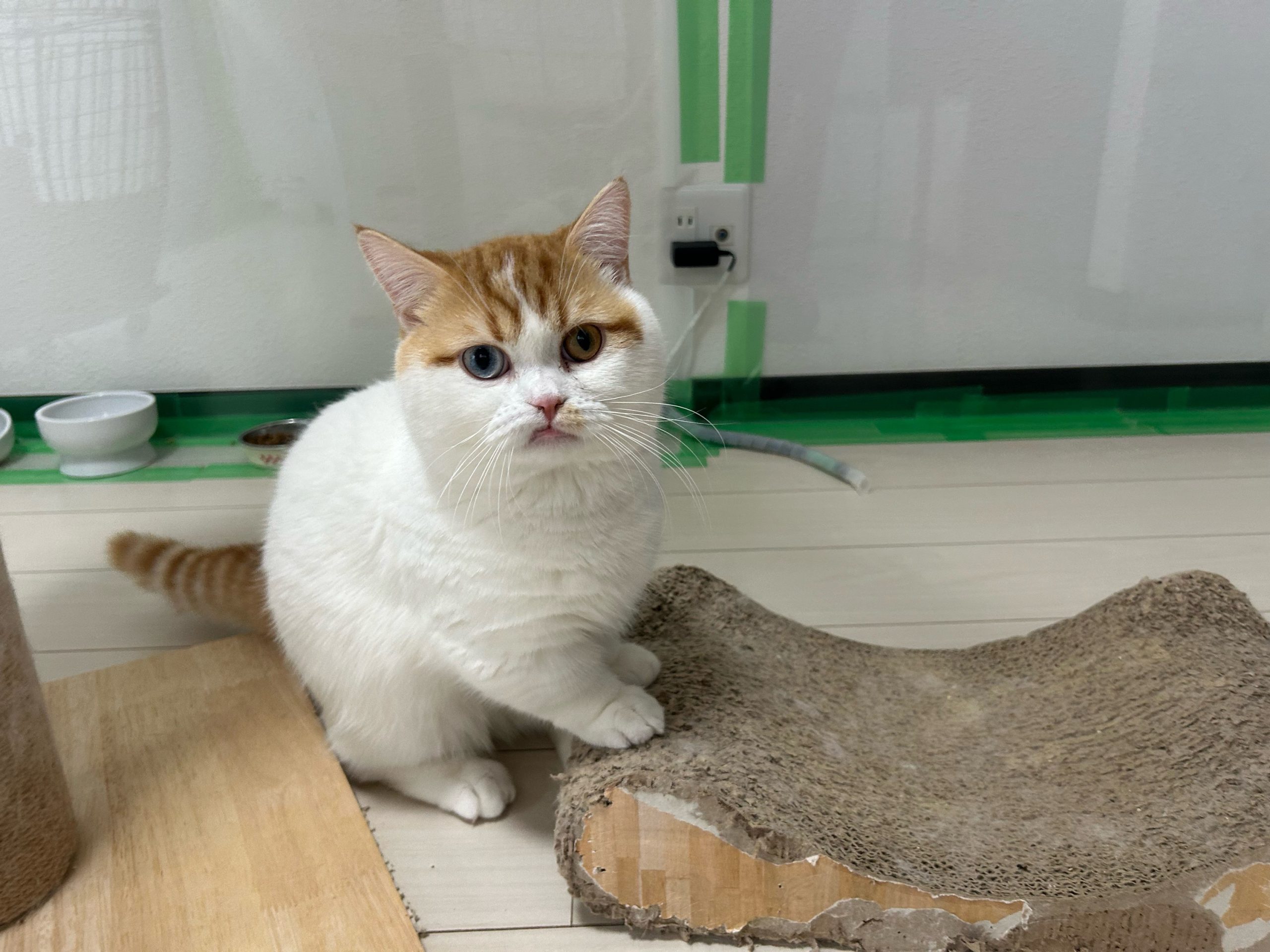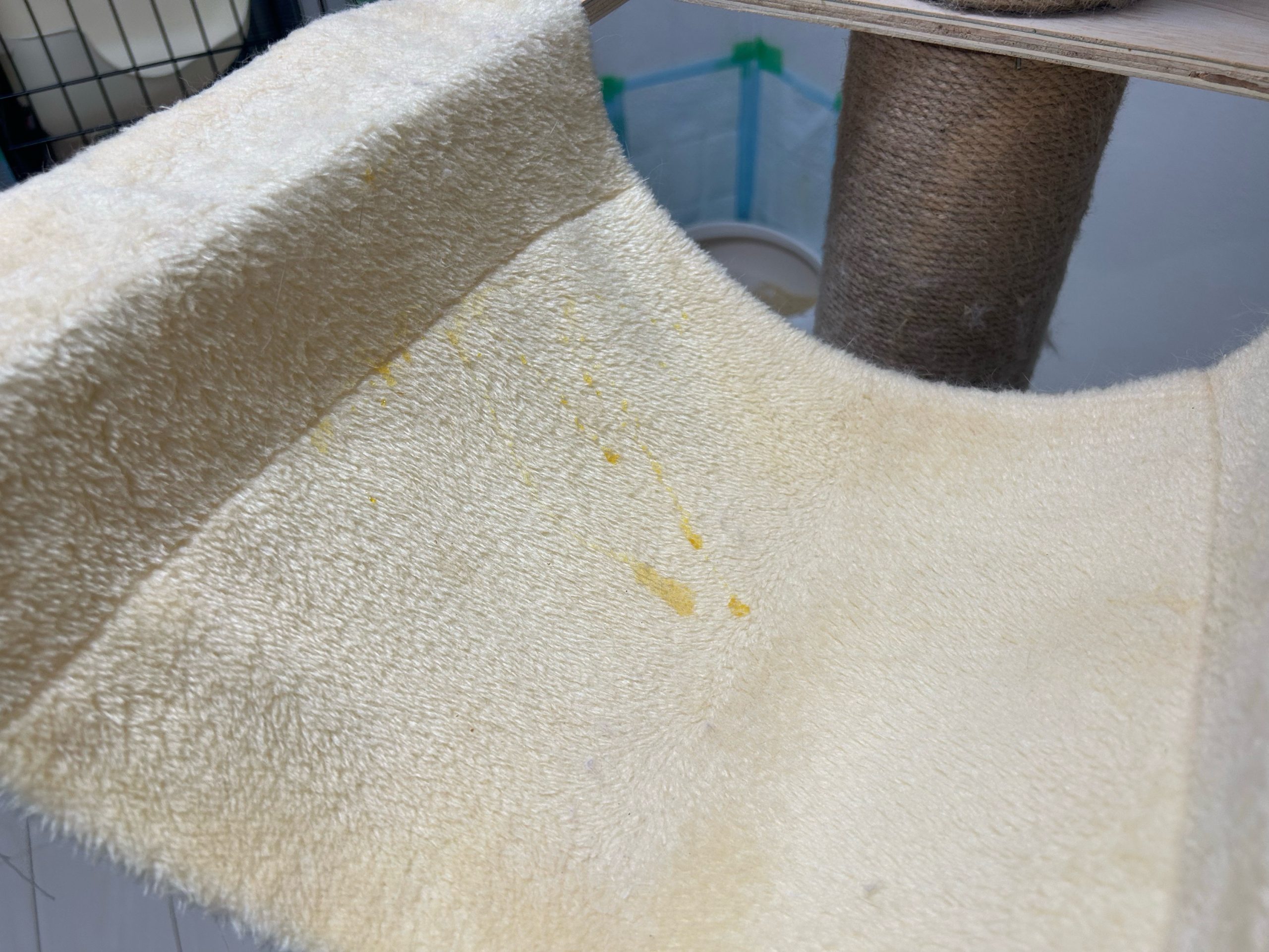 ちくわくんは、殿パパから学んだのかキャットタワーの布部分にスプレーあり🌈