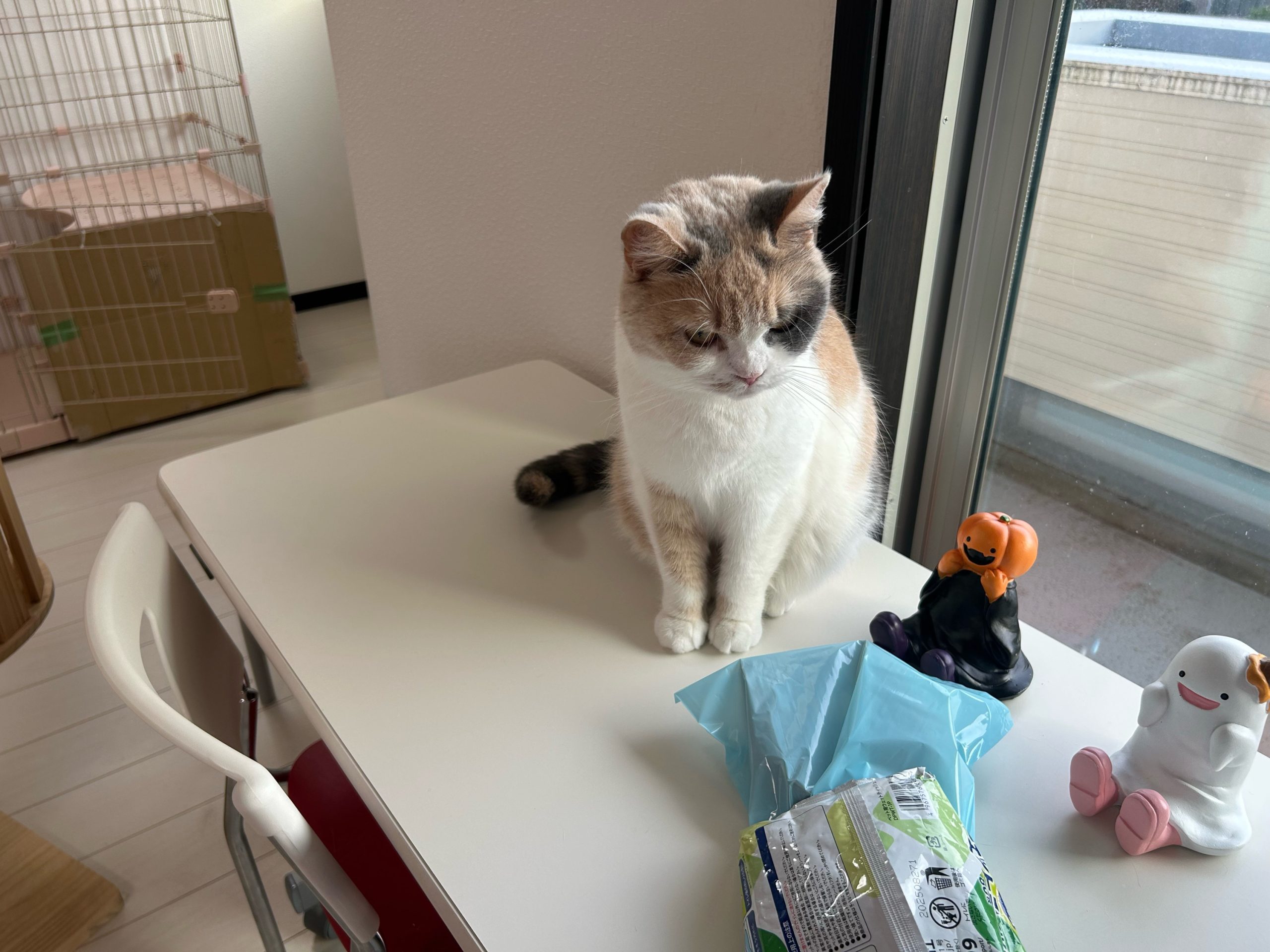 2階では机の上に煮干し?🐟固まったうんち?💩か不明な物あり。