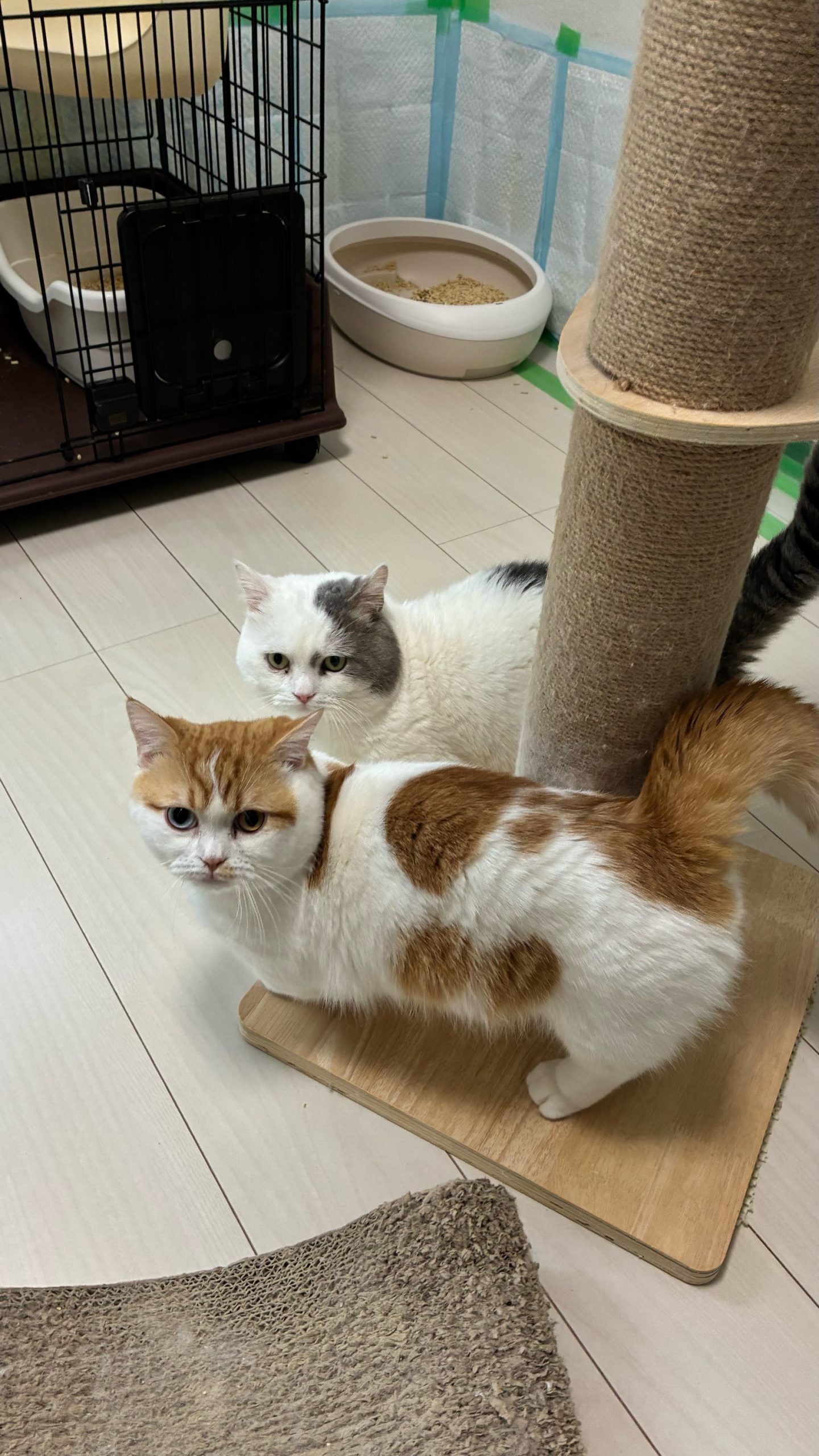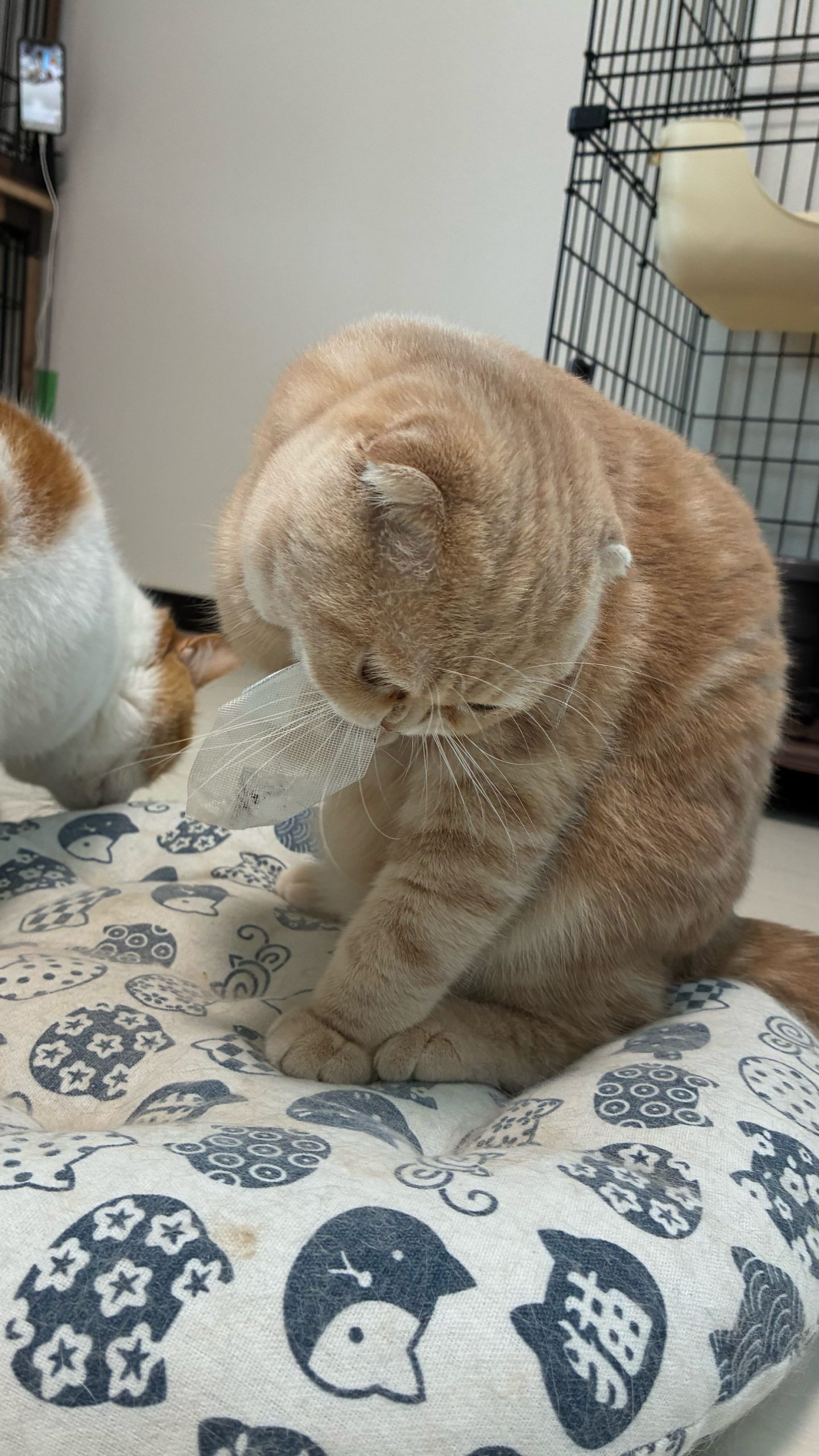 レモンちゃん小ケージ上からあまり降りず、ごはんは上に置いてあげると食べ、隙を見計って奥の外のトイレに駆け込みダッシュ💨一応最低限降りてはきてるみたいです🐈💨