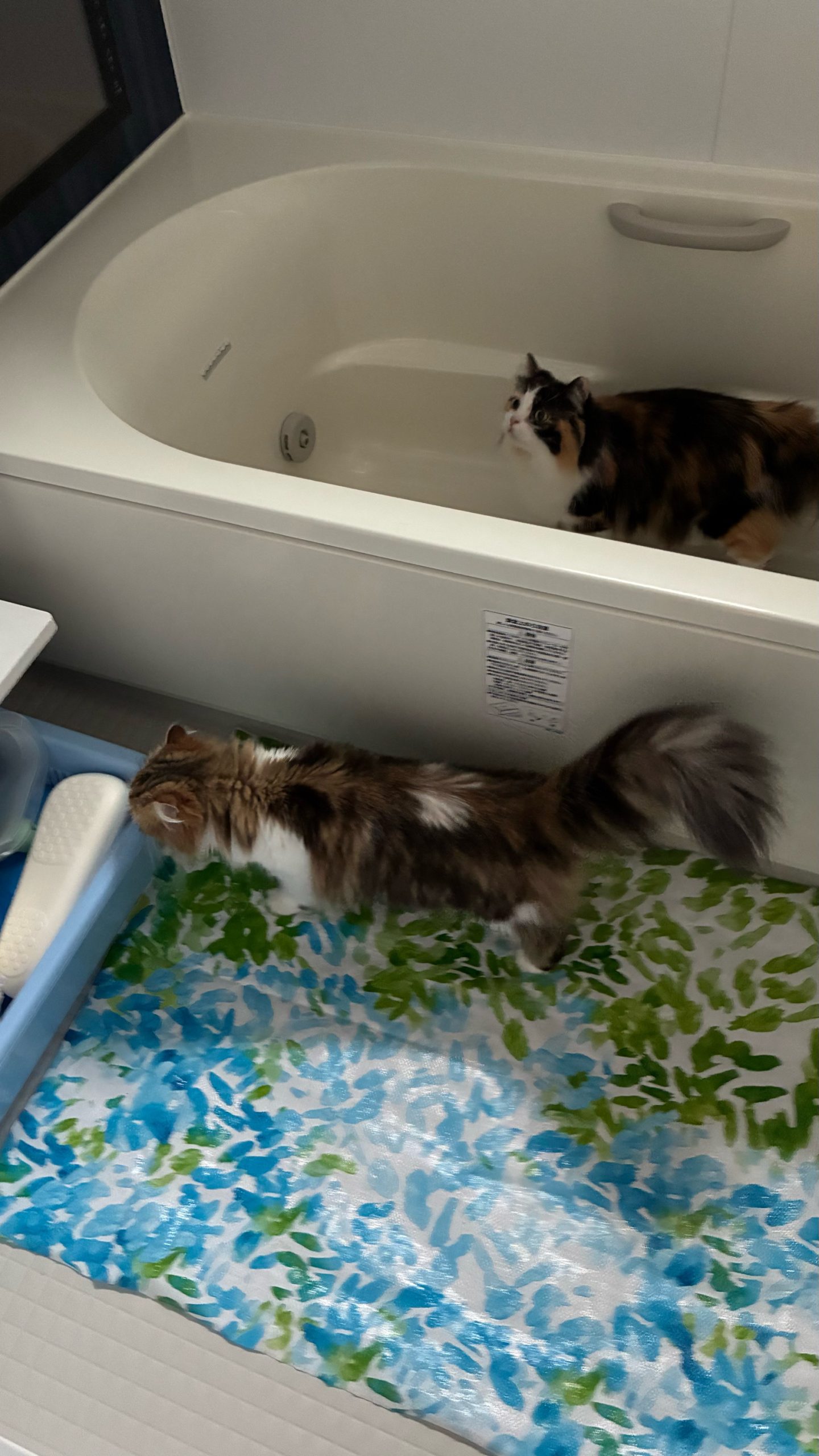 マロとひめ長毛コンビがお風呂場侵入🛁