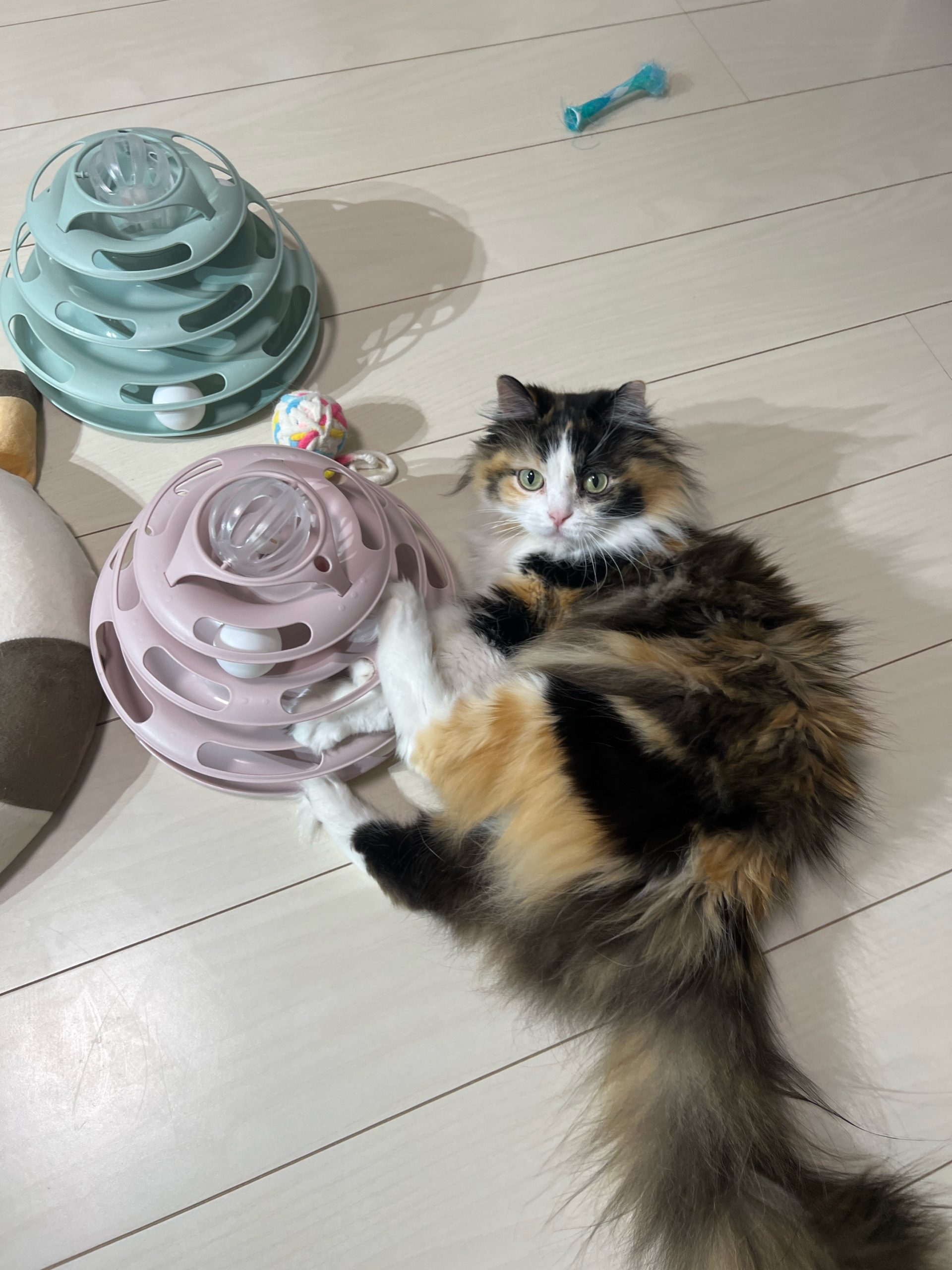 まだキャットタワーのカバーが乾いていないのでそのまま干してあります。