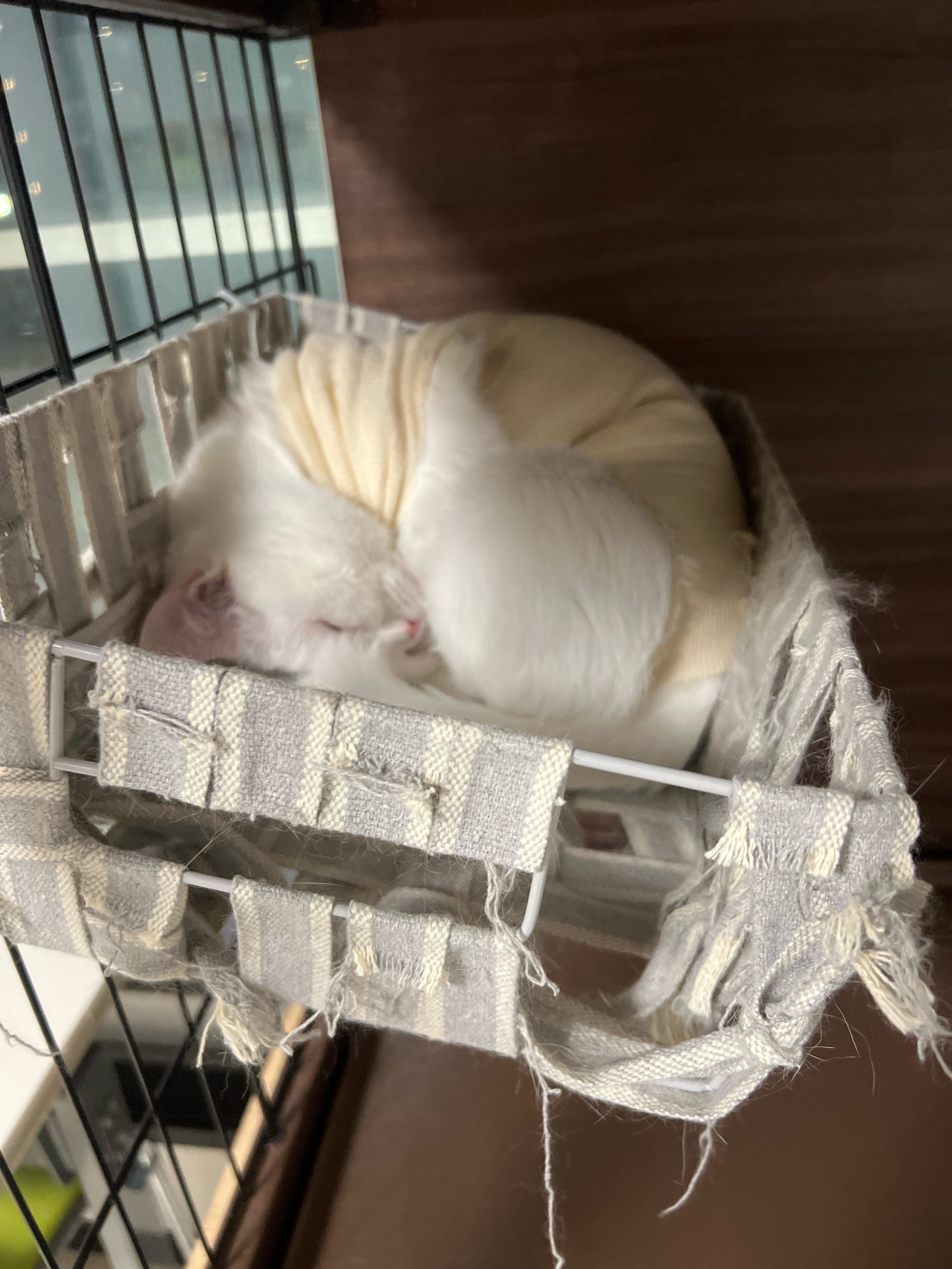 おこめちゃん小ケージ上段で💤