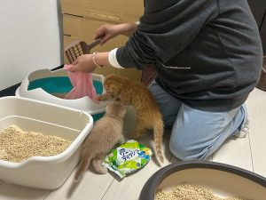 午前:赤い尿の子猫探しでケージ分け3ちゃんは朝イチの排尿で通常色確認。(ひのき)1.2ちゃんも今までの猫砂で通常排尿確認済み。4ちゃんも通常(ひのき) 写真は下段左が3ちゃん、真ん中4ちゃん 右はレモンちゃんケージにレモ […]